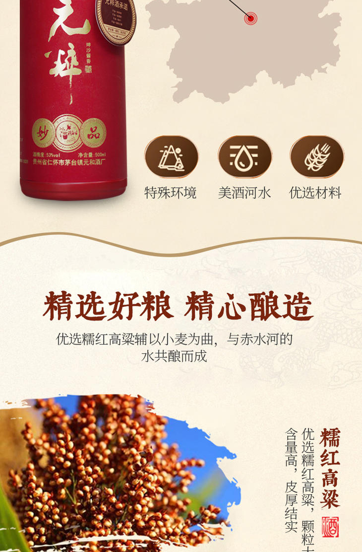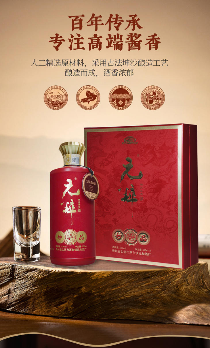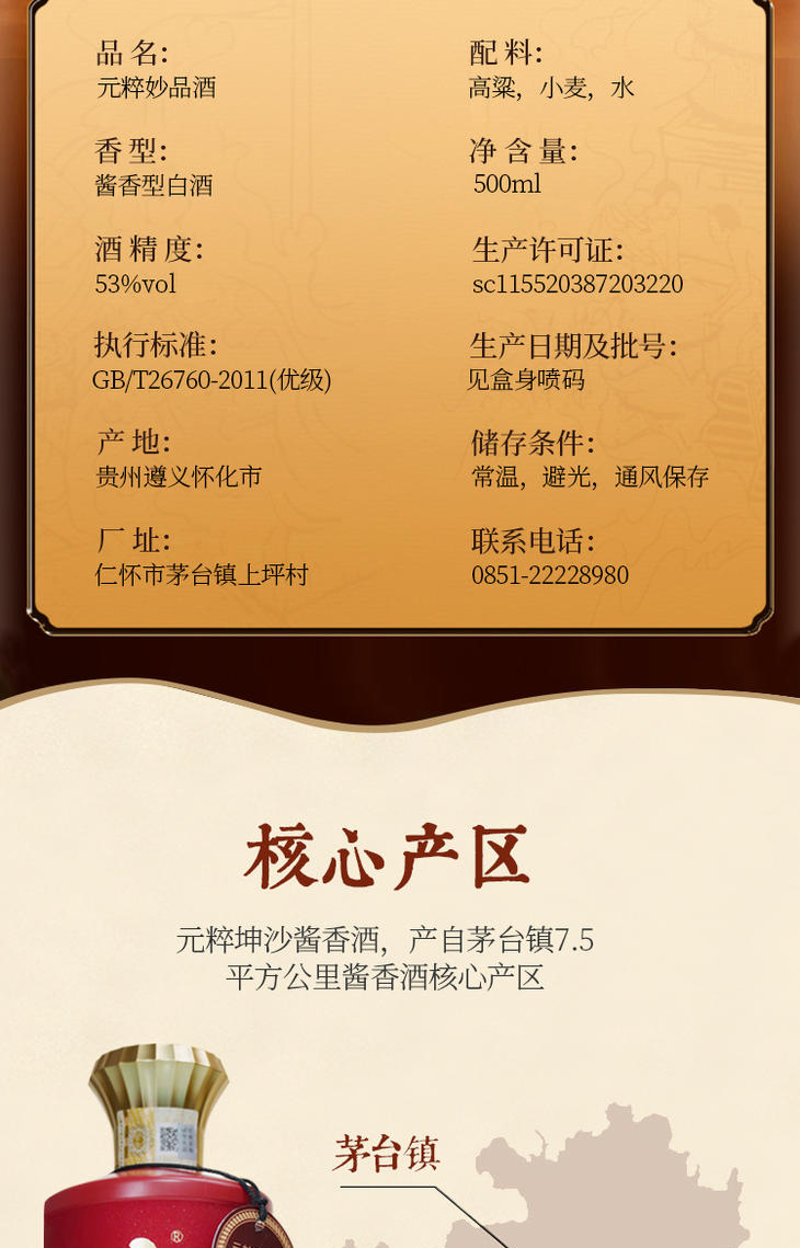 元粹妙品坤沙酱香酒53%VOL500ml*6瓶 整箱