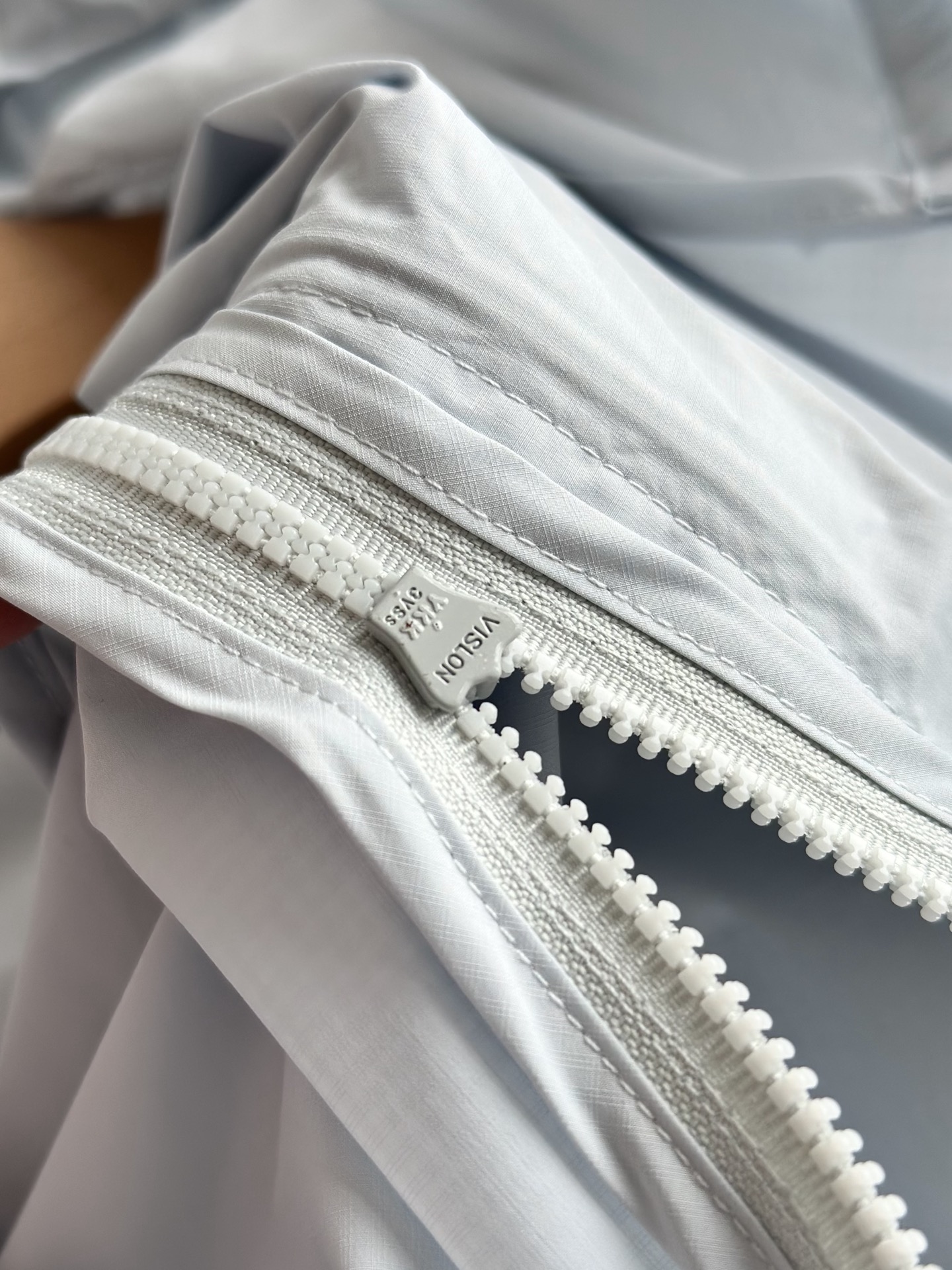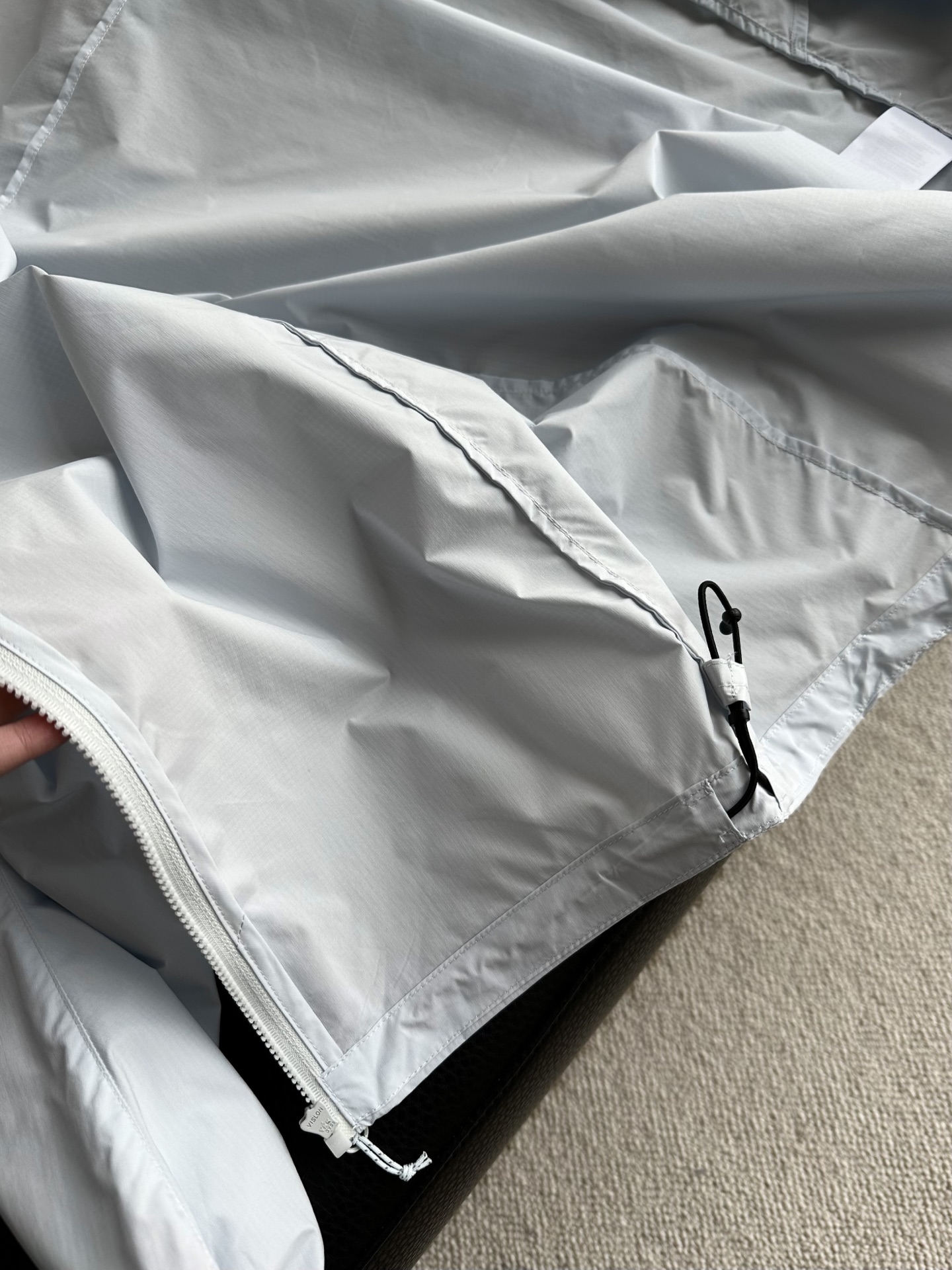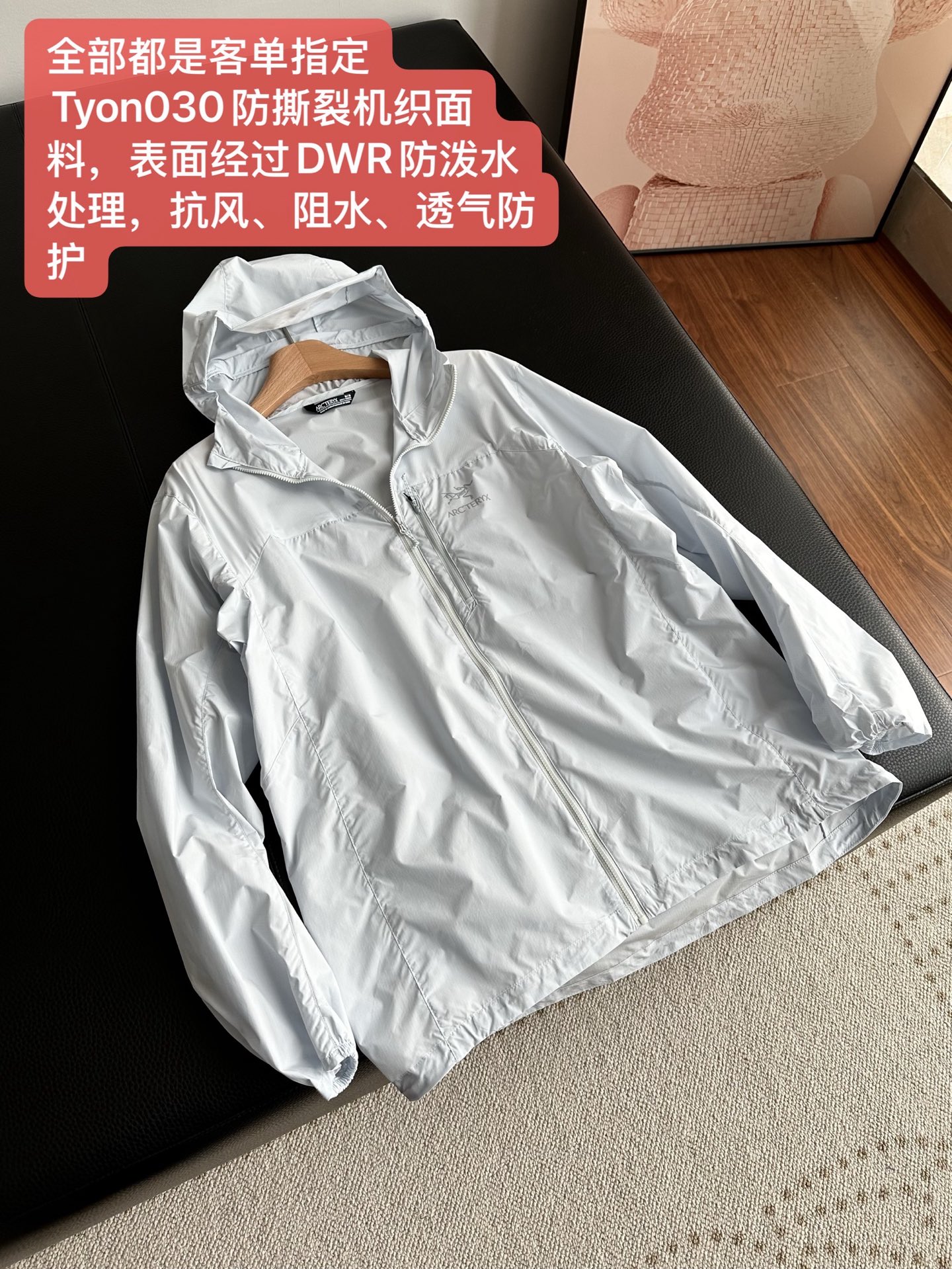 客单指定的Tyono30防撕裂机织面料 表面都有暗格纹结构 这也是防伪点!!原版面料才有的轻量、防风、防雨、防撕裂 高透气性和抗风性,能有效阻挡强风,即使在风大的山上或者海边,也可以保持舒适,同时透气性也非常好!抗UV真防晒,可以有效阻挡紫外线 保护皮肤免受伤害