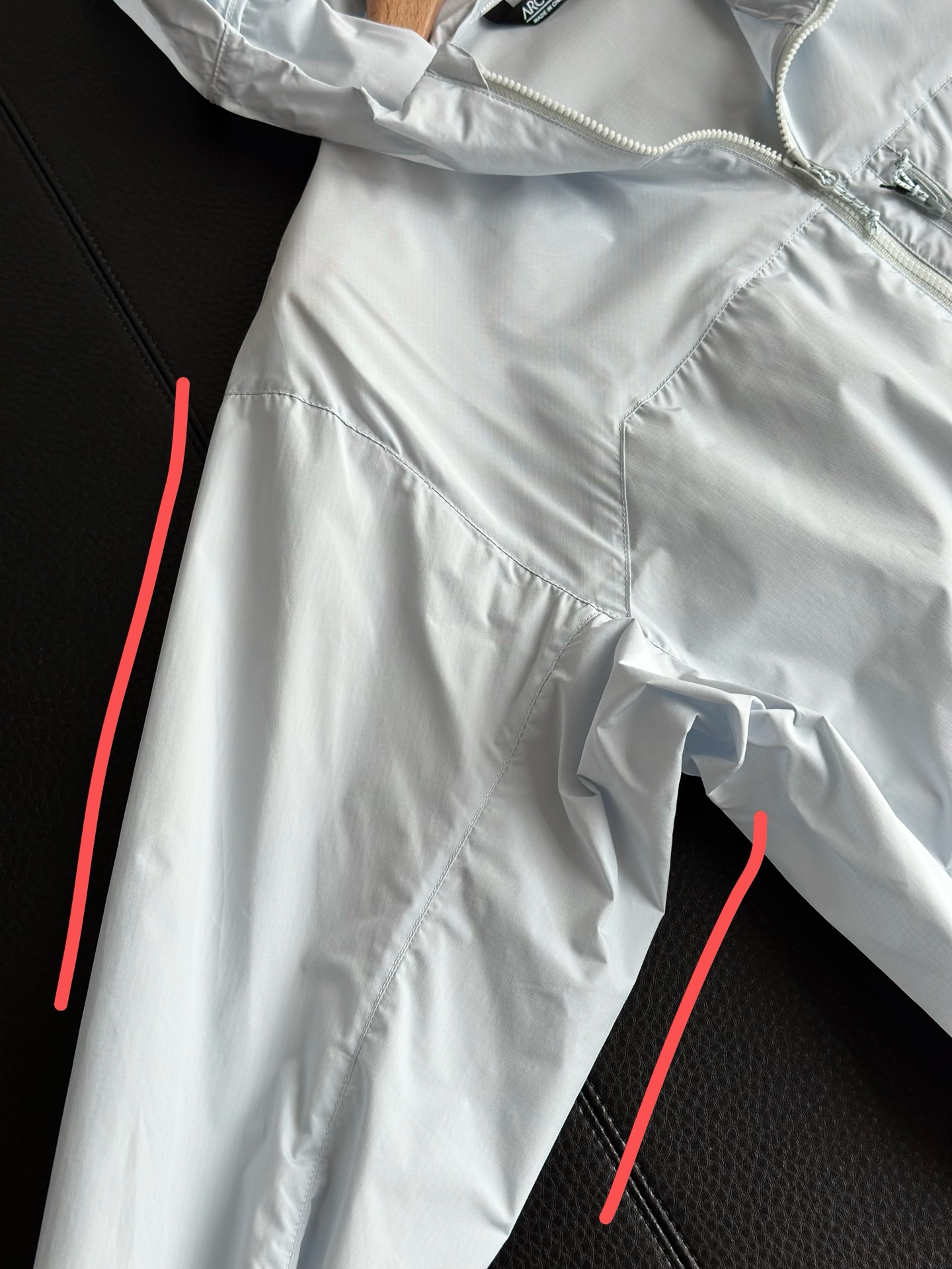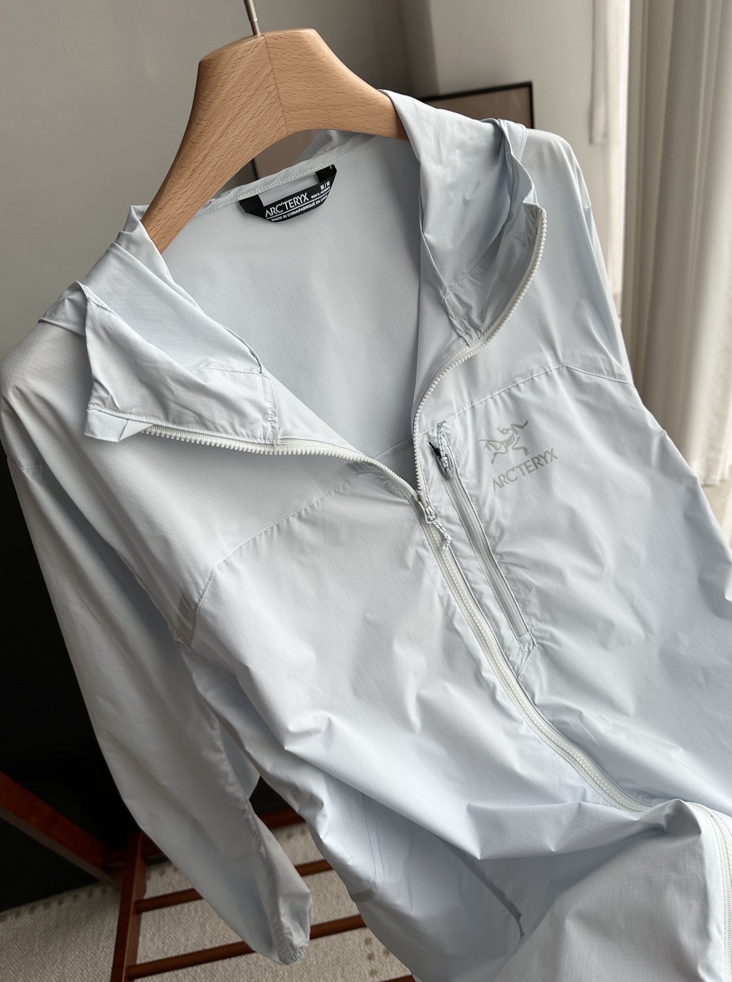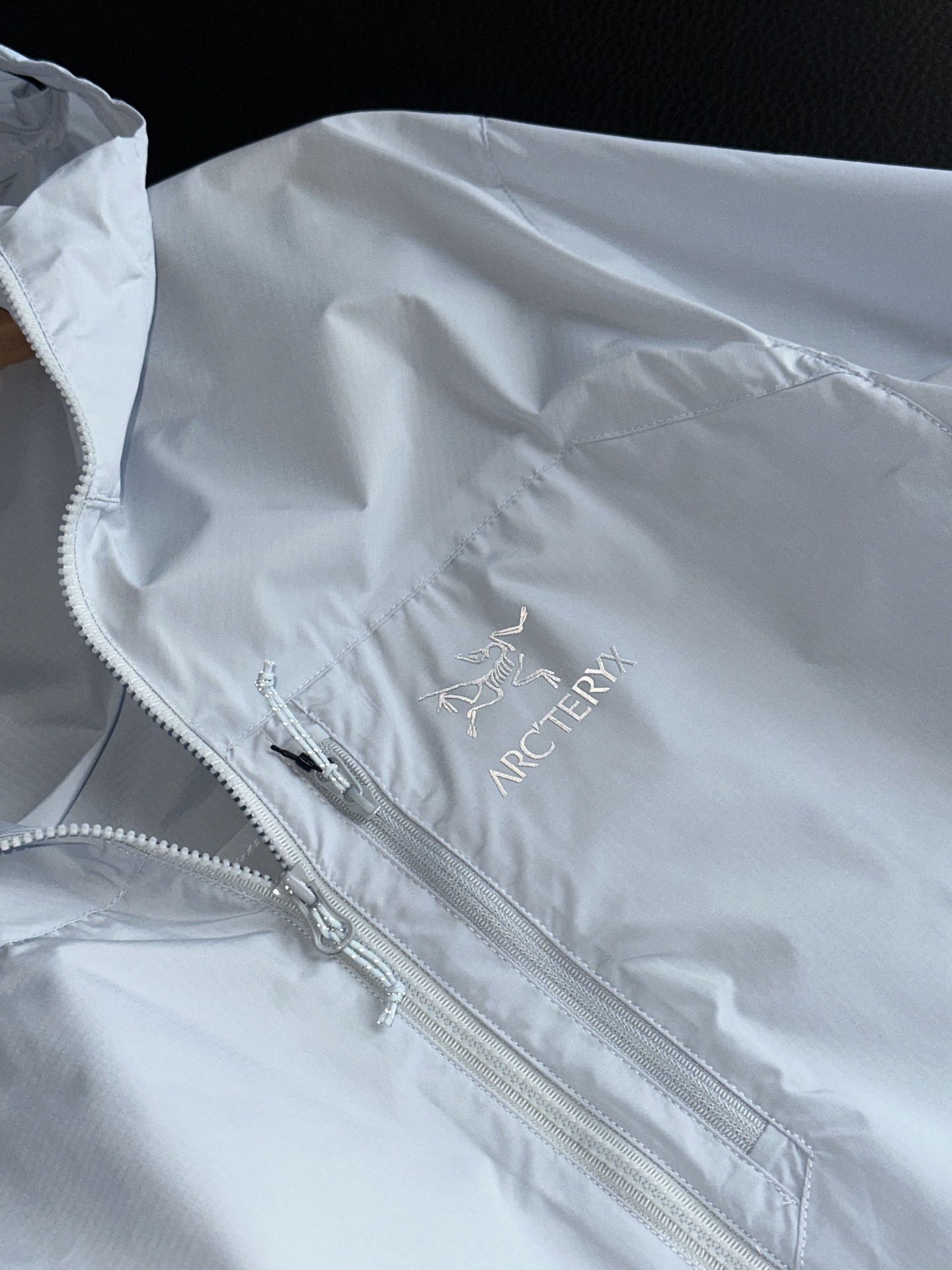 客单指定的Tyono30防撕裂机织面料 表面都有暗格纹结构 这也是防伪点!!原版面料才有的轻量、防风、防雨、防撕裂 高透气性和抗风性,能有效阻挡强风,即使在风大的山上或者海边,也可以保持舒适,同时透气性也非常好!抗UV真防晒,可以有效阻挡紫外线 保护皮肤免受伤害