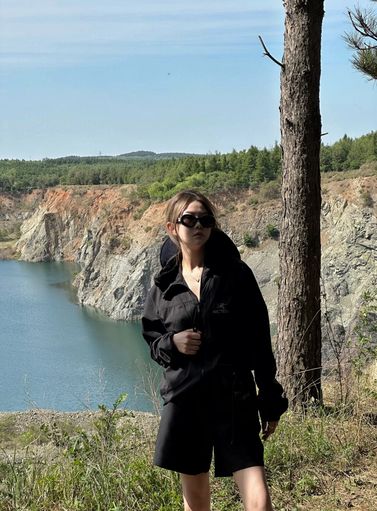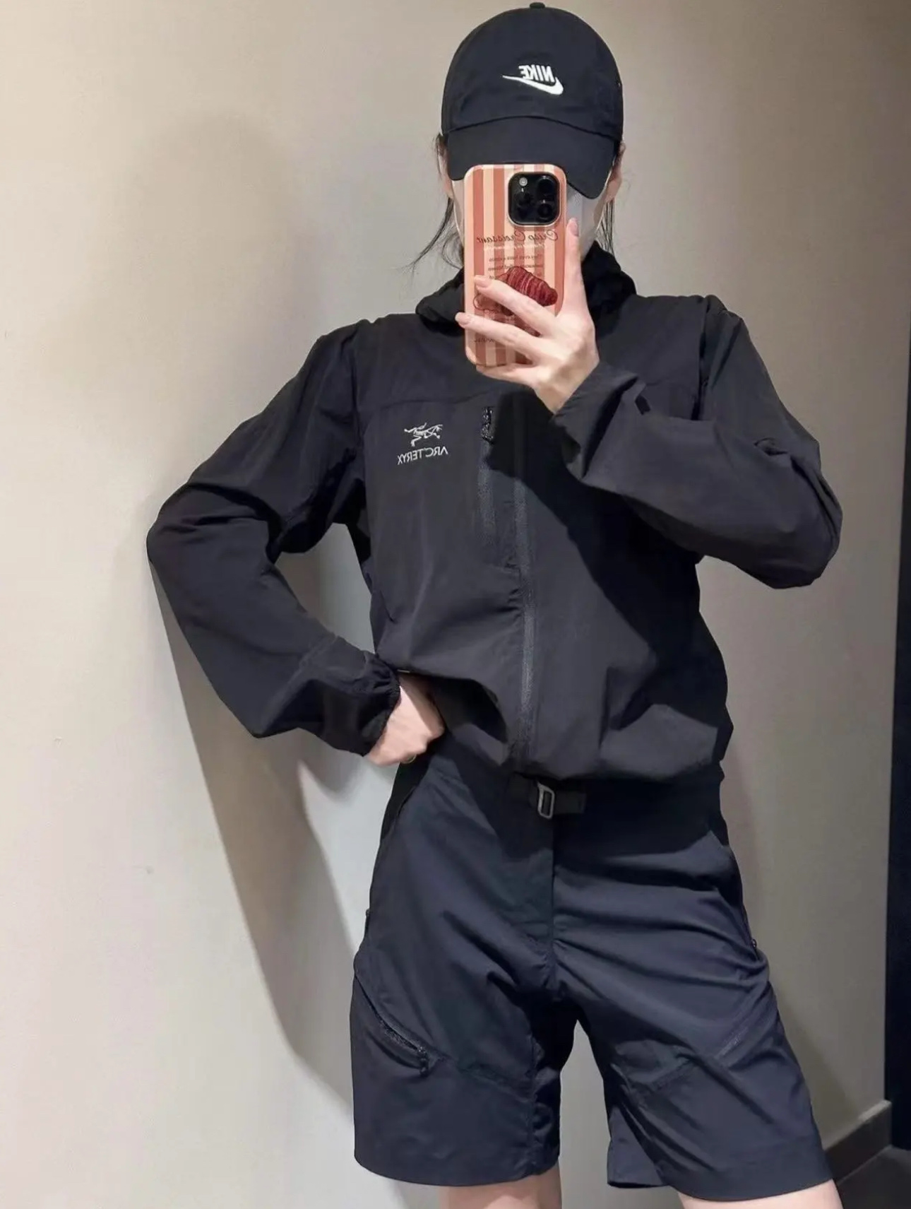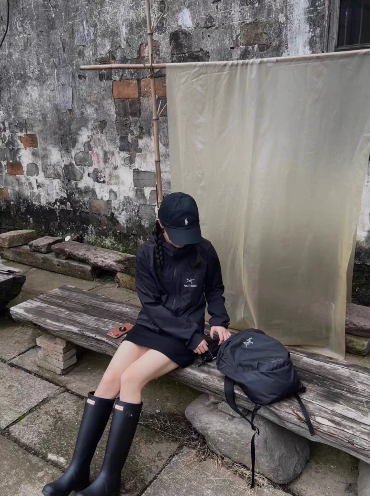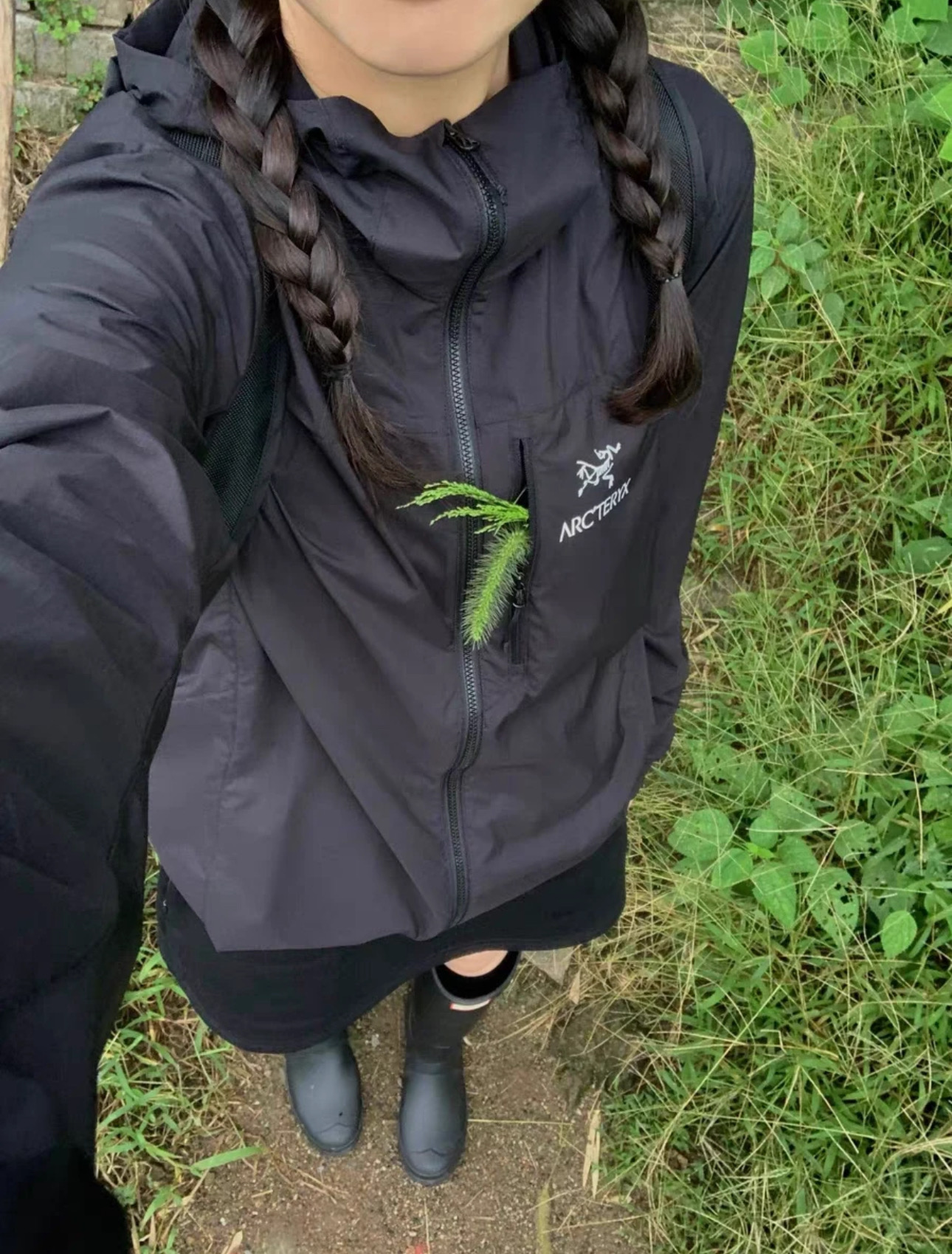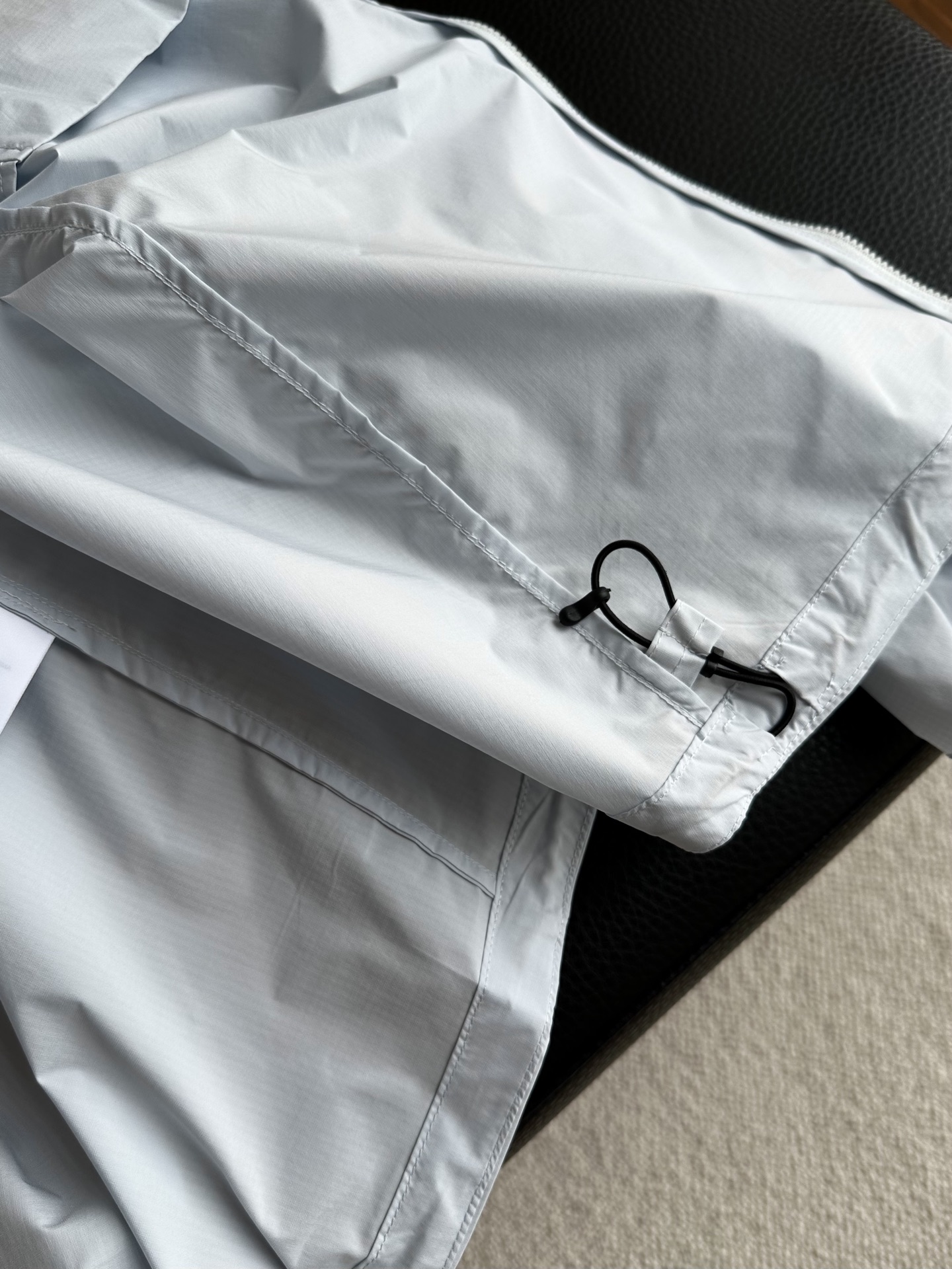 整个大身立体裁剪是有点冲锋衣版型的 上身舒适穿搭不挑身材,袖口、下摆都有收口工艺,可以变换不同好穿搭风格,百搭又随性
