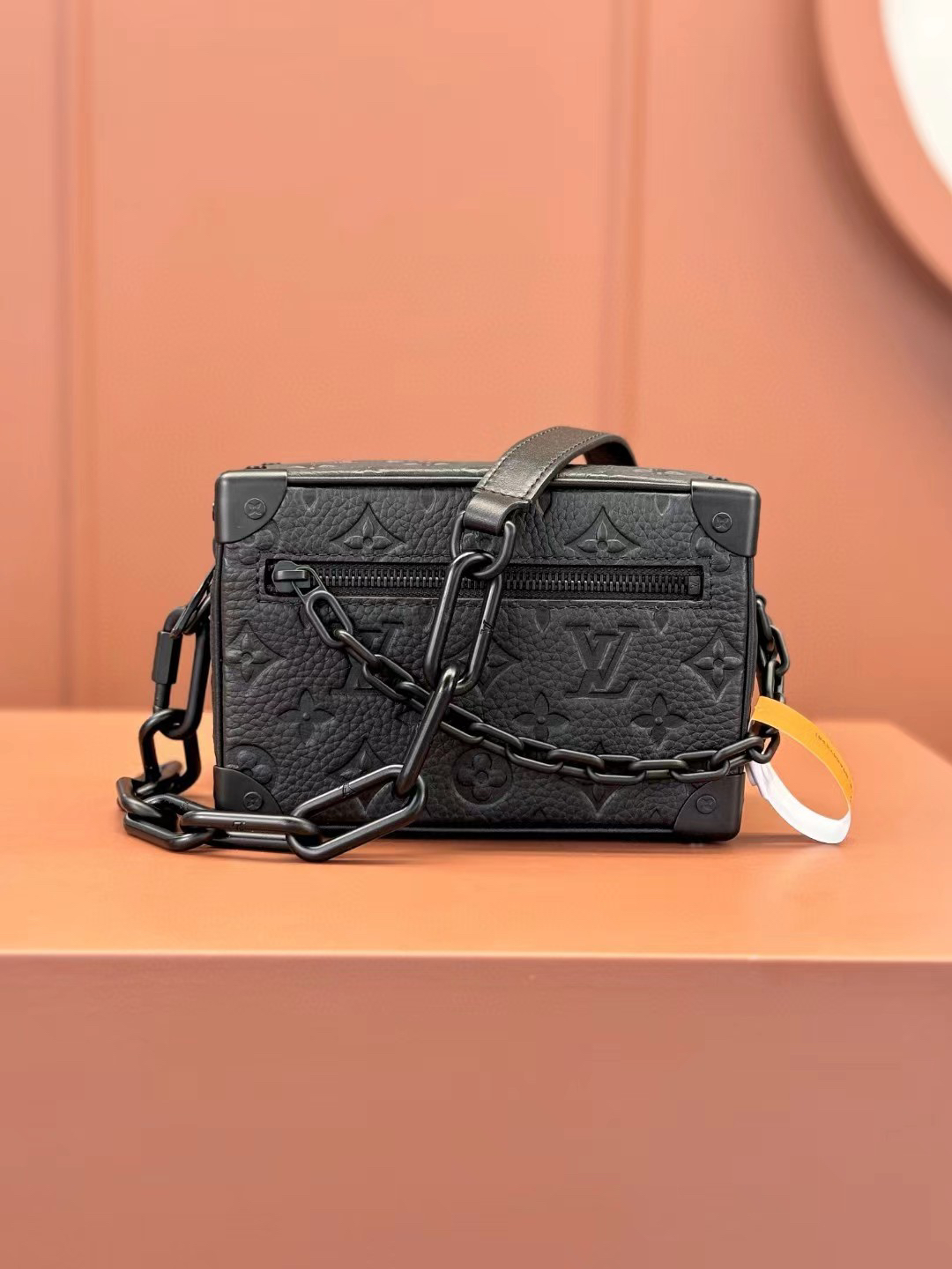 LouIs VUITTON SOFT TRUNK 老花压纹 牛皮 黑盒子方盒子包斜挎单肩包 迷你 男款 黑色(CB)
