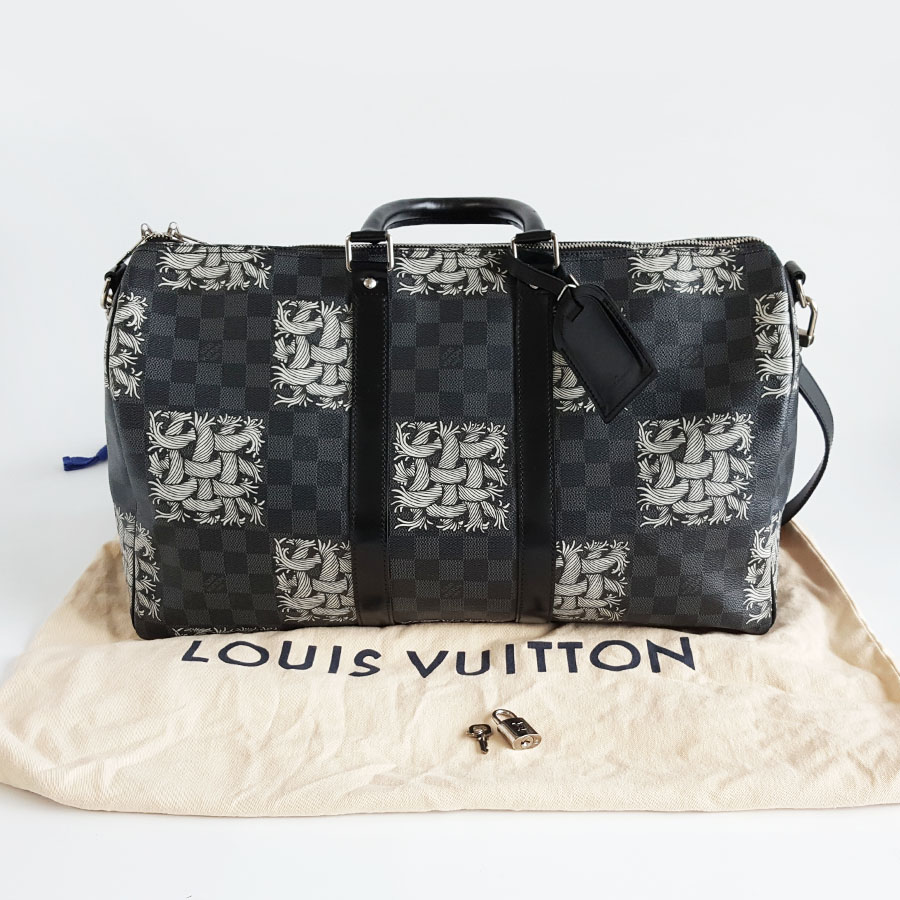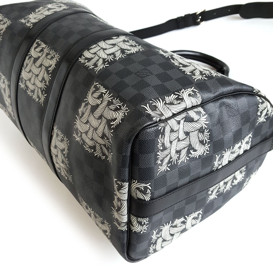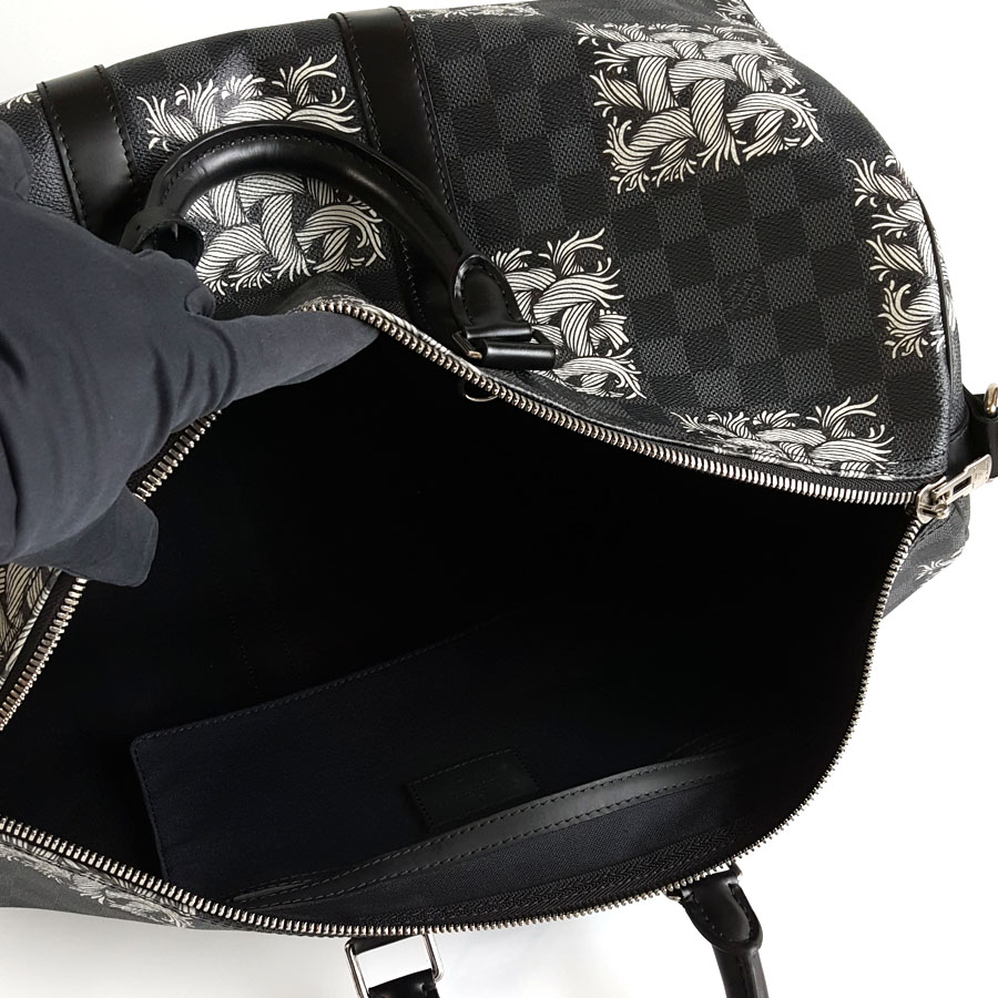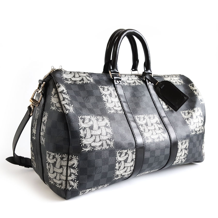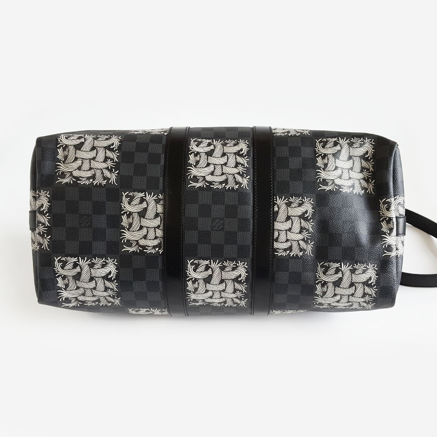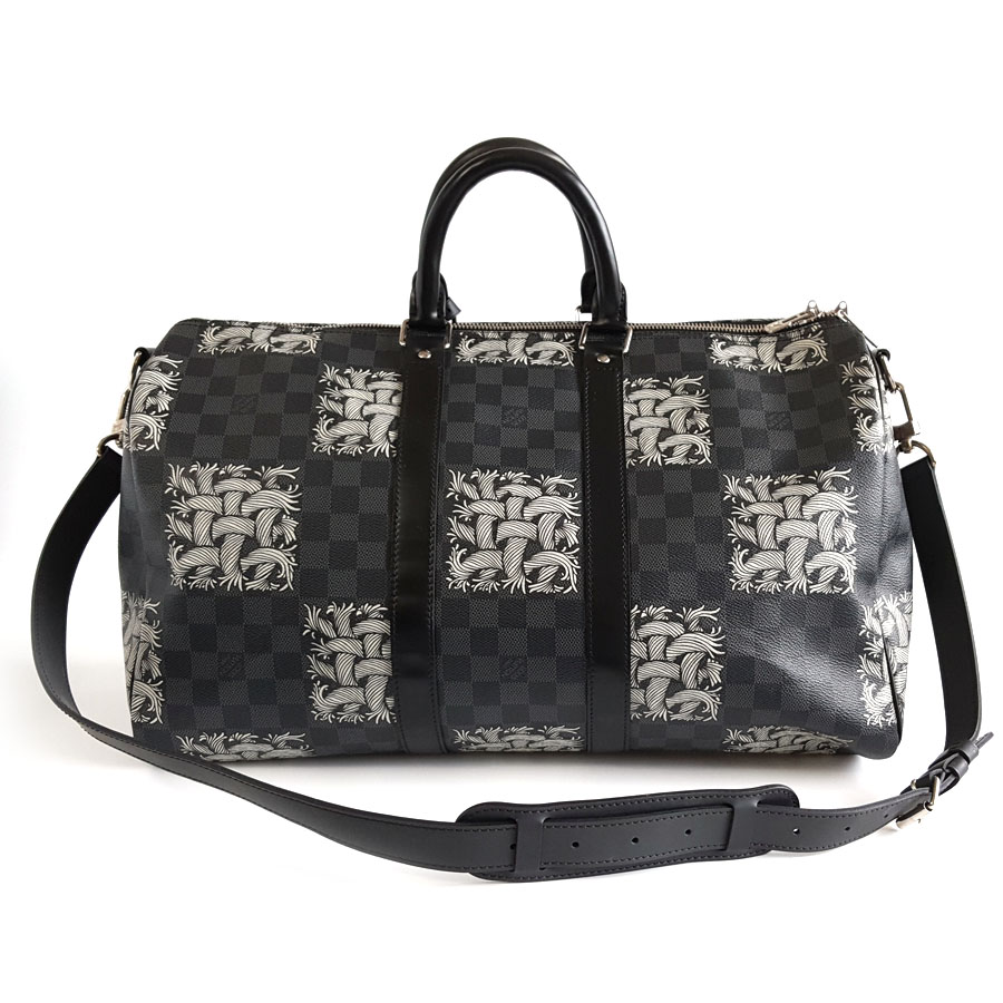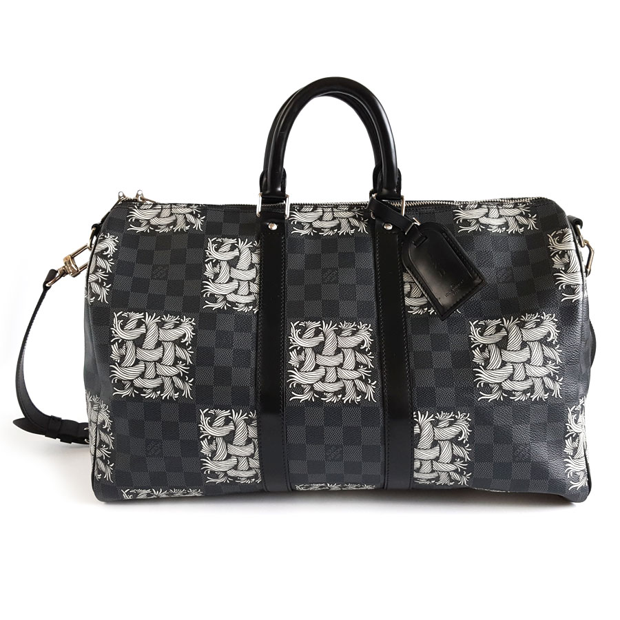 【95新】LV路易威登Keepall黑棋盘格藤原浩绳结限定keepall 45手提单肩包法国中性款现售价:10500!150725NJS04