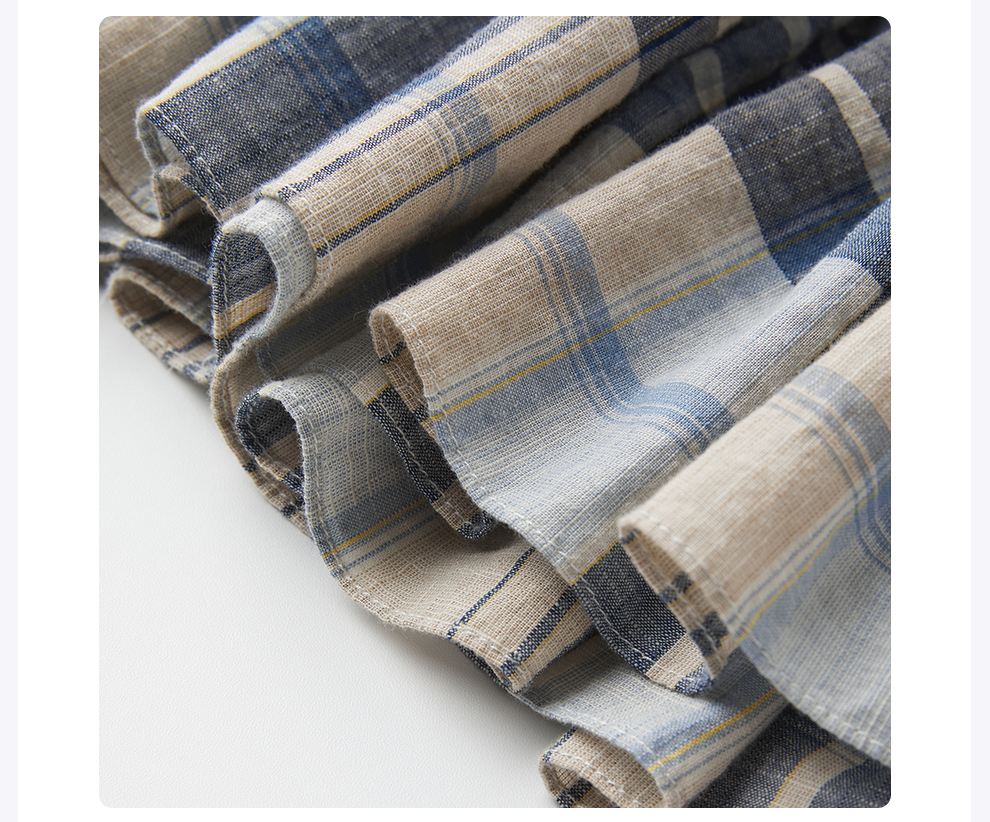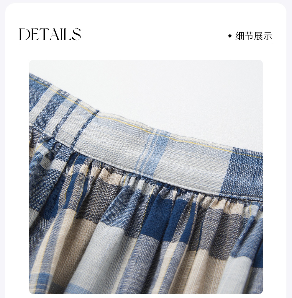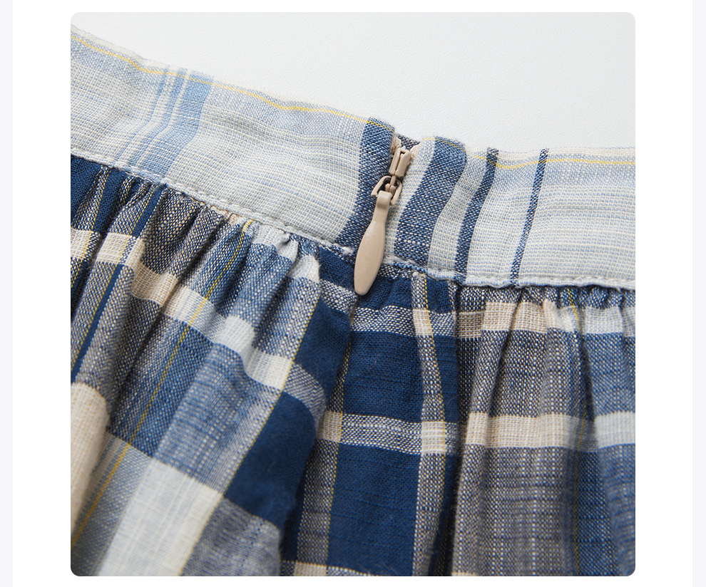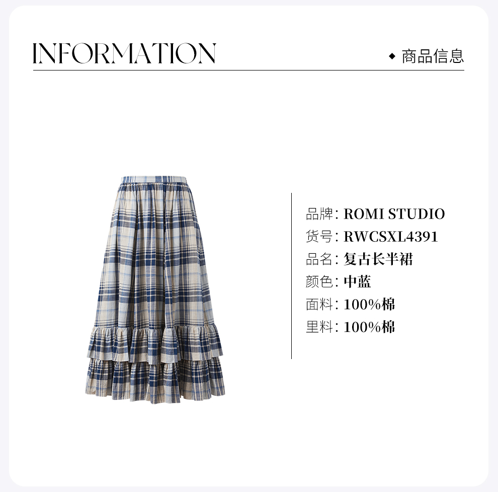 ROMI STUDIO“松弛优雅”复古格纹棉质薄纱高腰A字半身裙RWCSXL4391【发货时间:25-30天】