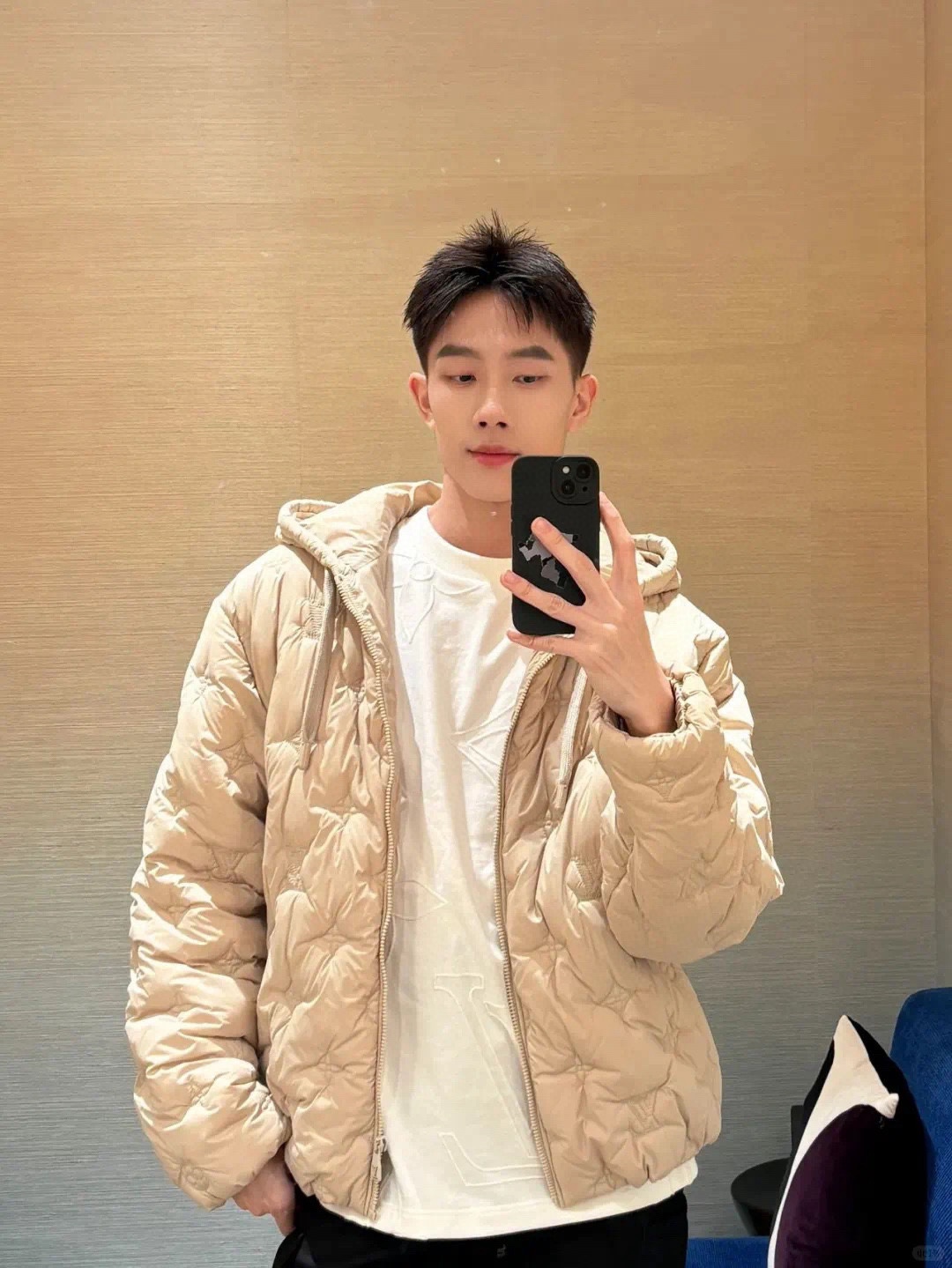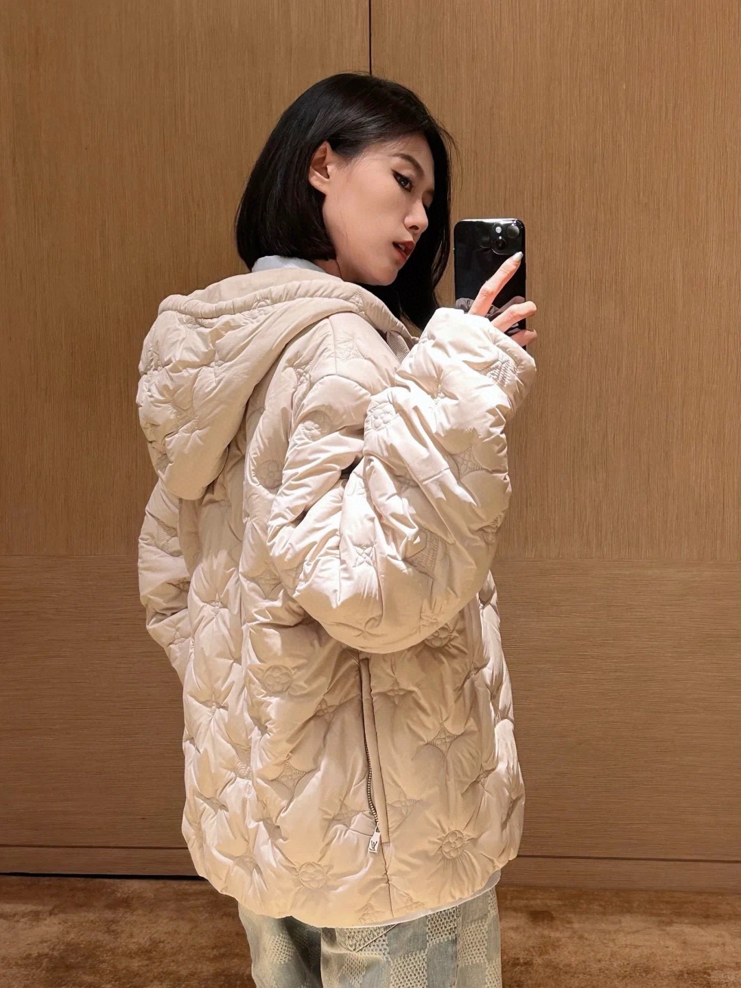 驴家 杏色满身绗绣花棉服外套(JN)
