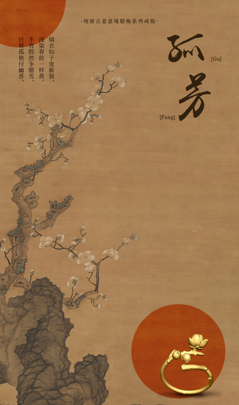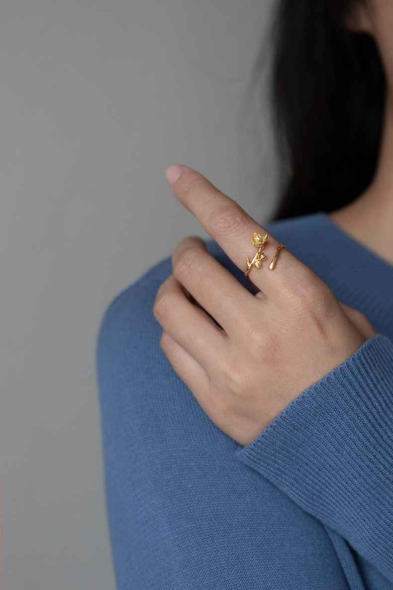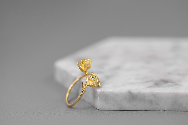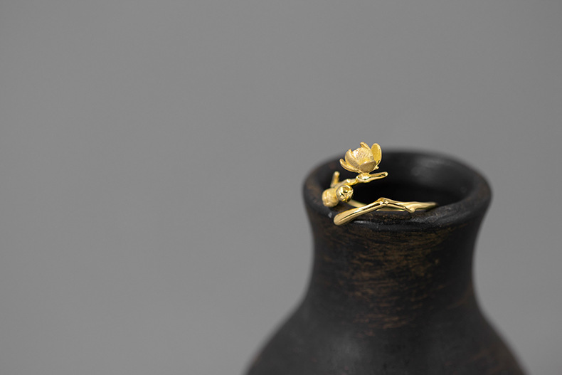 孤芳 纯银腊梅花开口戒指