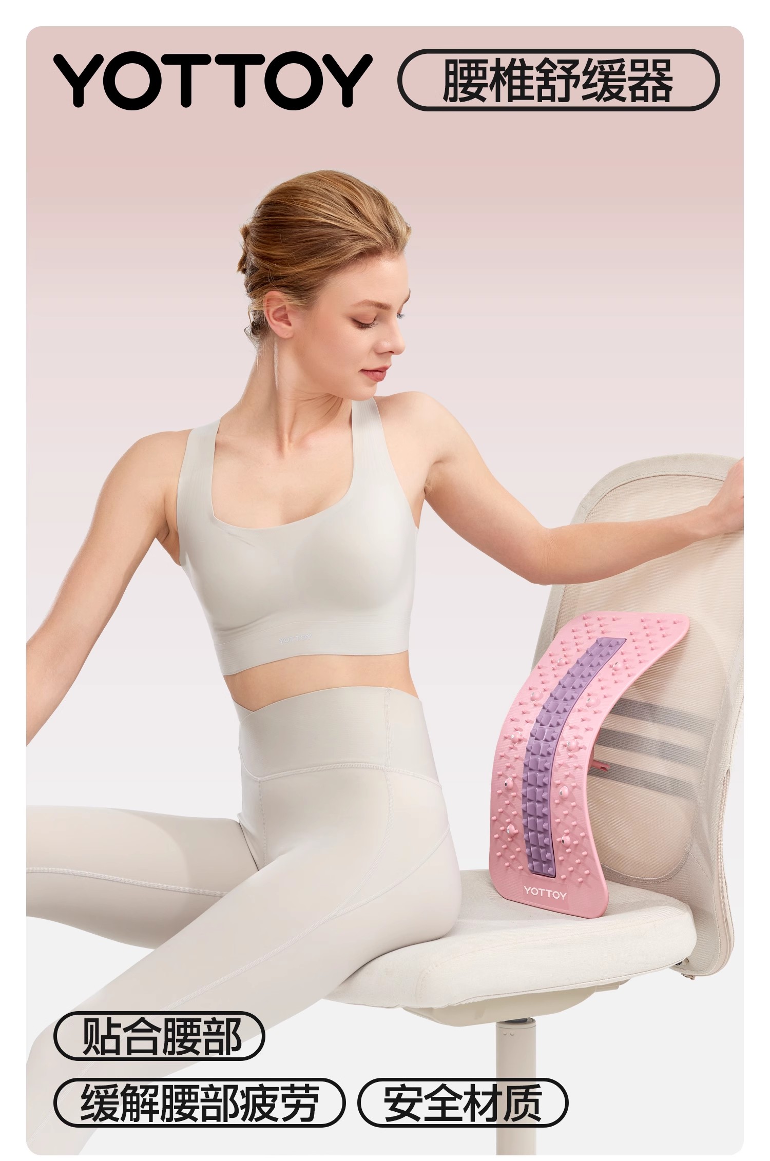 腰部托举器【YOTTOY】腰部托举器顶腰板腰椎舒缓器普拉提脊柱矫正器家用腰部牵引拉伸器