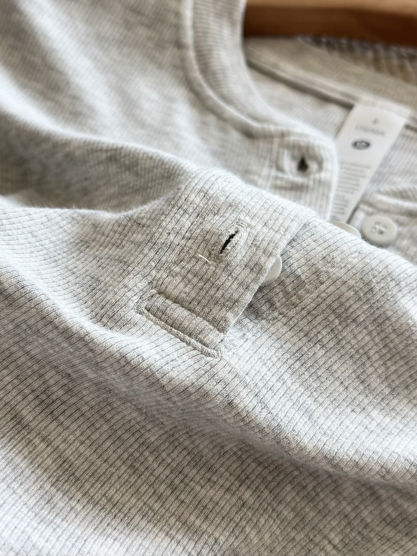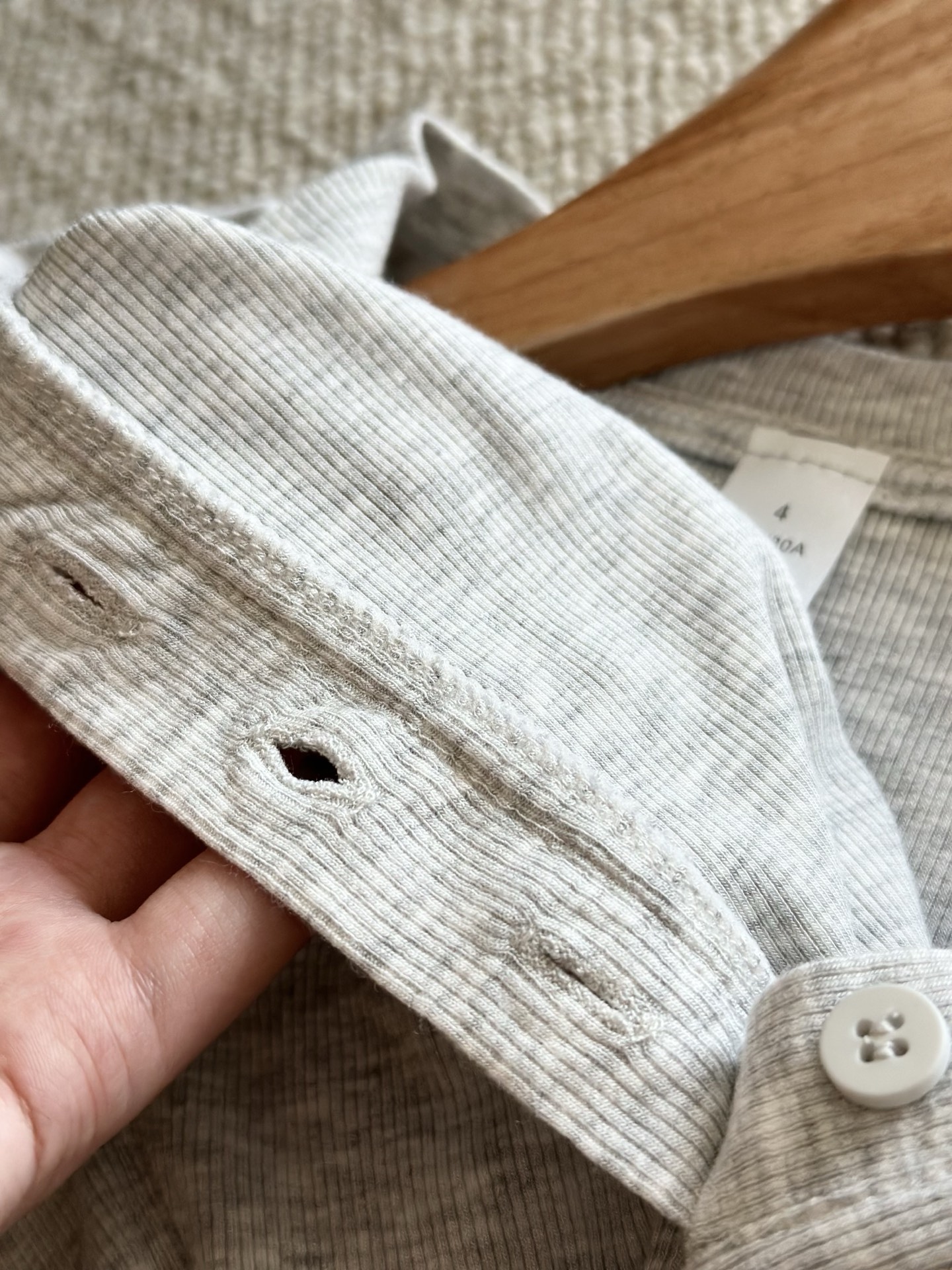 其次细节是我不得不说的 亨利领大家都知道本身做工就是很复杂 考验的就是工厂手工 ,肉眼可见精致平整你们自己看看好啦 而且扣子都是手工缠脖,面料和扣子之间都是有空间的 开合更加方便 !市面上我看了很多都是没有的 也是官方分辨防伪的地方 ,再就是扣子都是定织定染的 颜色都是顺色的 !存在阴阳色