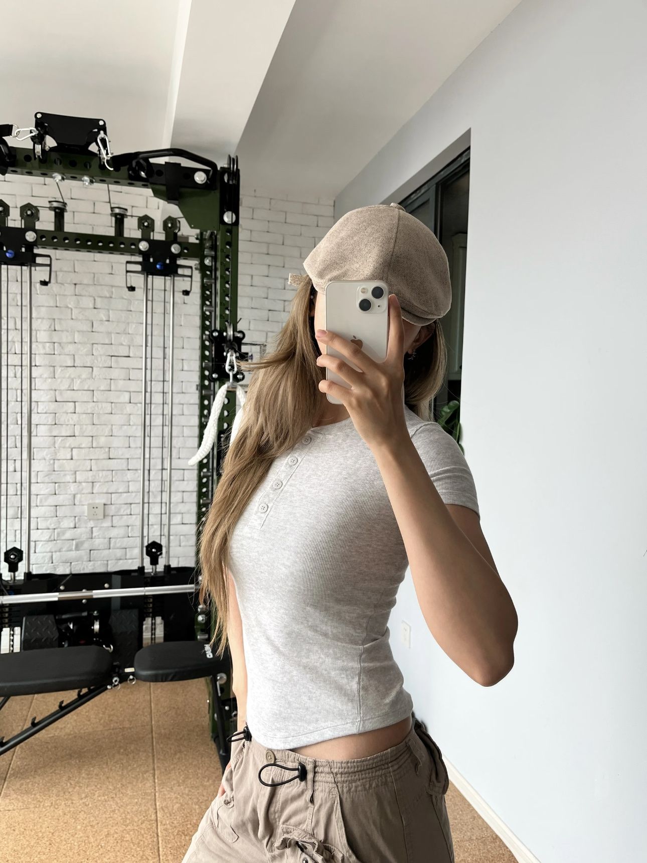 版型属于小短款 底部是一个弧度顺下来的,所以即使短款也不会短 完美勾勒出线条轮廓感,显得整个人体态感很好看!!