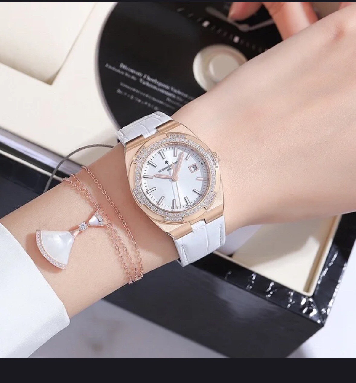 表盘完美尺寸33mm 表圈镶嵌78颗1.3vvs南非天然足反钻石💎 重塑其品牌标注性经典悠闲优雅和坚固实用原则 时针’分针带有白色夜光涂层,在较暗的环境下也可以阅读时间 是新一代职业女人日常生活搭配时尚潮流 其重点追溯全球各大品牌最新主打颜色天之蓝 将该颜色塑造在最为经典的纵横四海系列 更显优雅高贵