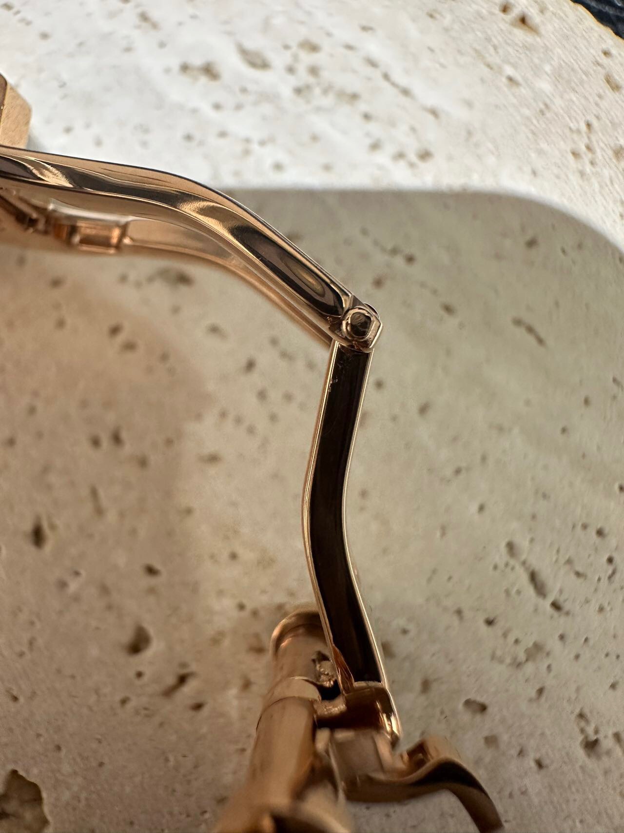 表带采用进口密河鳄鱼 每张鳄鱼只取中间的料,中国野生动物管理专用标示认证CNWM鳄鱼皮在经过纯手工水染加三天耗時打磨才完成皮面光滑度 经过纯手工水染加三天耗时打磨才完成皮面光滑度 所有边都属全包边纯手工缝制 更加体现所有工艺细节与难度