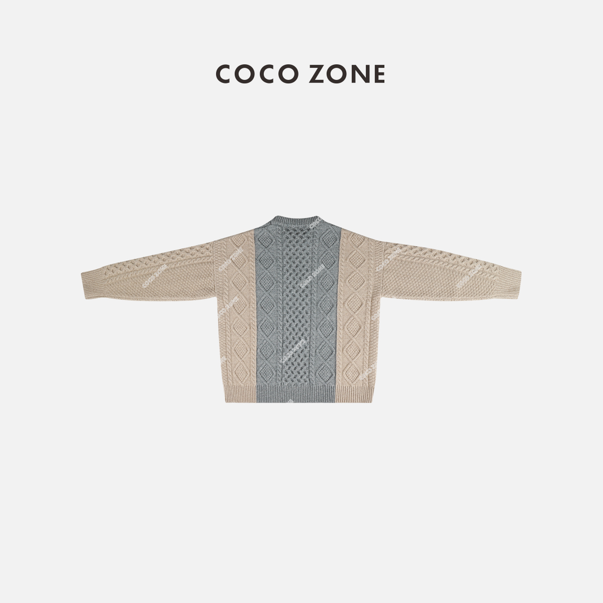 COCO ZONE 圆领拼色百搭毛织上衣休闲纹理感针织衫23C50061