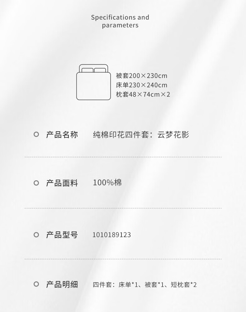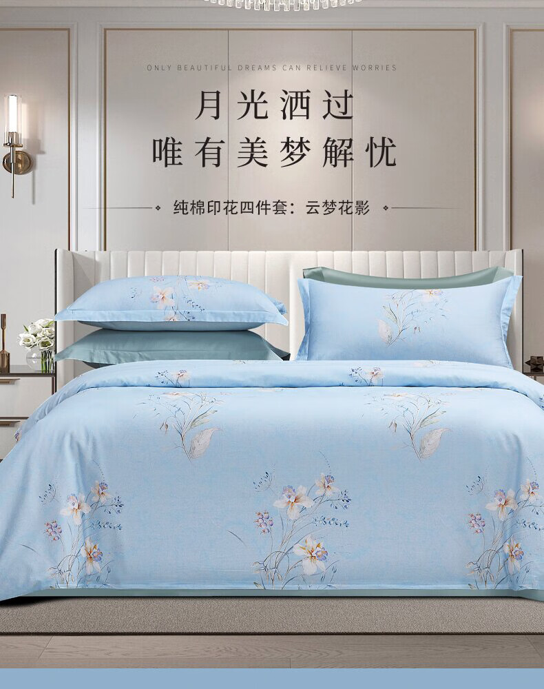 梦洁家纺 纯棉印花四件套-云梦花影