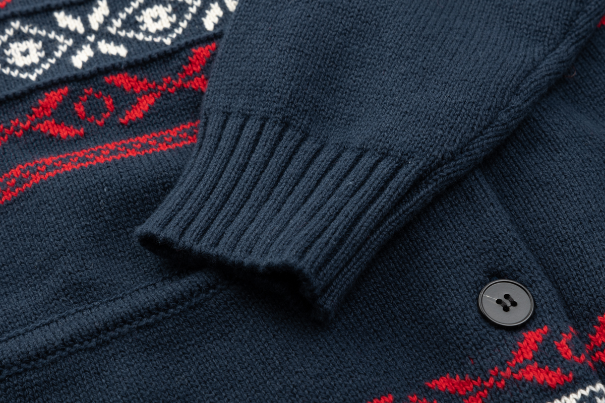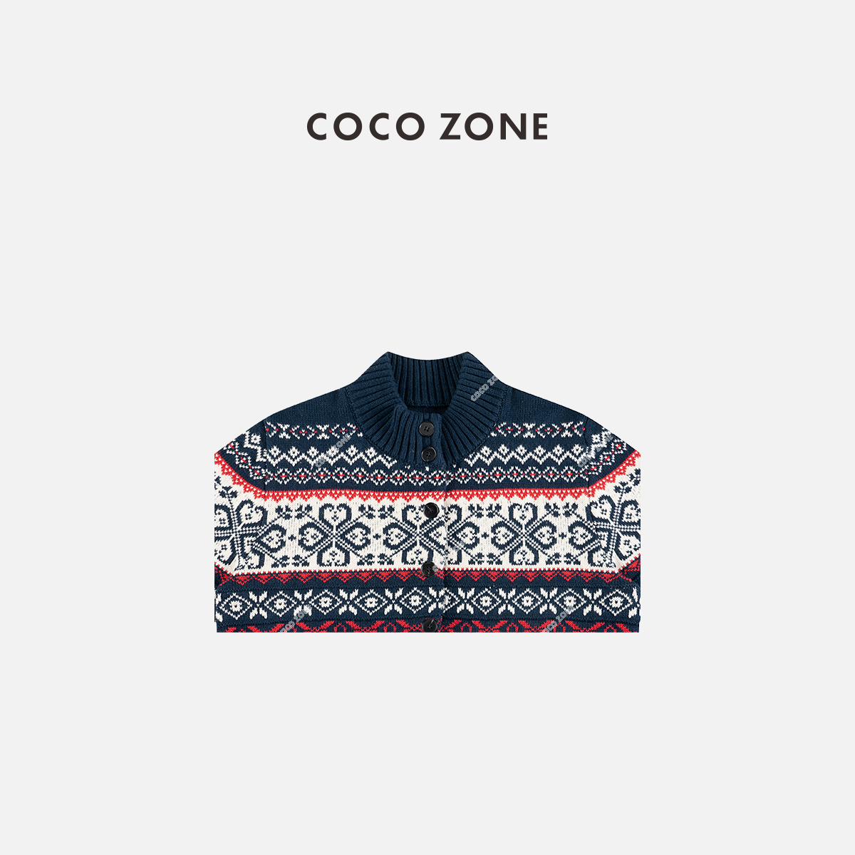 COCO ZONE 复古费尔岛撞色针织提花毛织开衫CC2D3006