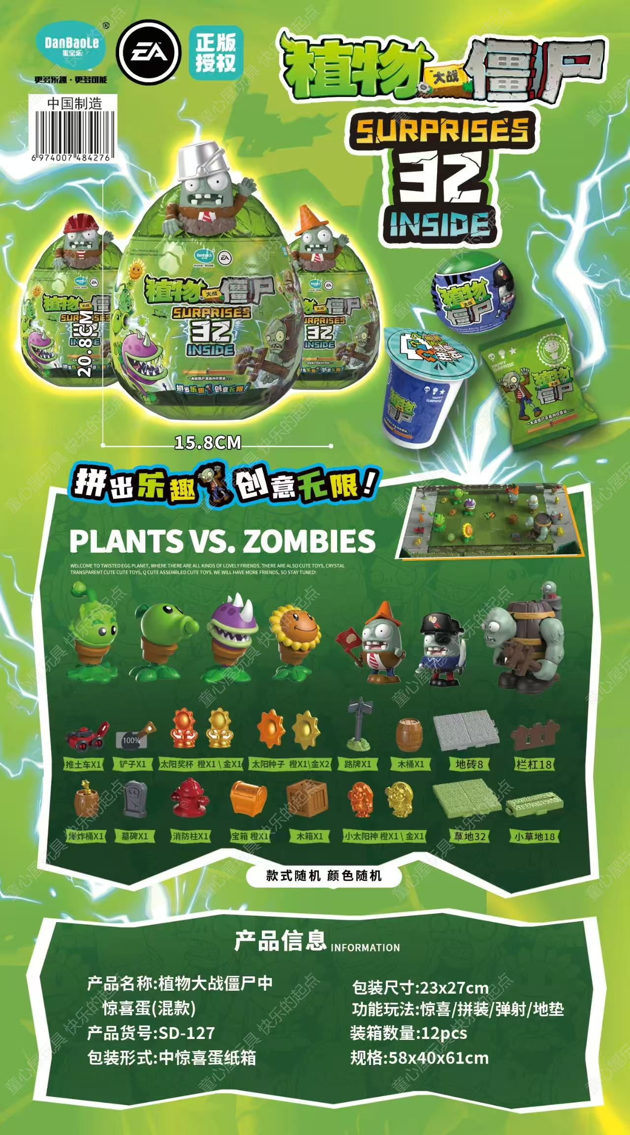 【春节送礼】正版植物大战僵尸惊喜蛋盲盒儿童拼装玩具新年礼物
