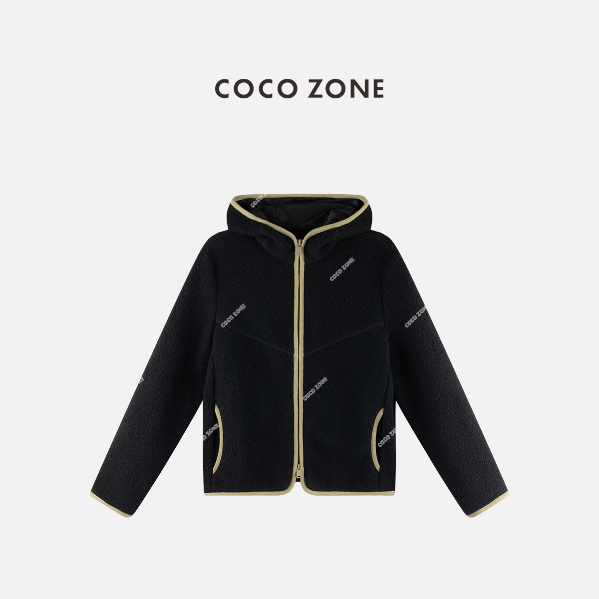 COCO ZONE 秋季撞色边连帽外套长袖拉链开衫上衣CC1C2091