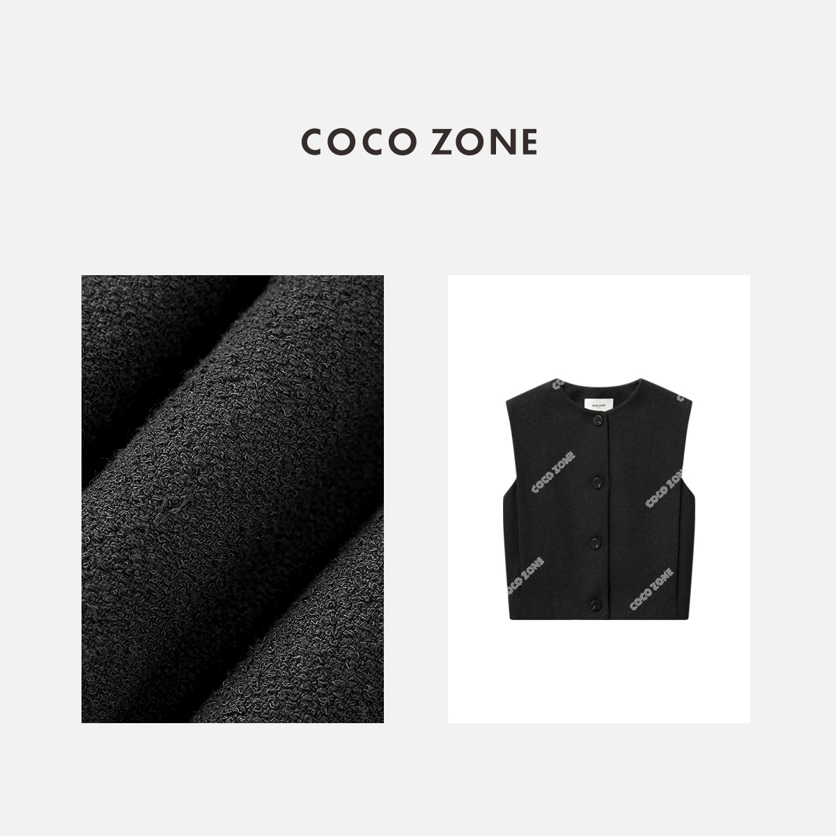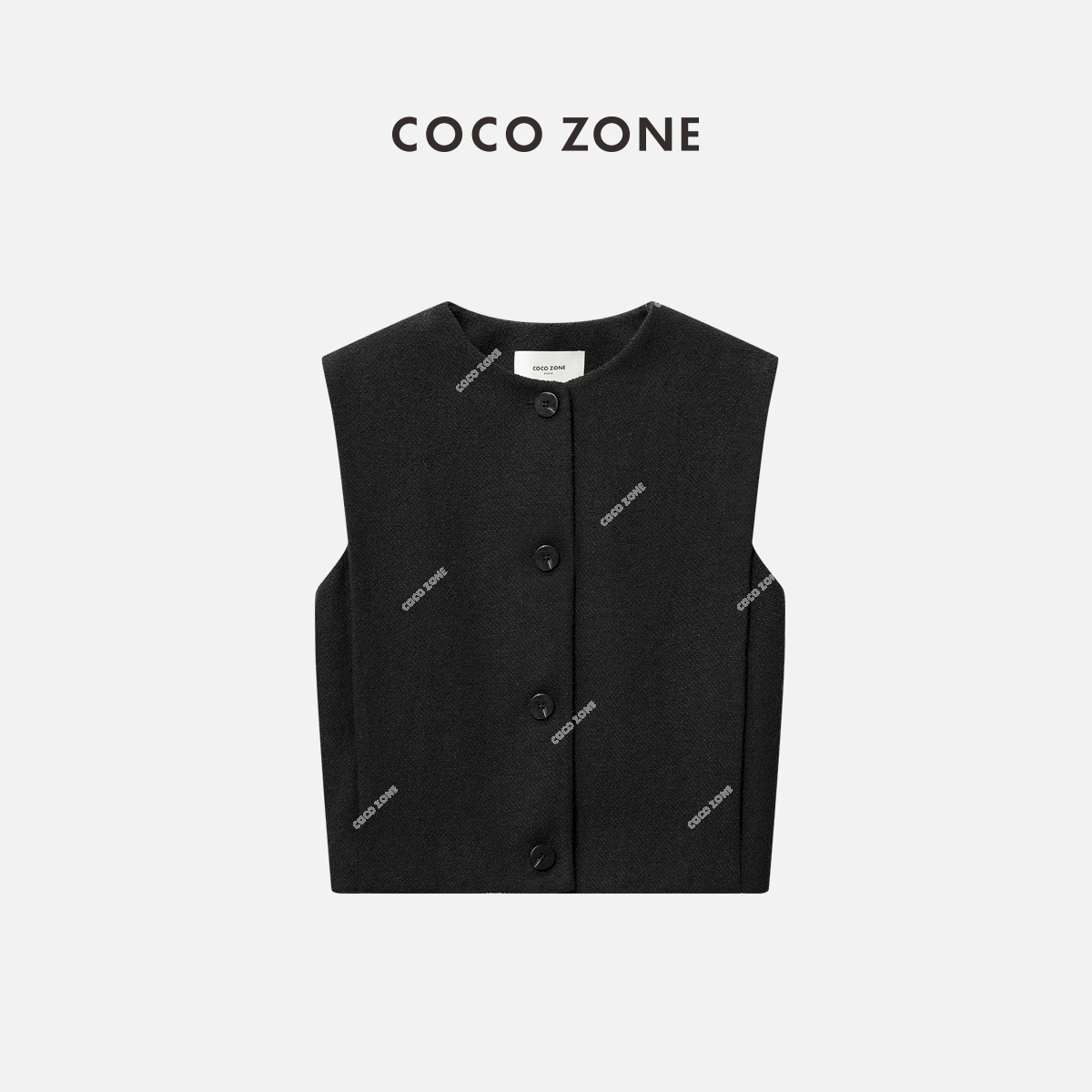 COCO ZONE2024高级感圆领排扣马甲破缝拼接含里布马夹24C10173