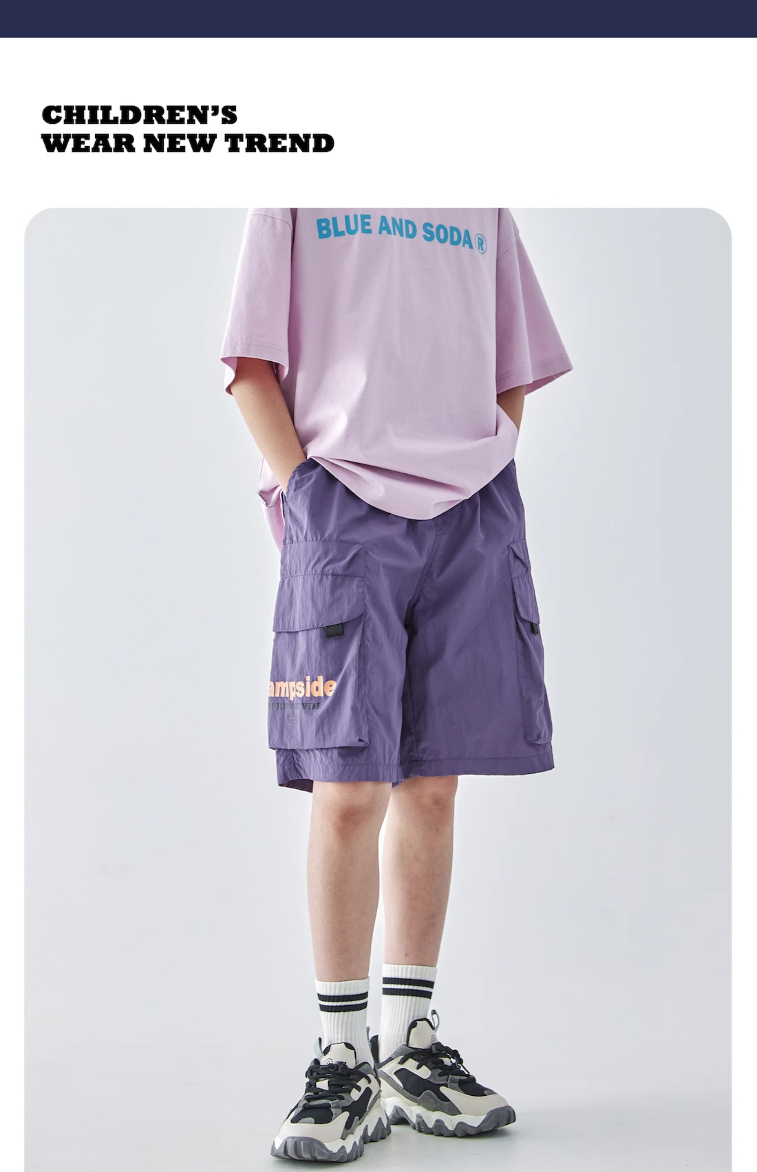 蓝汽水2025夏季山系户外轻薄短裤立体感工装大口袋亲子直筒五分裤