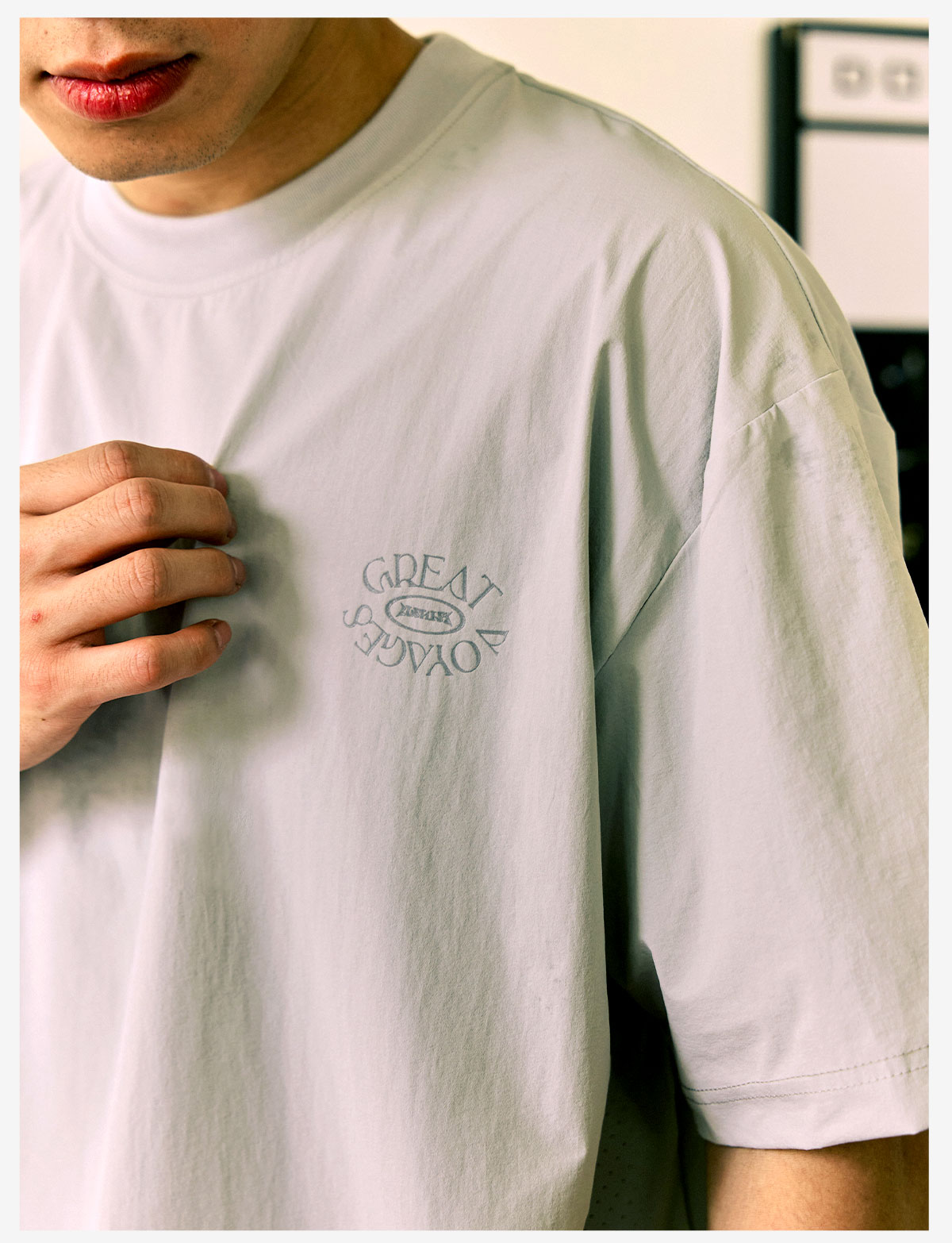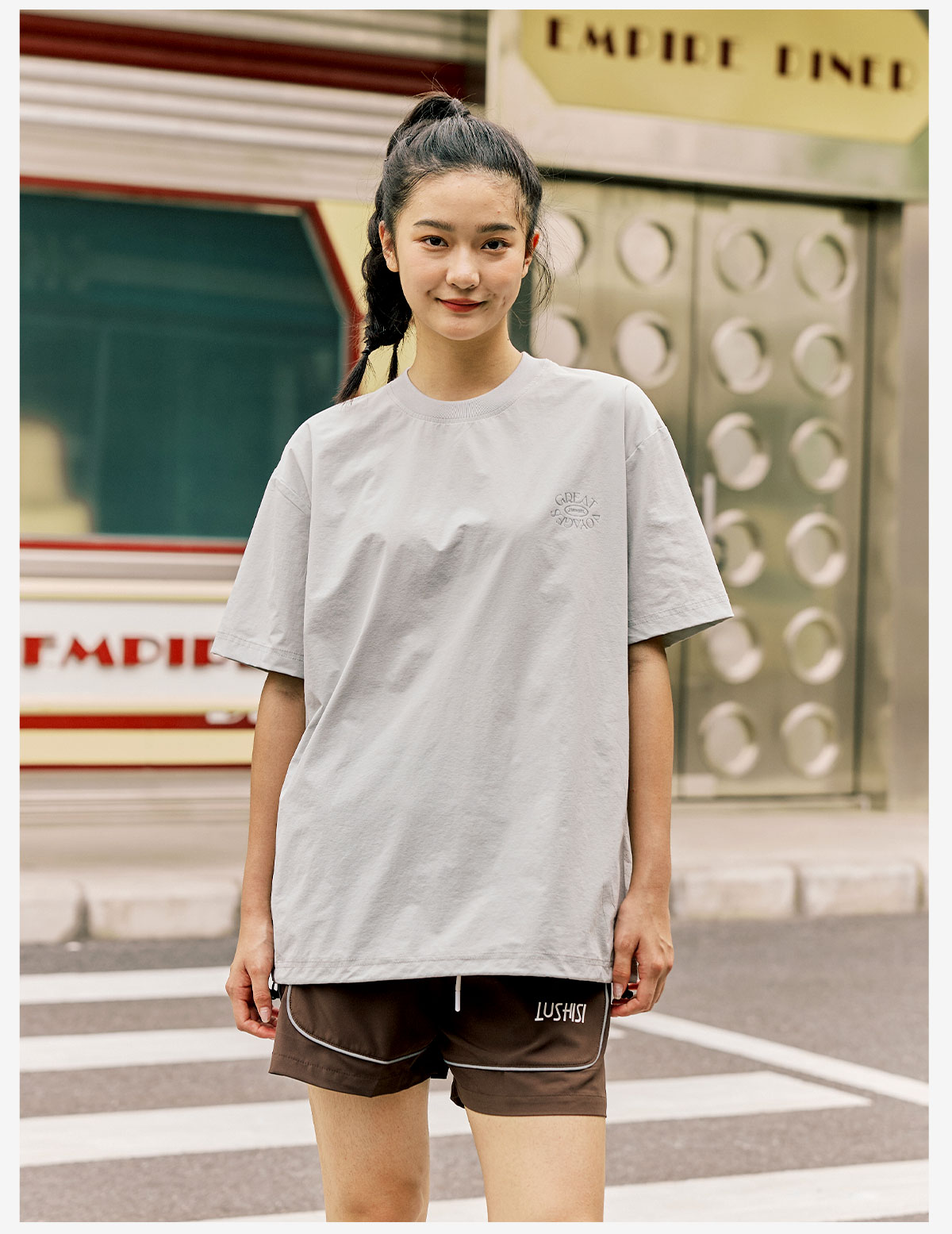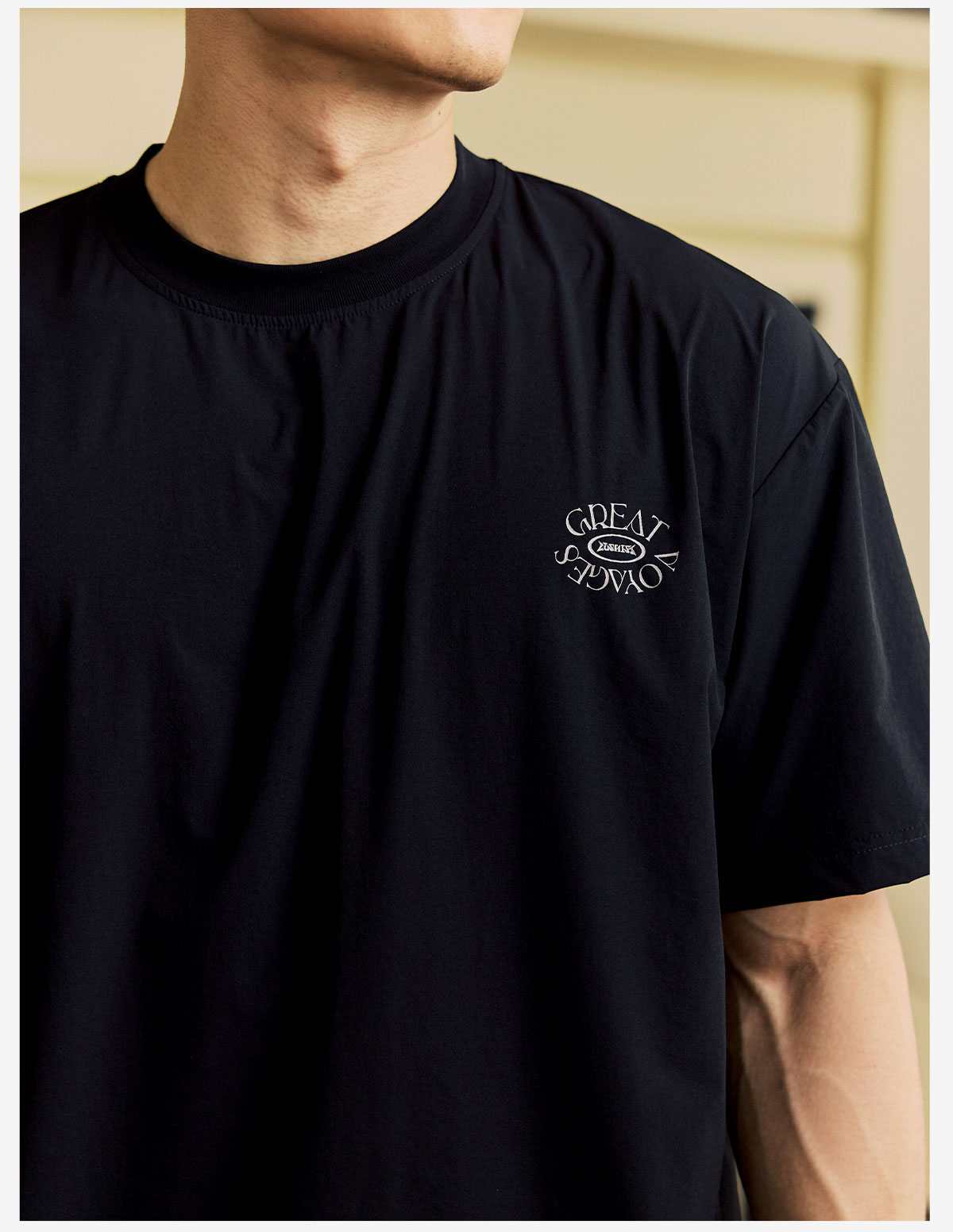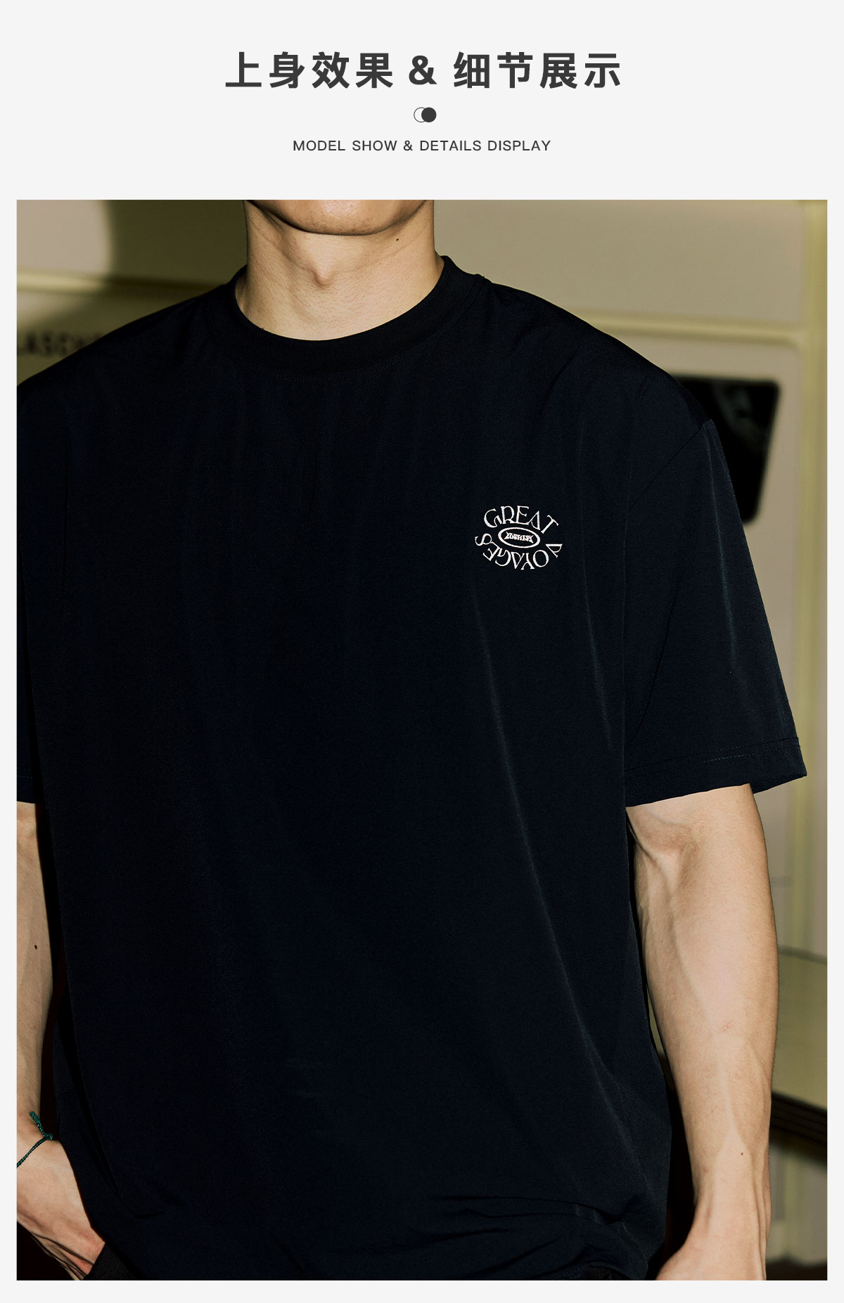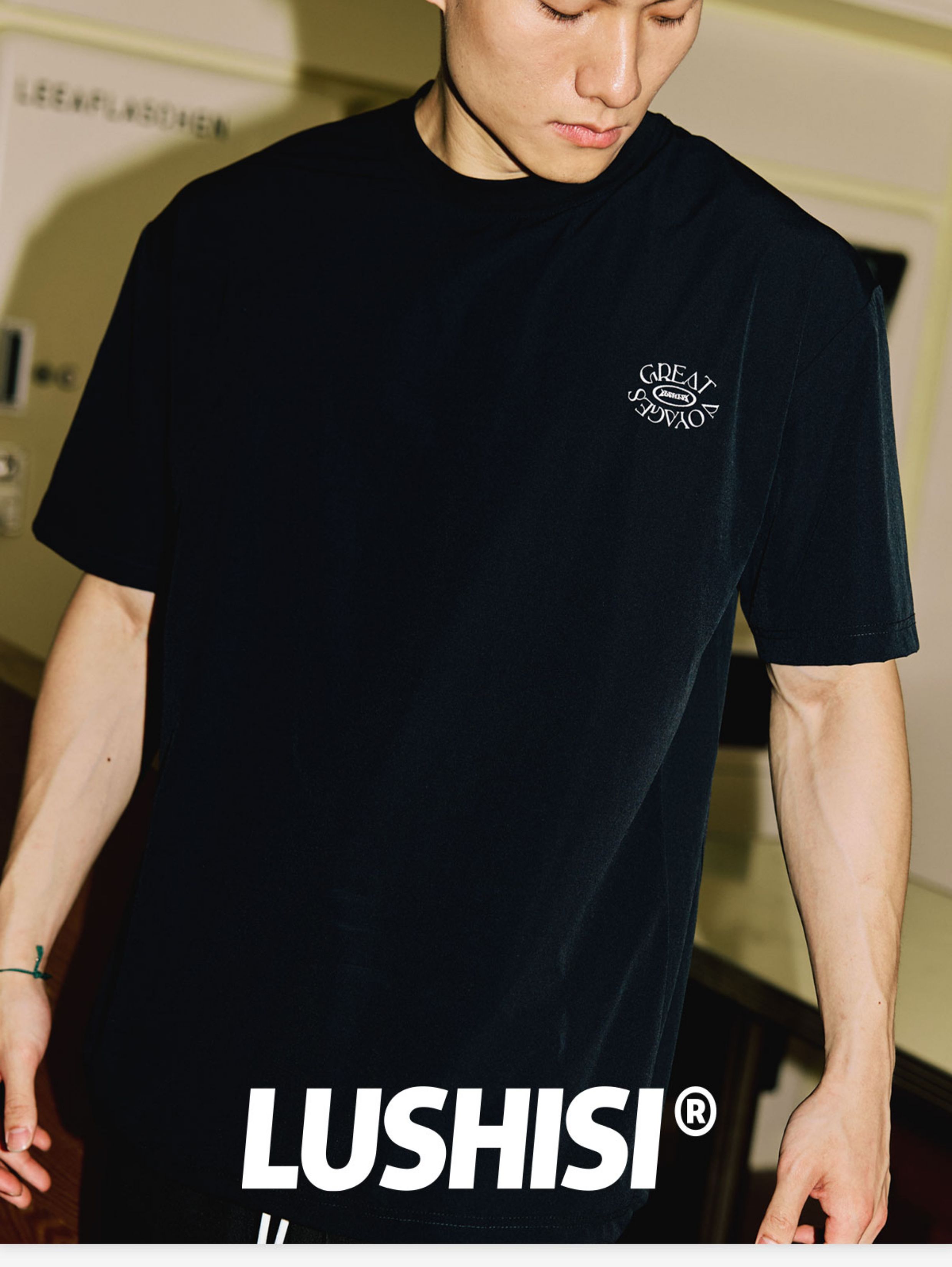 LUSHISI「下摆抽绳」伟大航行主题印花LOGO短袖运动风速干凉感t恤