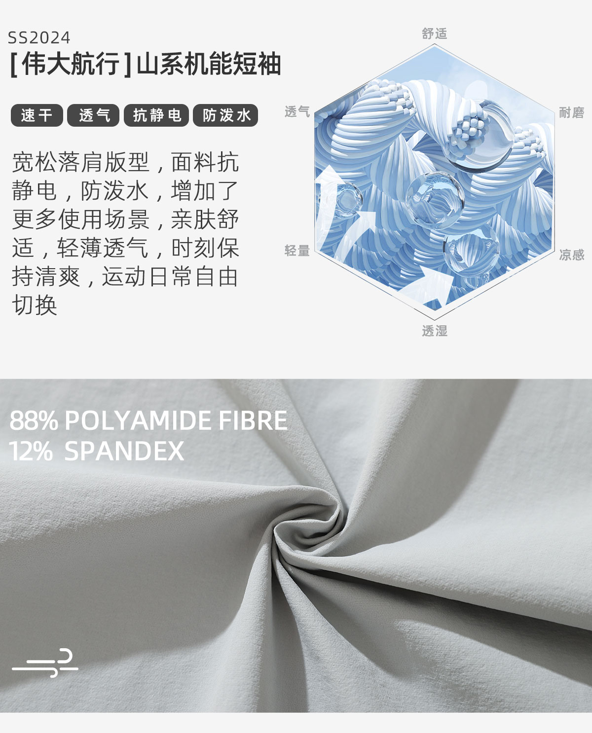 LUSHISI [帆船]“遇水显印花”户外美式篮球运动短袖吸湿排汗速干