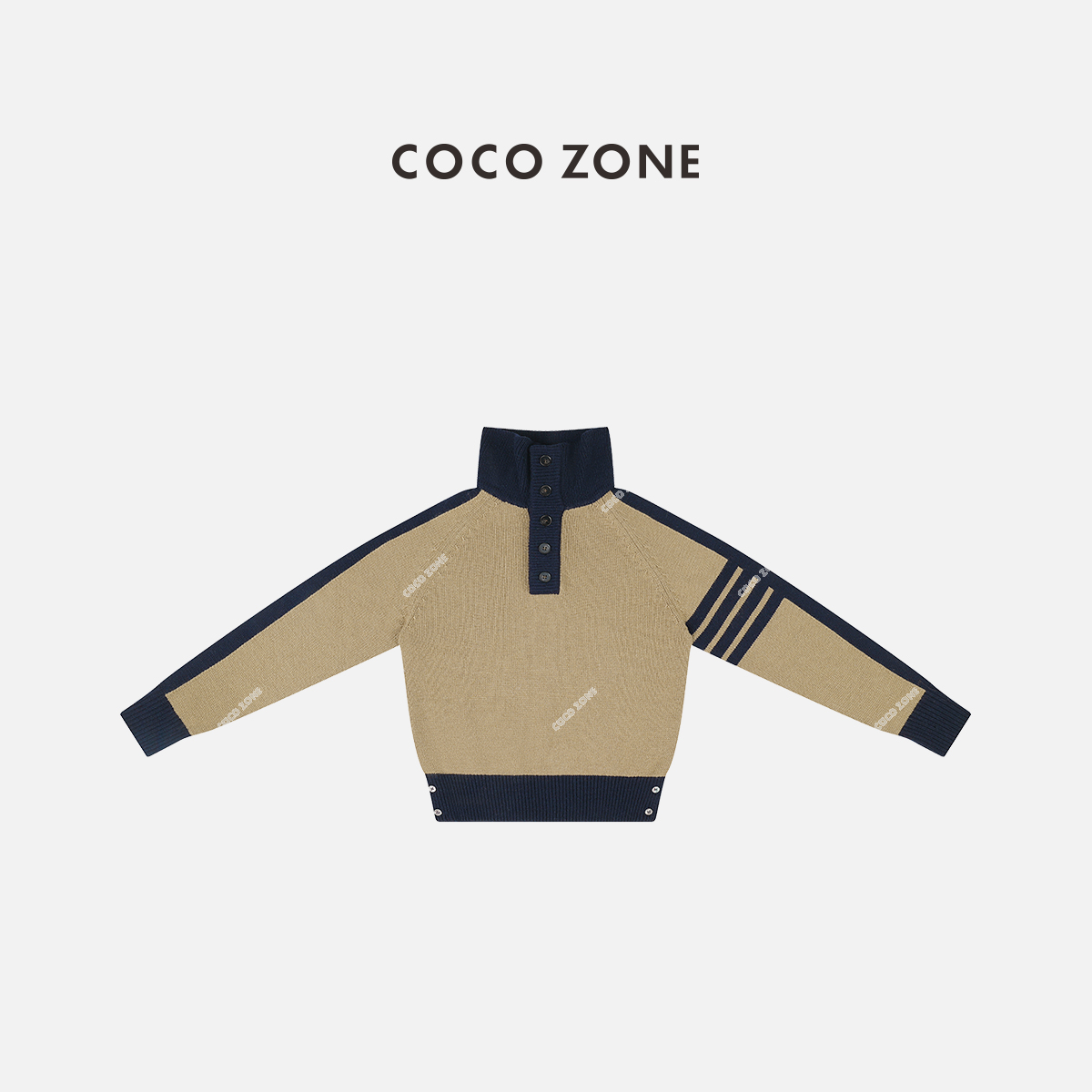 COCO ZONE"懒系毛衣"条纹撞色高领毛衣针织衫23C30540