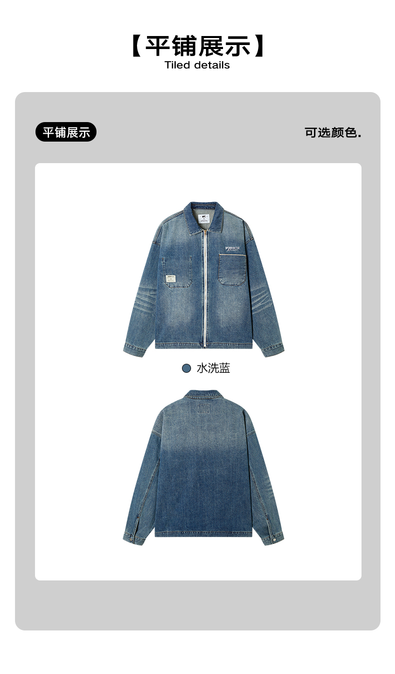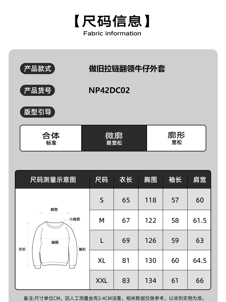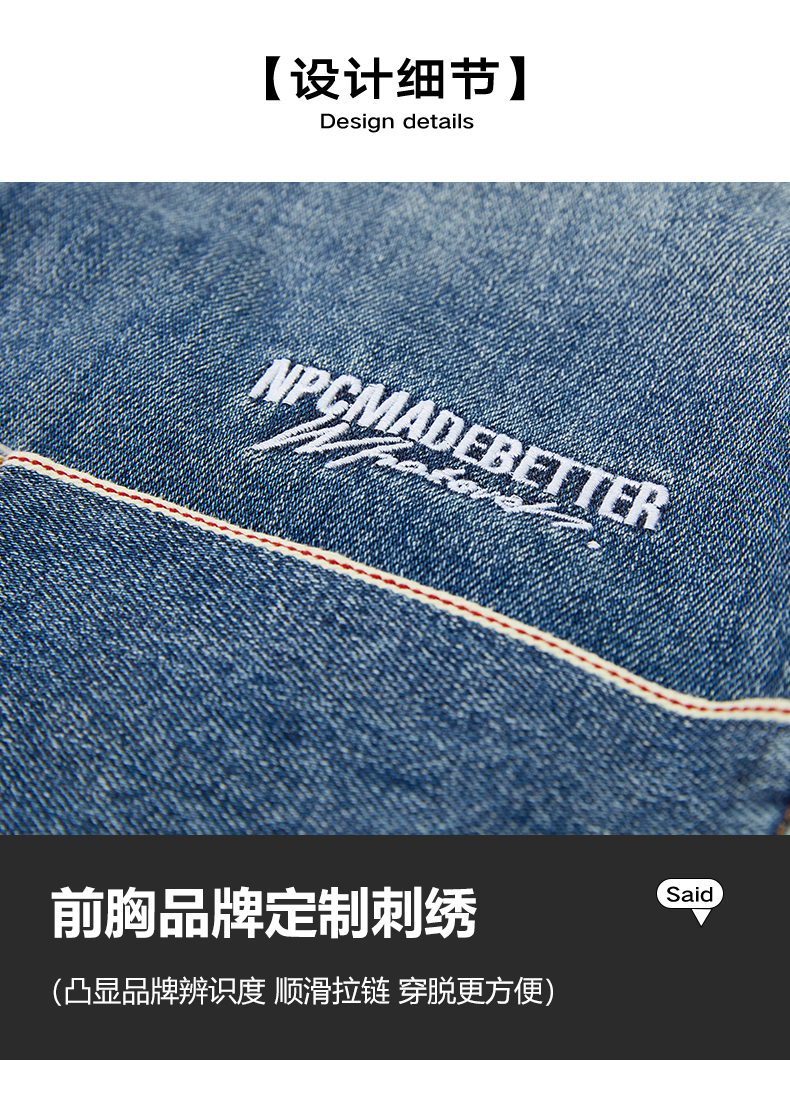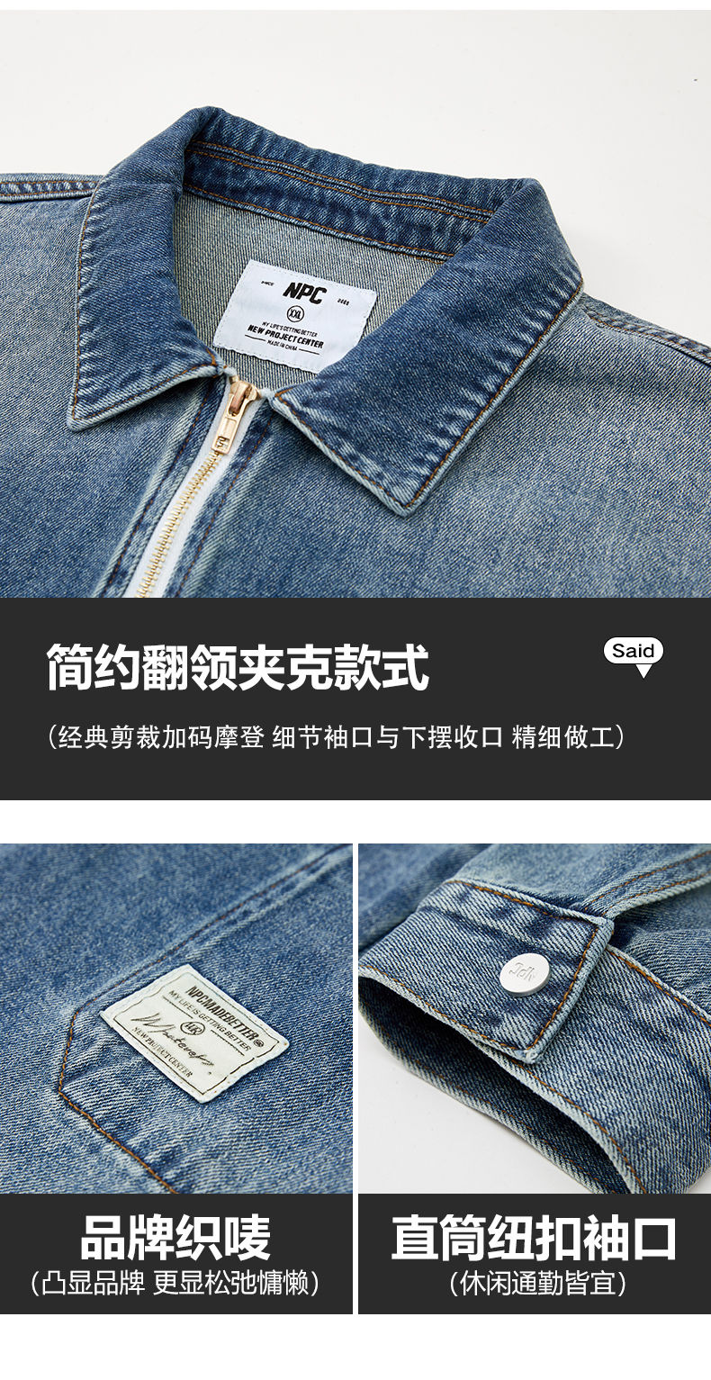 NPC潮牌做旧复古丹宁水洗牛仔夹克翻领刺绣拉链外套NP42DC02 J