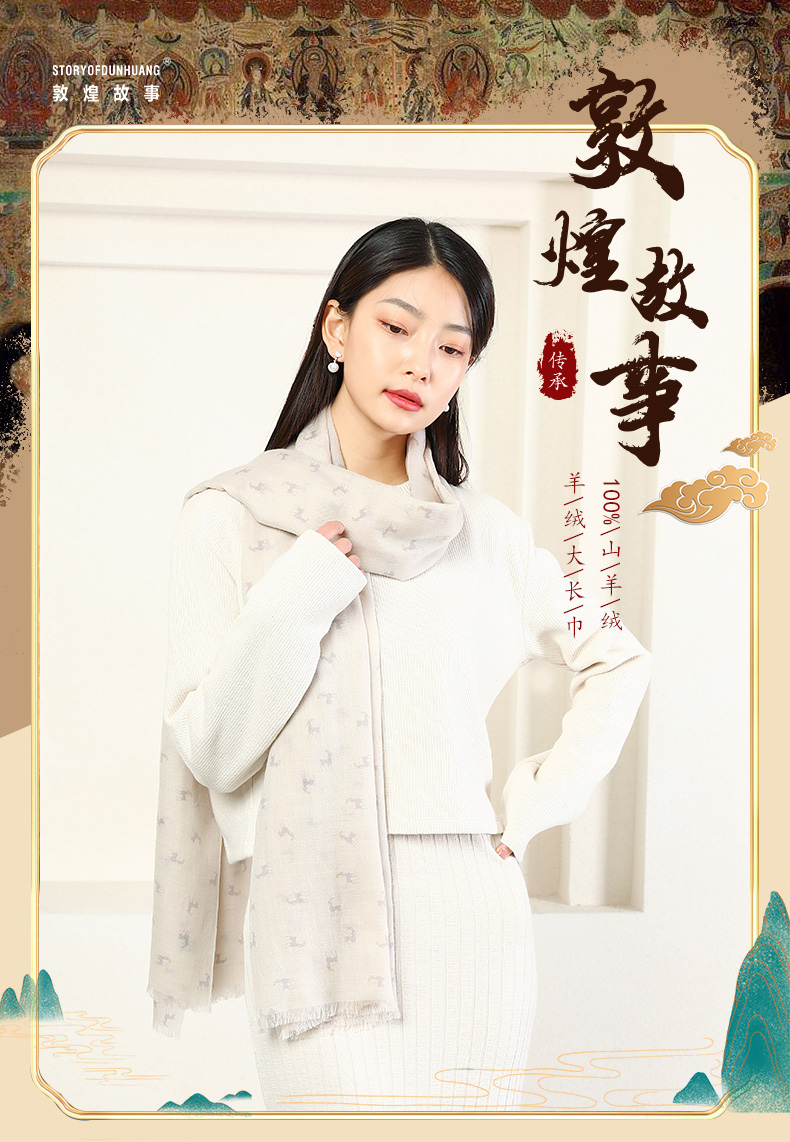敦煌故事桑蚕丝春秋印花送礼中国风女丝巾