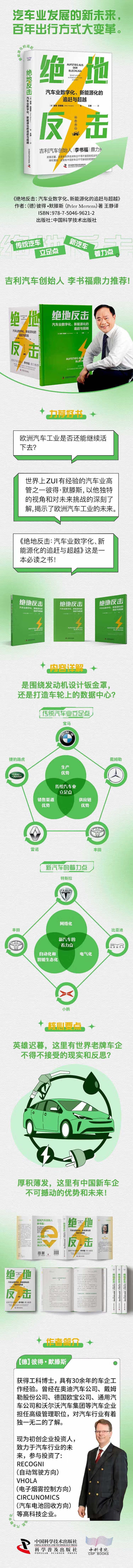 1.汽车不再仅仅是一个围绕发动机设计的钣金罩,而是作为围绕用户构建的智能生态系统的一部分。新型汽车需要兼顾顾客需求和生产条件、安全要求和设计质量、技术合理性和驾驶情怀。这就要求我们必须重新构思汽车以及组织。 2.智能汽车更应该称为“车轮上的数据中心”。谁能获得Z强大的芯片,谁就能在竞争中提供Z好的用户体验,谁就能在自主驾驶汽车领域赢得头筹。自从汽车转变为智能设备以来,新车的开发必须从内到外进行,首先是软件,然后才是车辆设计。形式追随功能,而功能包含在软件和芯片中。如果数据是新的汽油,那么应用程序和更新就是新的商业模式。 3.它山之石可以攻玉,本书是作者为鼓励德国和欧洲汽车制造商赶上汽车发展潮流,为通向数字化、网络化的欧洲汽车工业道路奠定基础。对于没有历史负担的我国车企的发展,这些语重心长的建议也非常实用。比如,转变商业模式、重新思考客户需求、重塑价值链、增加新流动性等。 在新造车时代,汽车工业的未来不单是数字化,也是客户和车企交互化的,汽车业发展的方方面面事关每个人。作为国际L先的汽车专家,作者具有30多年大型Z名车企的工作经验,熟悉东西方的企业文化和社会发展状况,通过本书给读者展示了企业工业发展的未来方向。