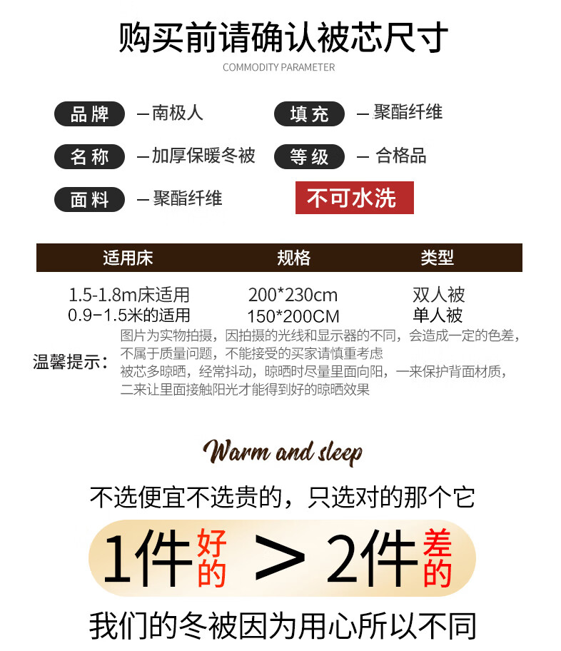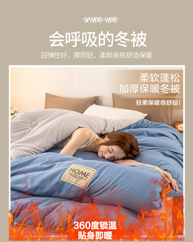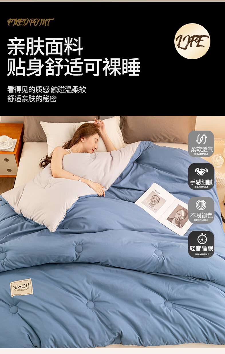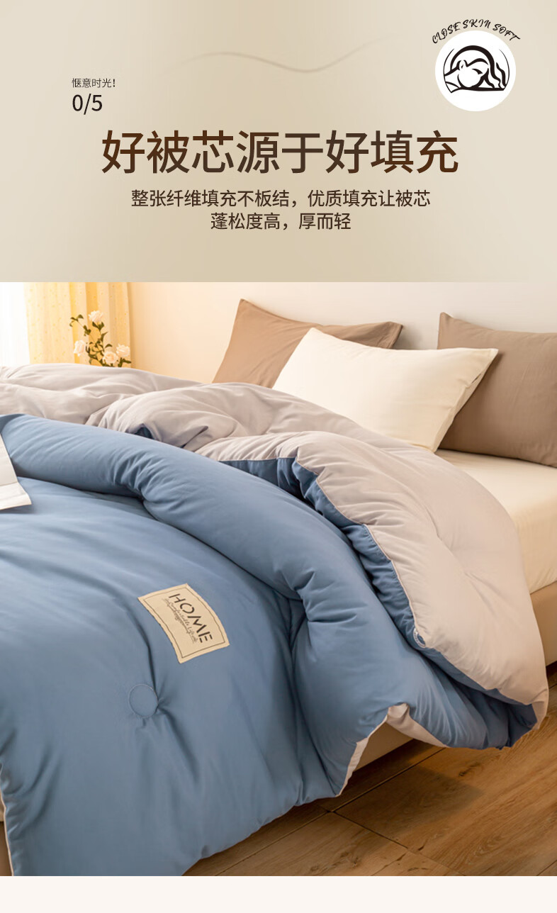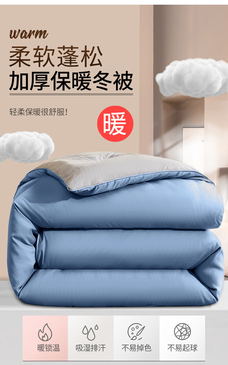 南极人双拼色亲肤贴布保暖冬被150*200cm-5斤