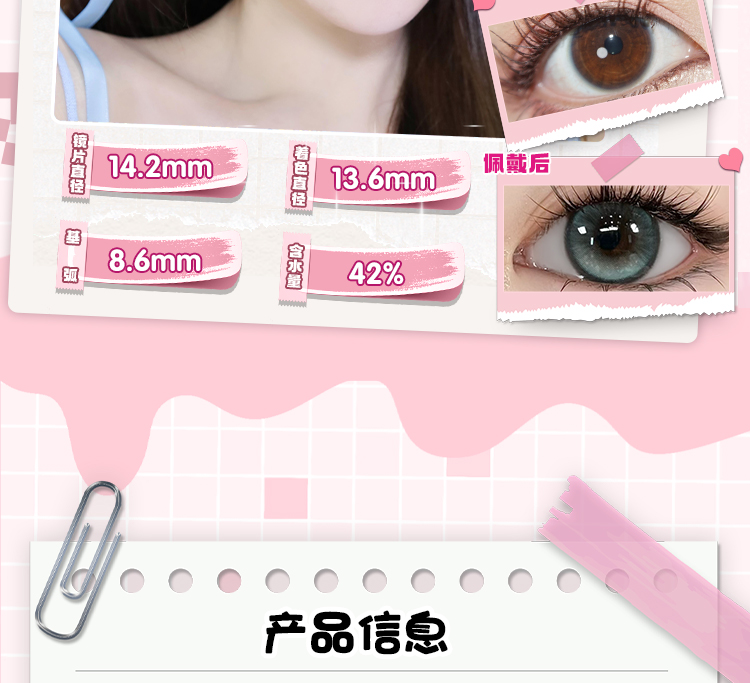 新品【草莓裙】14.5大直径半年抛美瞳1片装