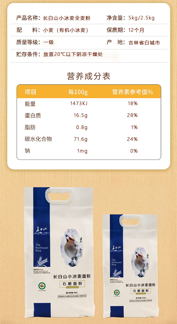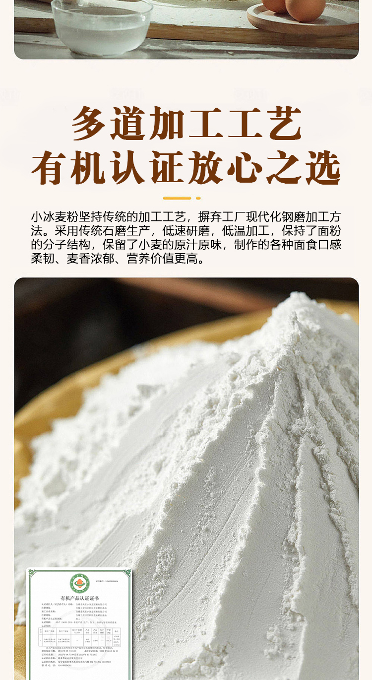 长白山有机石磨小冰麦面粉2.5KG