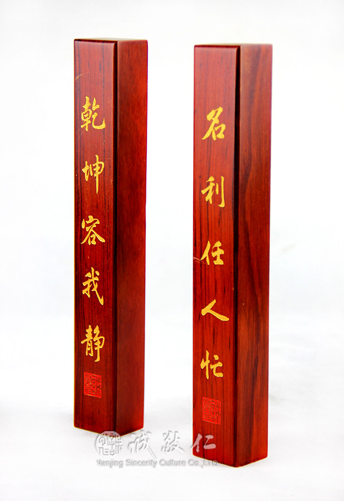 【基本信息】: 产品材质:巴西花梨木 单根镇纸规格:24cm*4cm 包装:硬盒包装一只 【文化内容】: 乾坤容我静,名利任人忙 【白话易解】: 在当前以经济效益为中心,人人都为名为利忙碌的年代,总有一些看破红尘的文人雅士或 者暂时厌倦了竞争的人们,他们会找一个僻静的角落,让自己的心安静下来。读一读修养身心 的书籍,或者在宣纸上挥毫泼墨一番,体验一下“乾坤容我静,名利任人忙”的意境。这何尝 不是一种幸福的感觉! 【材质介绍】: 巴西花梨以其纹理漂亮,板材宽且顺直,木质硬,适合雕刻,在广式家具中使用较多。用 该材料做的大柜或者写字台等独板、独面比较多,深受 人们的喜欢。 巴西花梨生长于热带南美洲,属豆科植物。其木纹有若鬼面者,类似于黄花梨,所以被称 为“巴西花梨”。其木质坚实,色彩鲜艳,纹理或 隐或现,不静不喧,质地温润,清晰美丽, 木结花纹圆晕如钱。在漆饰后的弦面或近弦面上木射线明显,弦切面木射线斑纹亦明显。给人 以文静、 柔和的感觉。可做家具及文房诸器。 该木材的物理性质:气干密度约为0.80-0.86g/cm3,木材具光泽,无特殊气味和滋味,纹 理斜至交错,结构细而均匀。木材重,强度高。很少有 白蚁危害。 该木材为散孔材。心边材区别明显,心材黄褐至红褐色,边材白色至浅黄白色。生长轮略 明显。管孔在放大镜下明晰,略小至中,单独及少数短径列复管孔(2—4个),管孔内常含深色 沉积物,散生。轴向薄壁组织在放大镜下明晰,主为傍管状、翼状、聚翼状及轮界状。木射线 非叠生,在放大镜下明晰,中至略密,甚细至略细。纹理直,常交错,结构细、均匀,干缩性 大、握钉力良好,干燥略快,不易开裂、翘曲。综合评价优 于缅甸花梨。 愿我们养成学习圣贤文化和各项专业知识的好习惯,当您在看书或写毛笔字时,用此镇纸 将方便您的阅读和书写,并同时提醒我们要勤奋学习。愿这款镇纸伴随您的成长成为一个对 国家、对社会卓有贡献的人! |