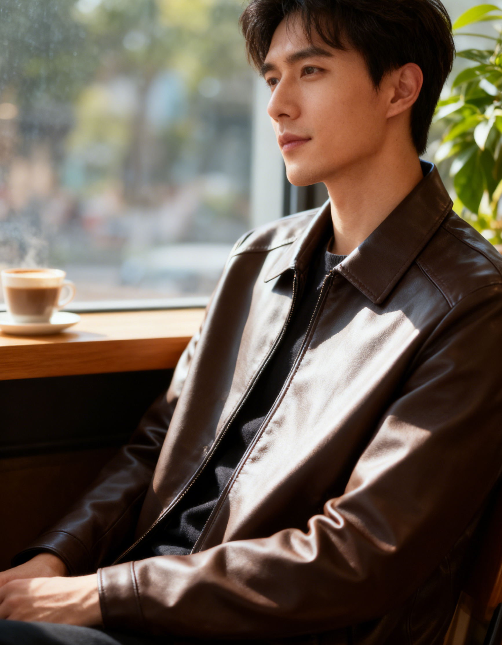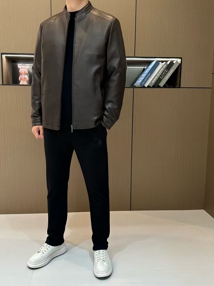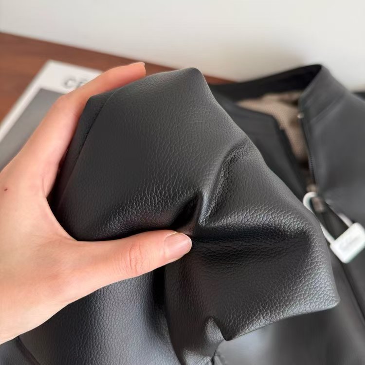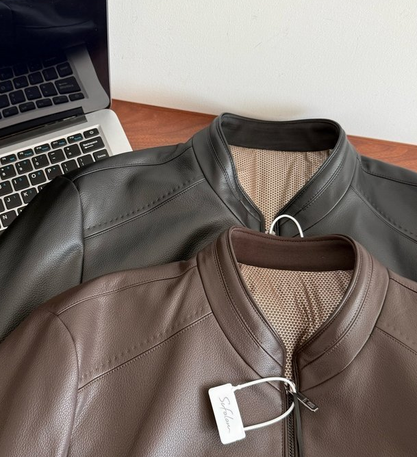 高级哑光光泽感,市面上的普通皮衣根本比不了,这款是德国机器技术莱赛尔蛋白皮,皮质高级柔软好打理,不怕刮,不怕磨。