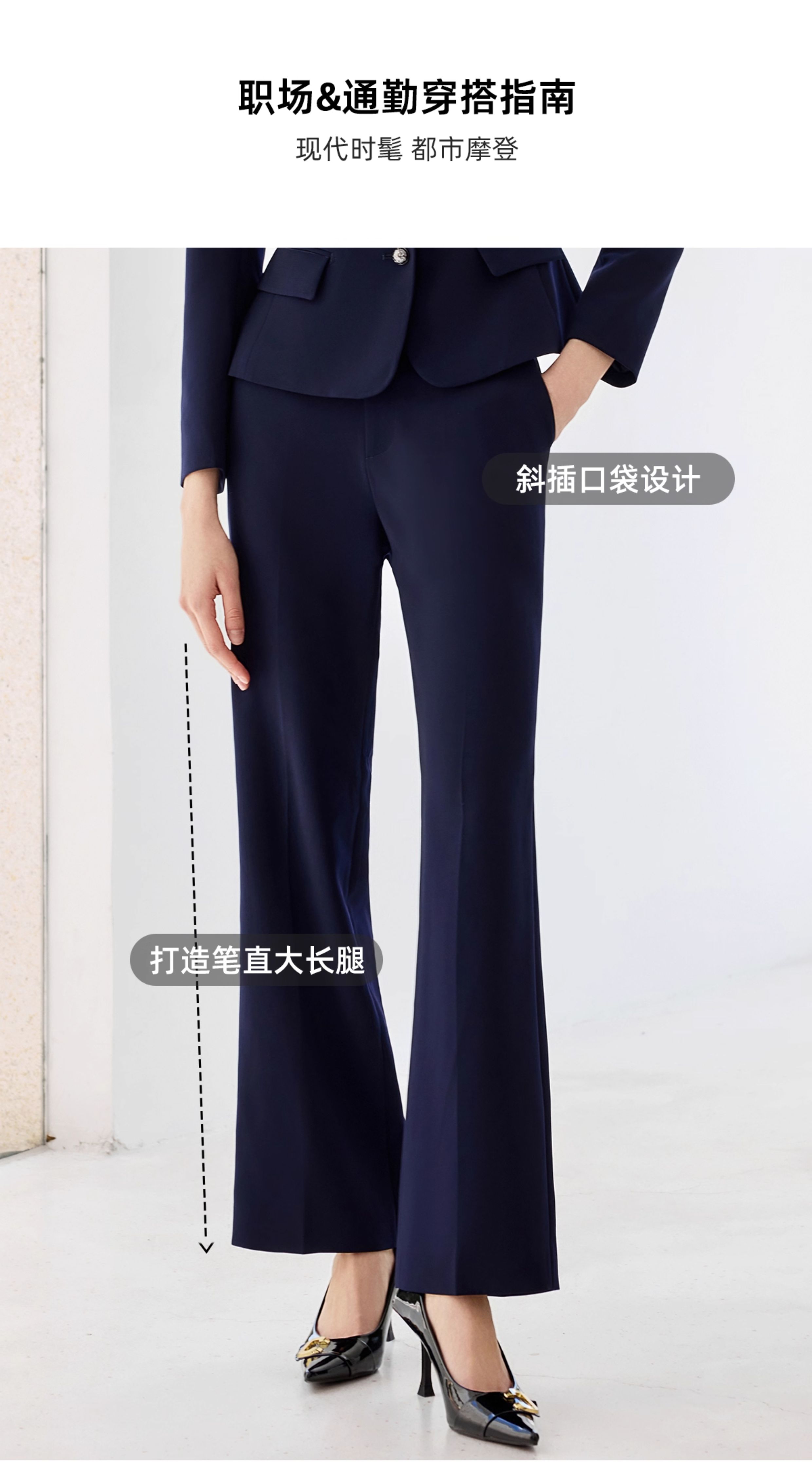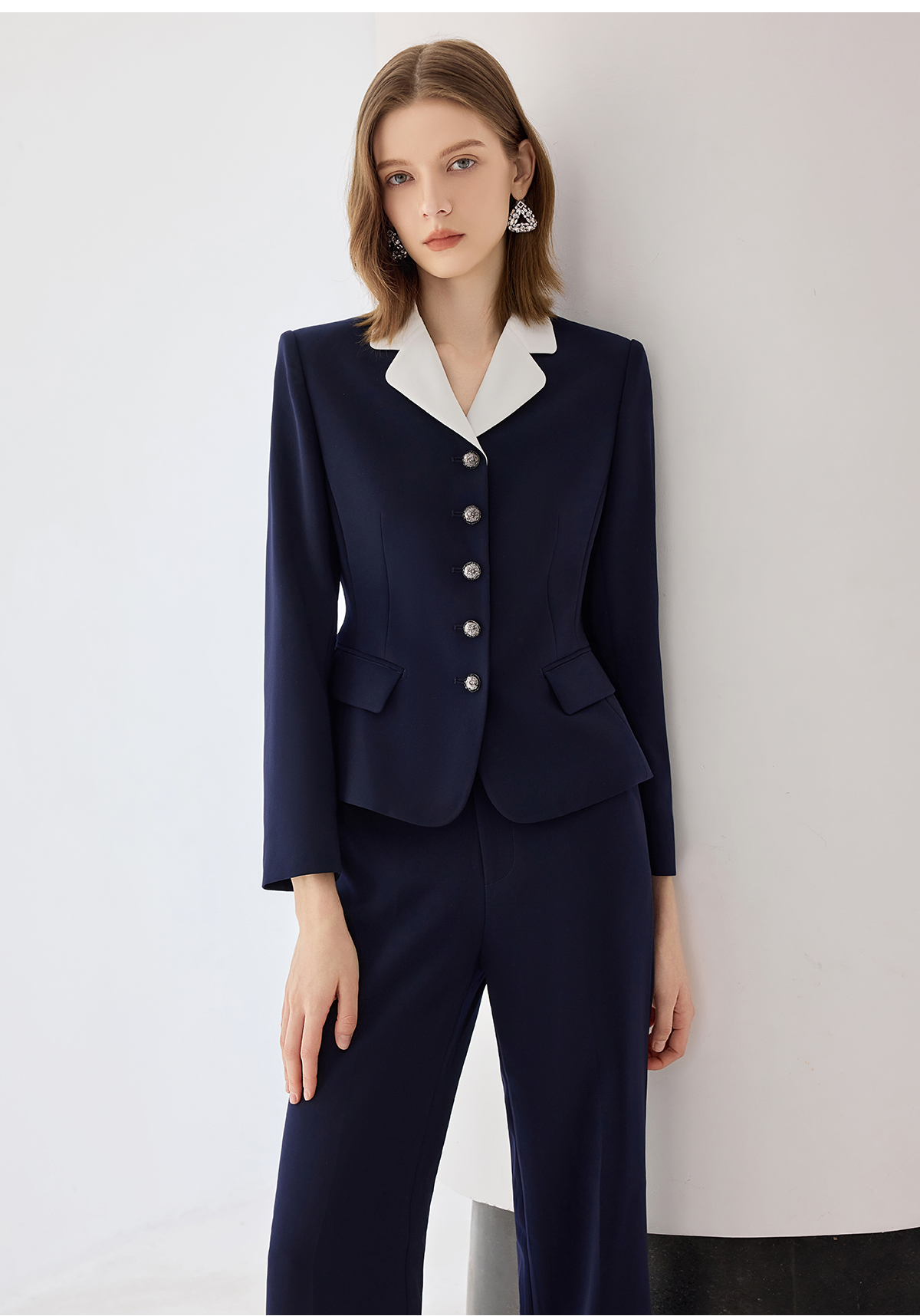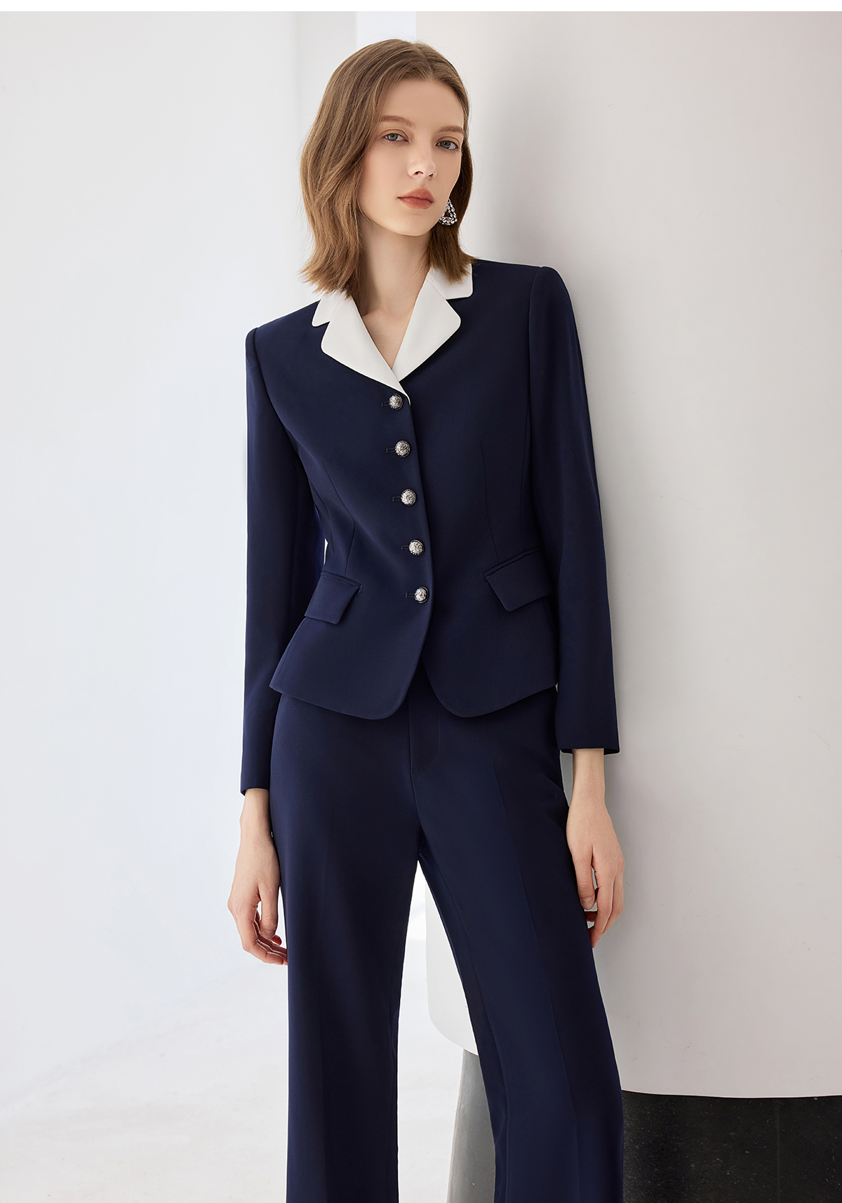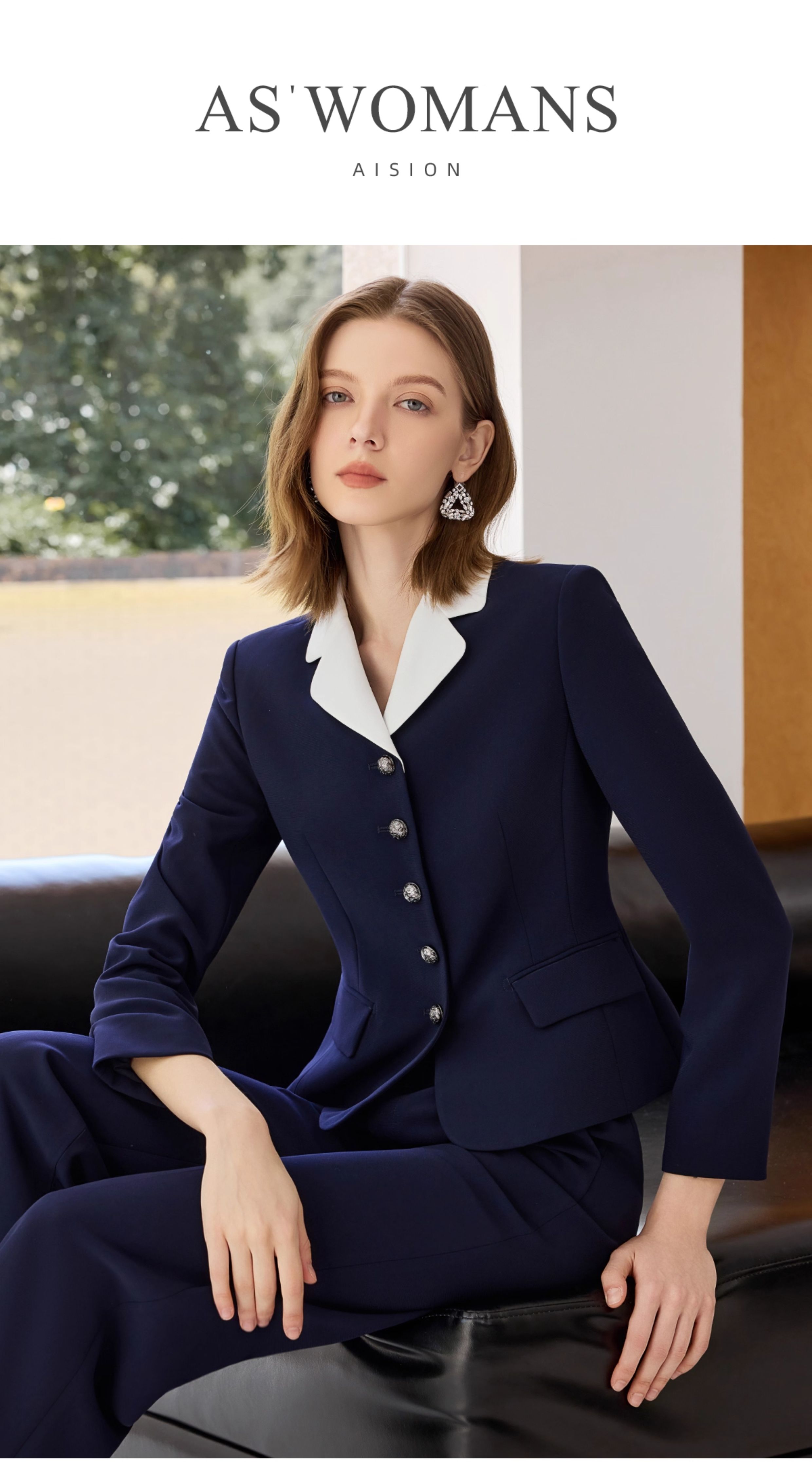 艾尚臣2025新款藏青色西装气质优雅西服套装时尚通勤正装两件套