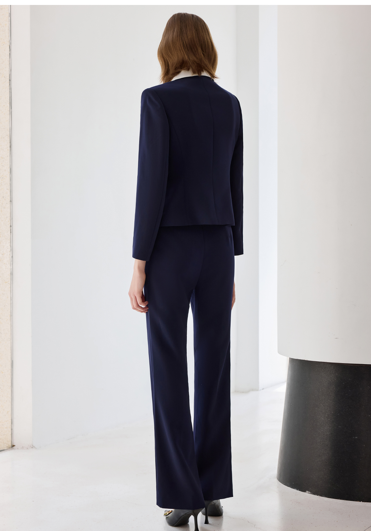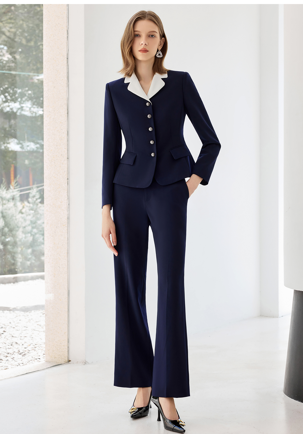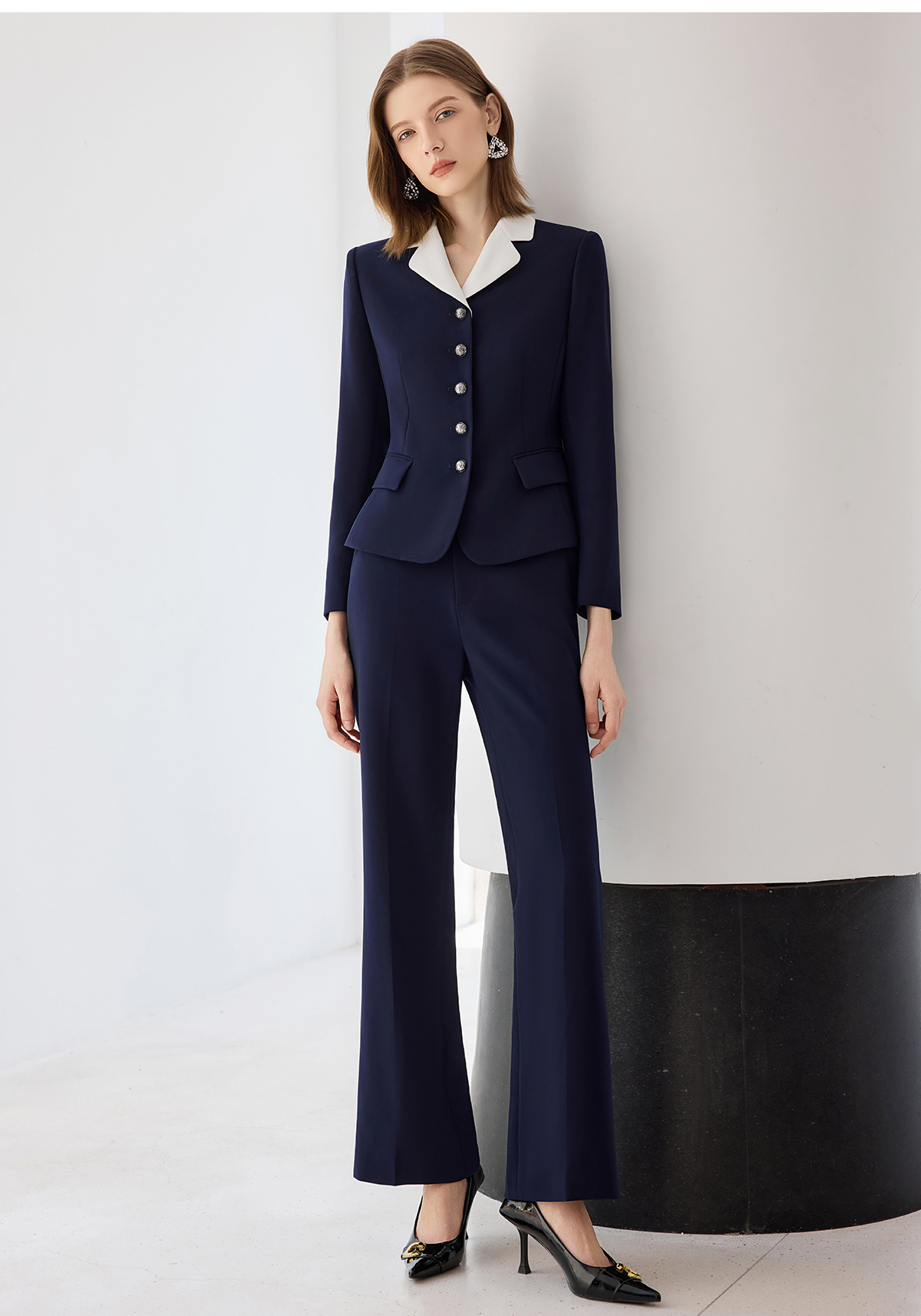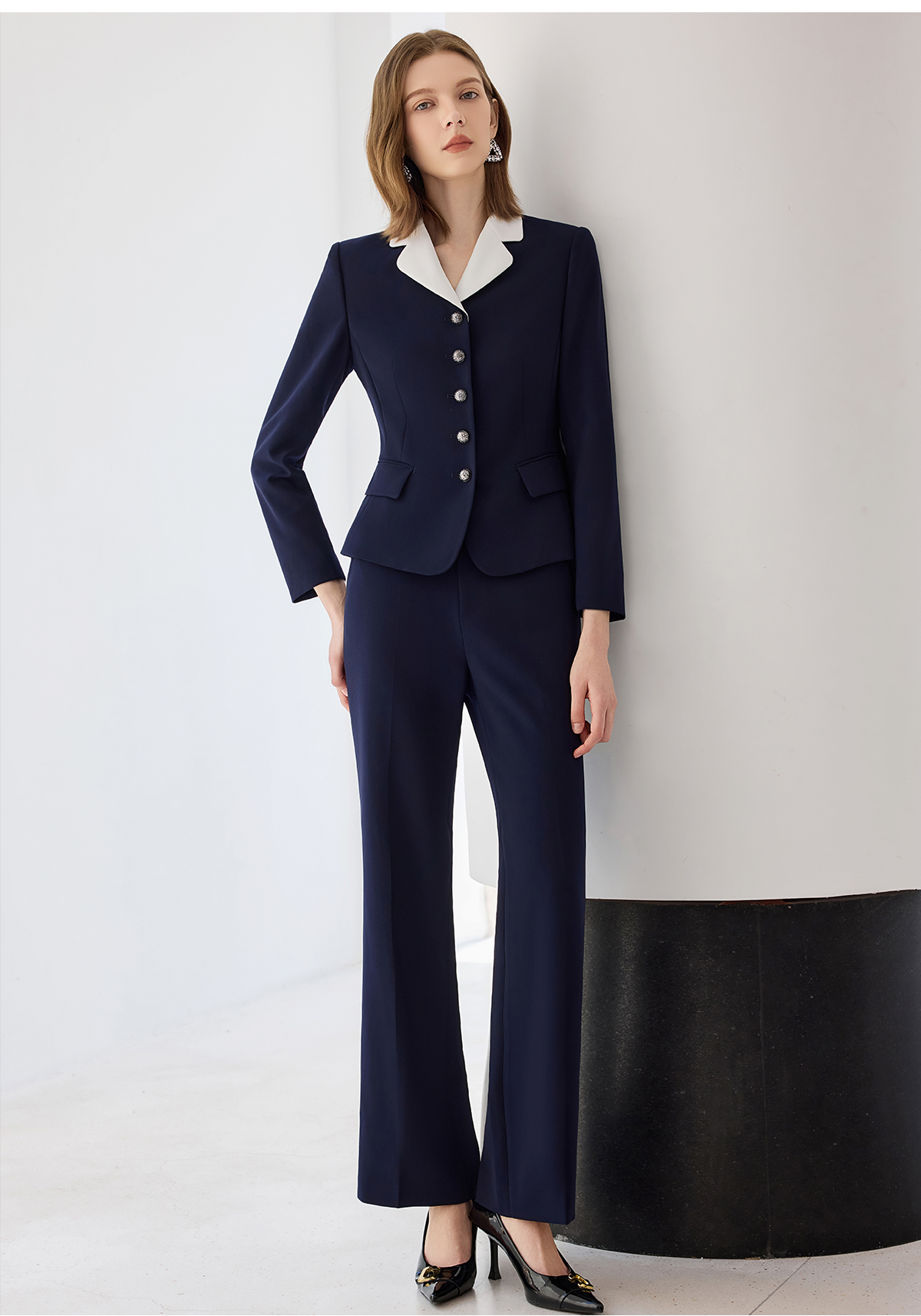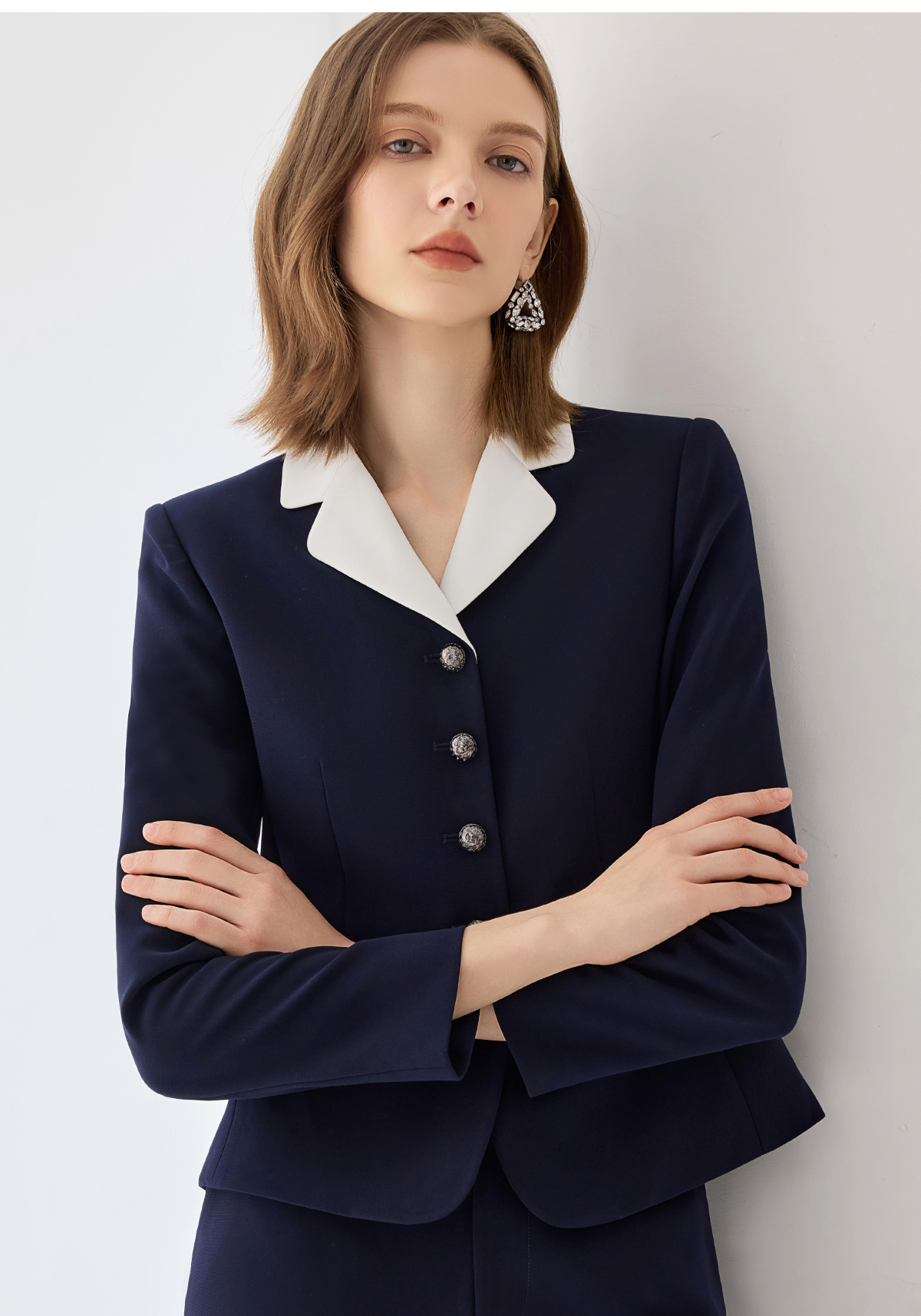 艾尚臣2025新款藏青色西装气质优雅西服套装时尚通勤正装两件套