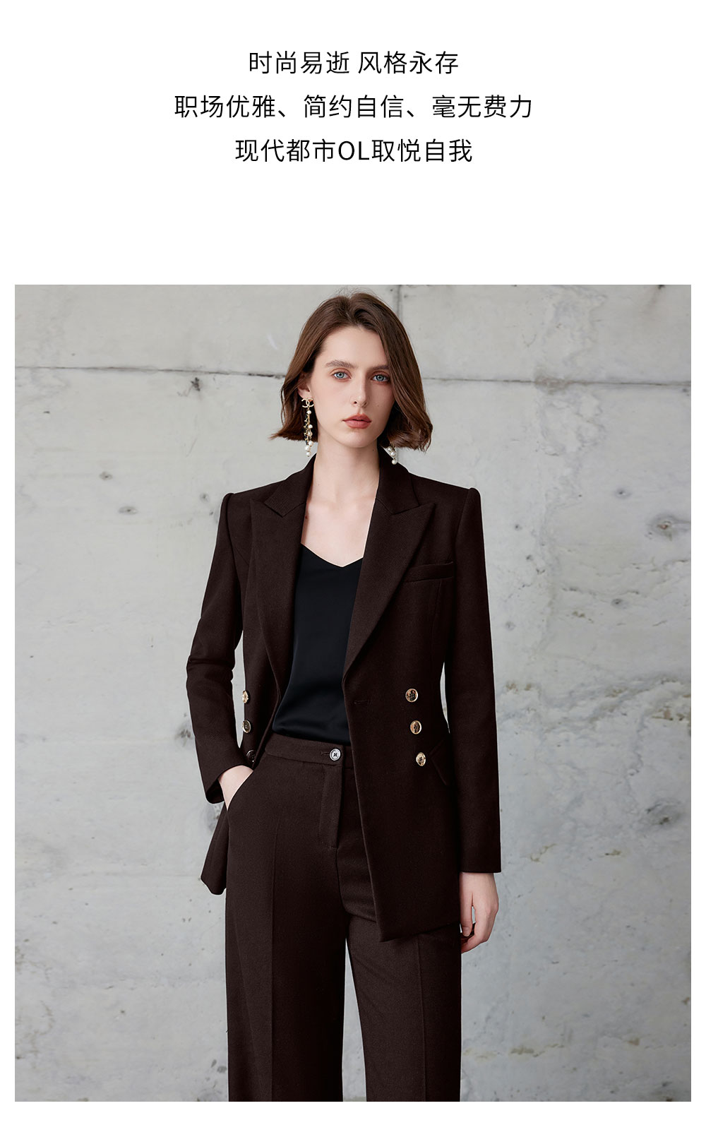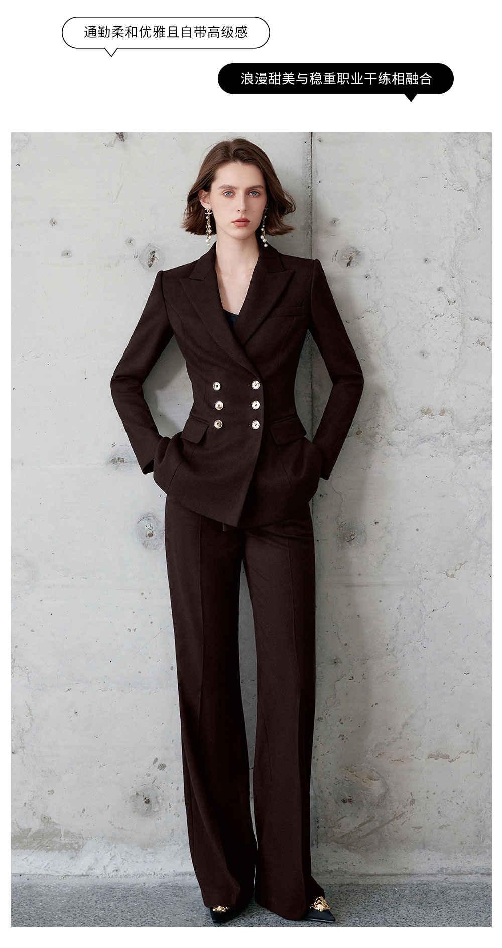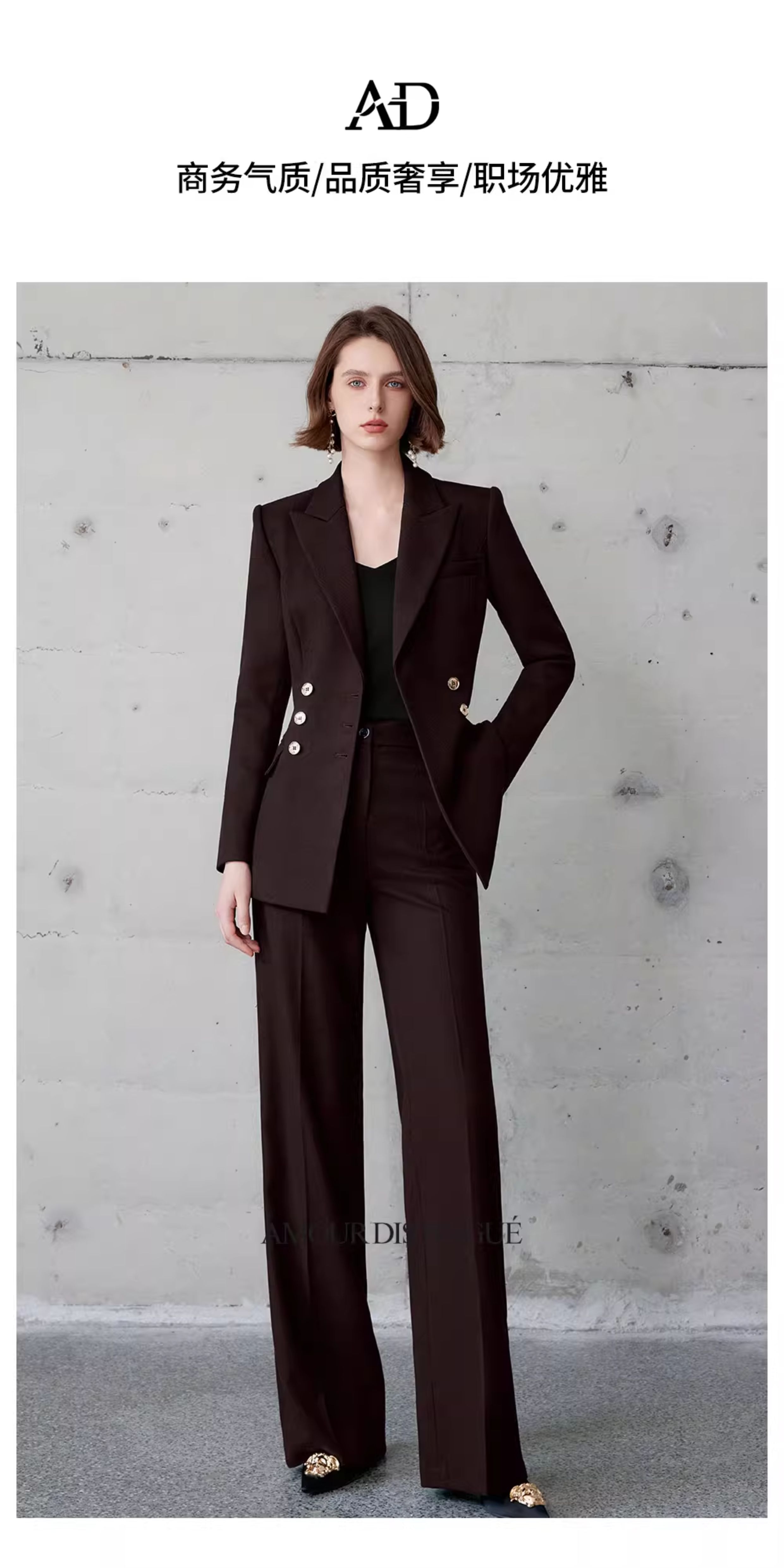AD红棕色西装套装女正式场合大学生公务员面试职业装高端通勤工装
