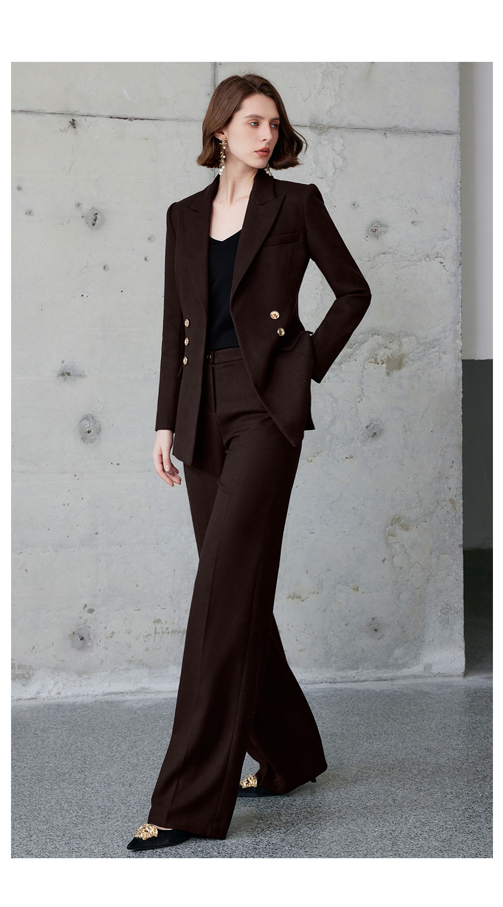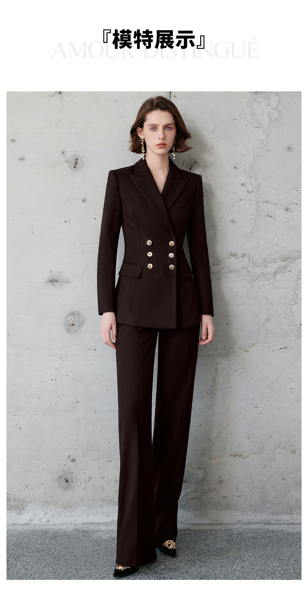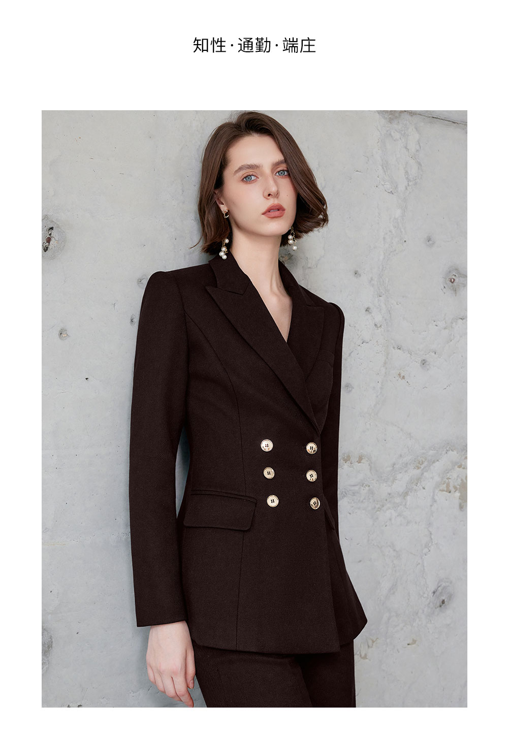 AD红棕色西装套装女正式场合大学生公务员面试职业装高端通勤工装