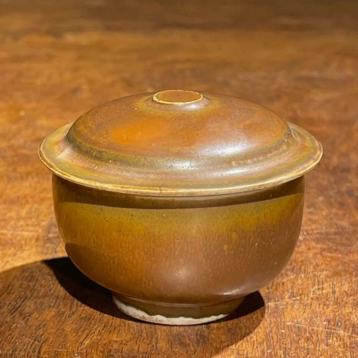 此定窑外柿红内白釉盖碗,品质特别精良,气质优雅,如今摆放装饰或当茶碗使用。