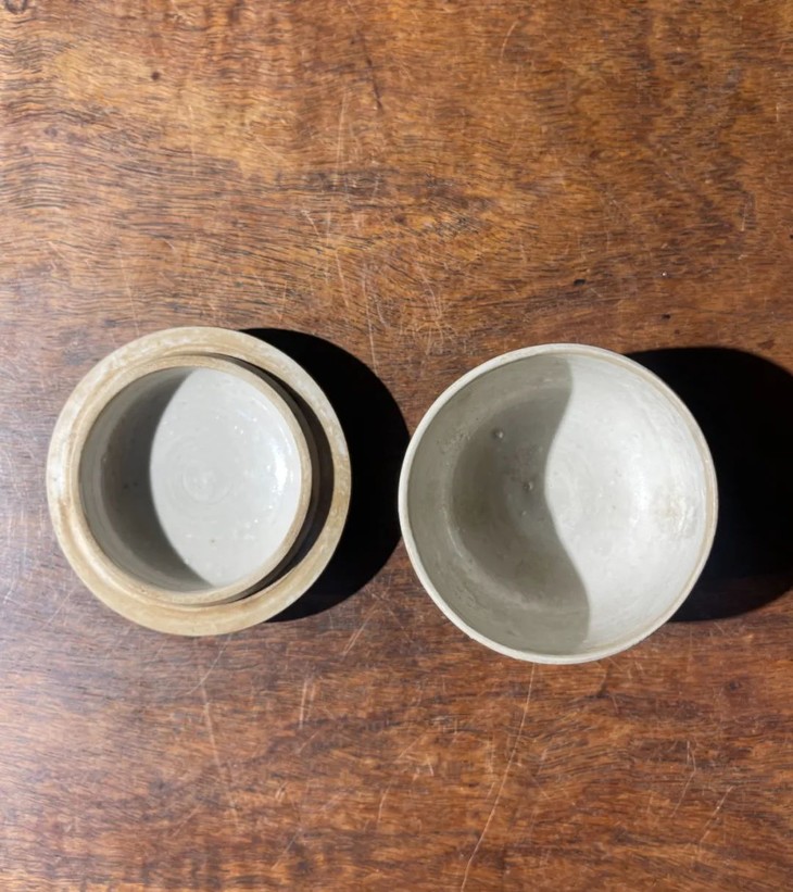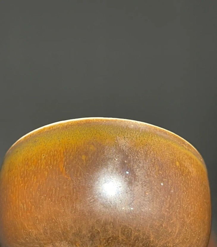 此定窑外柿红内白釉盖碗,除釉面轻微磨损痕迹外保存完好无损。