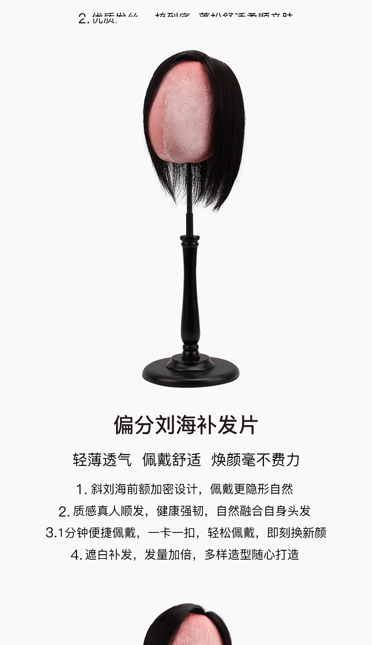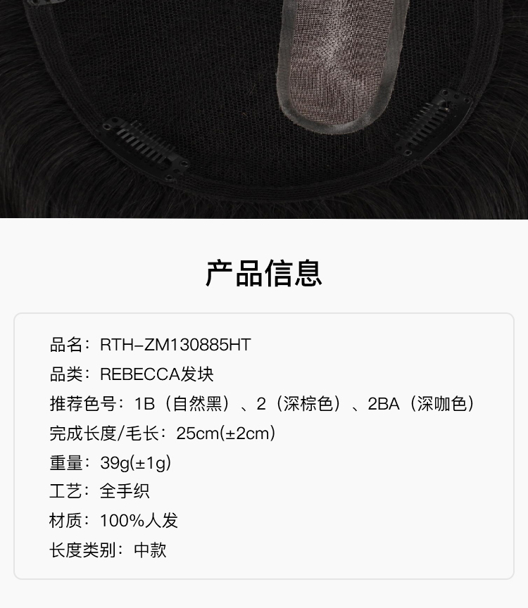 Rebecca瑞贝卡假发片一片式自然增发斜刘海发片全真人发补发片全手织补发片