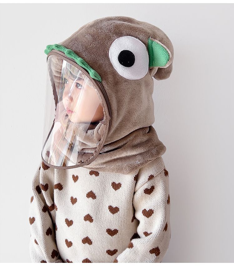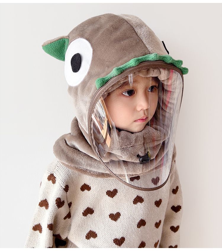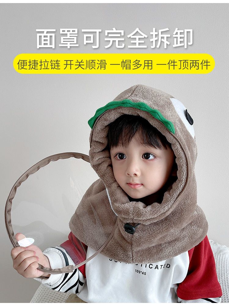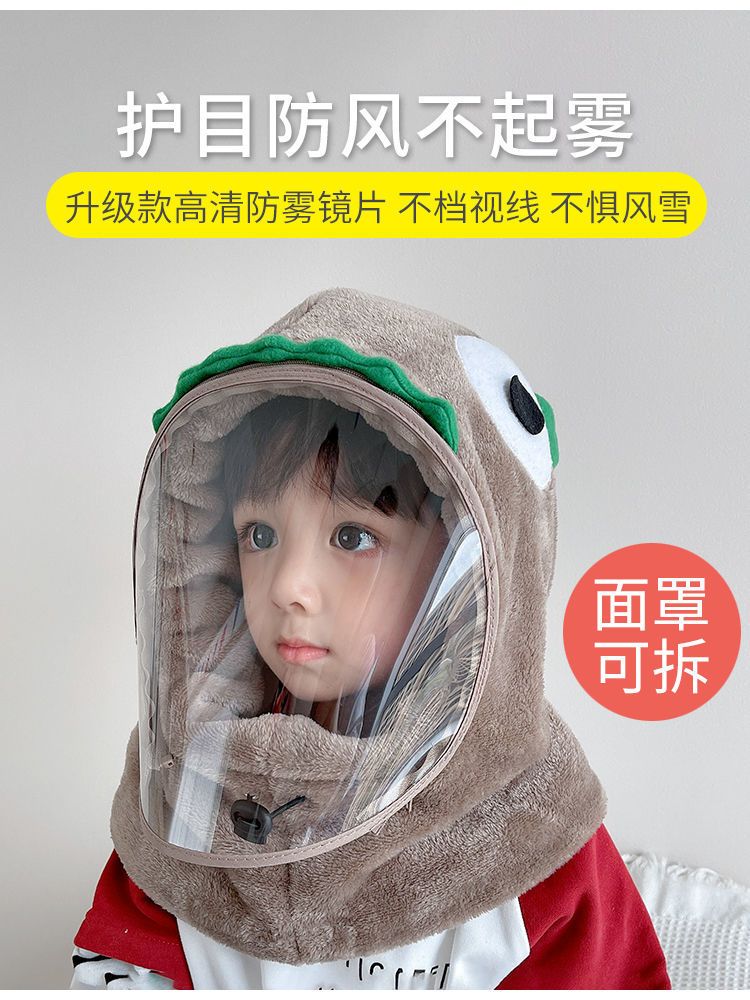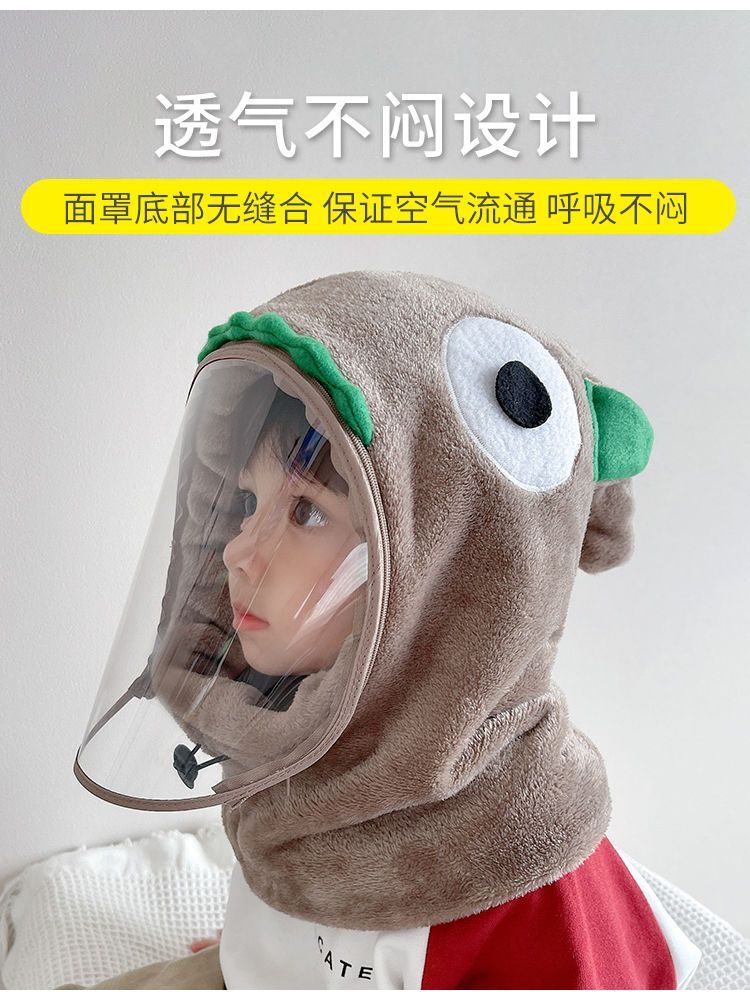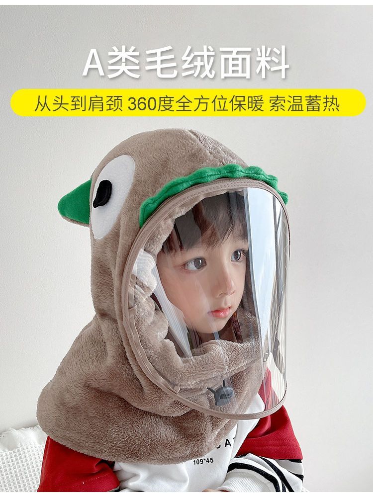 防护帽子儿童秋冬户外儿童防护一体帽防飞沫带面罩可爱加厚保暖帽