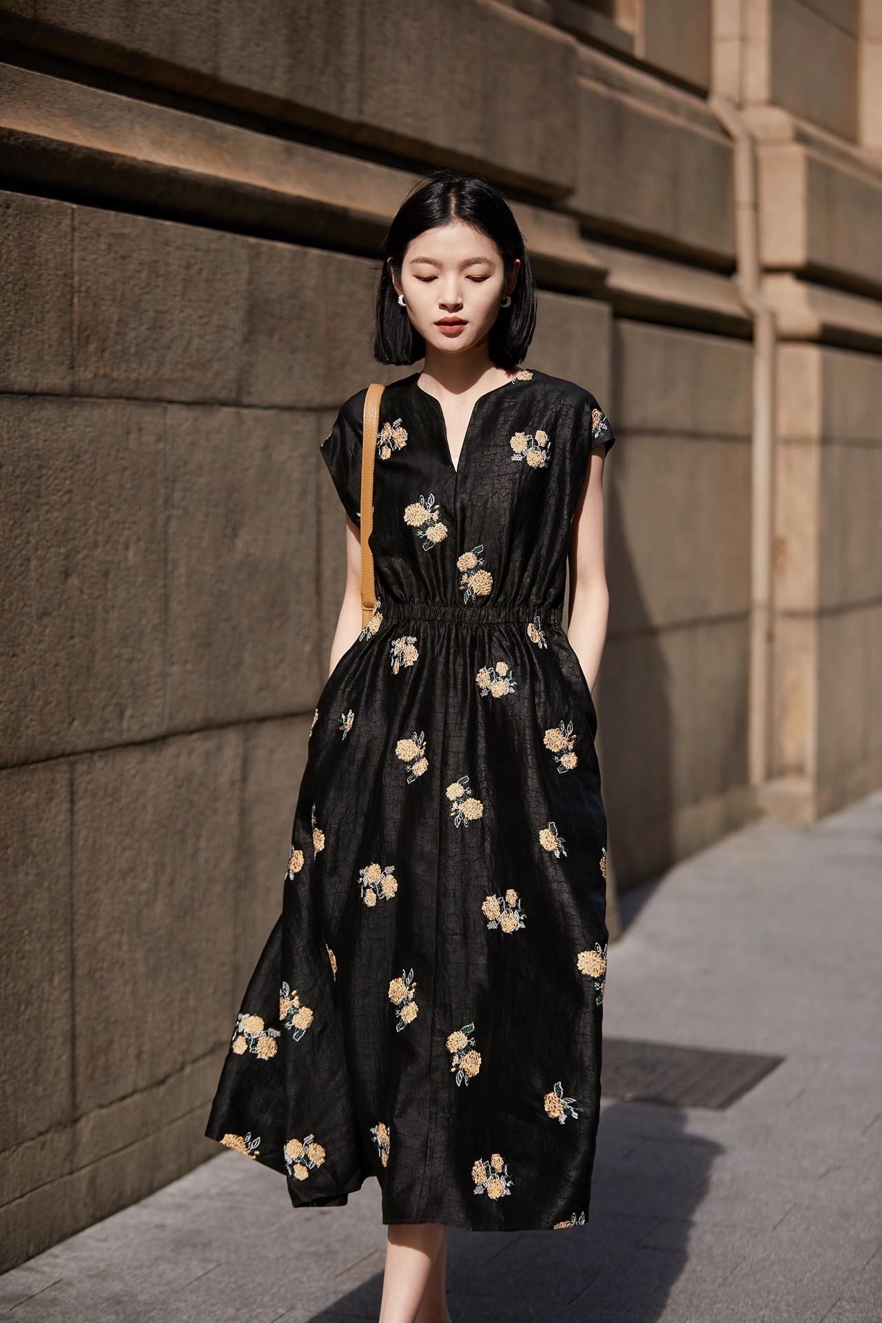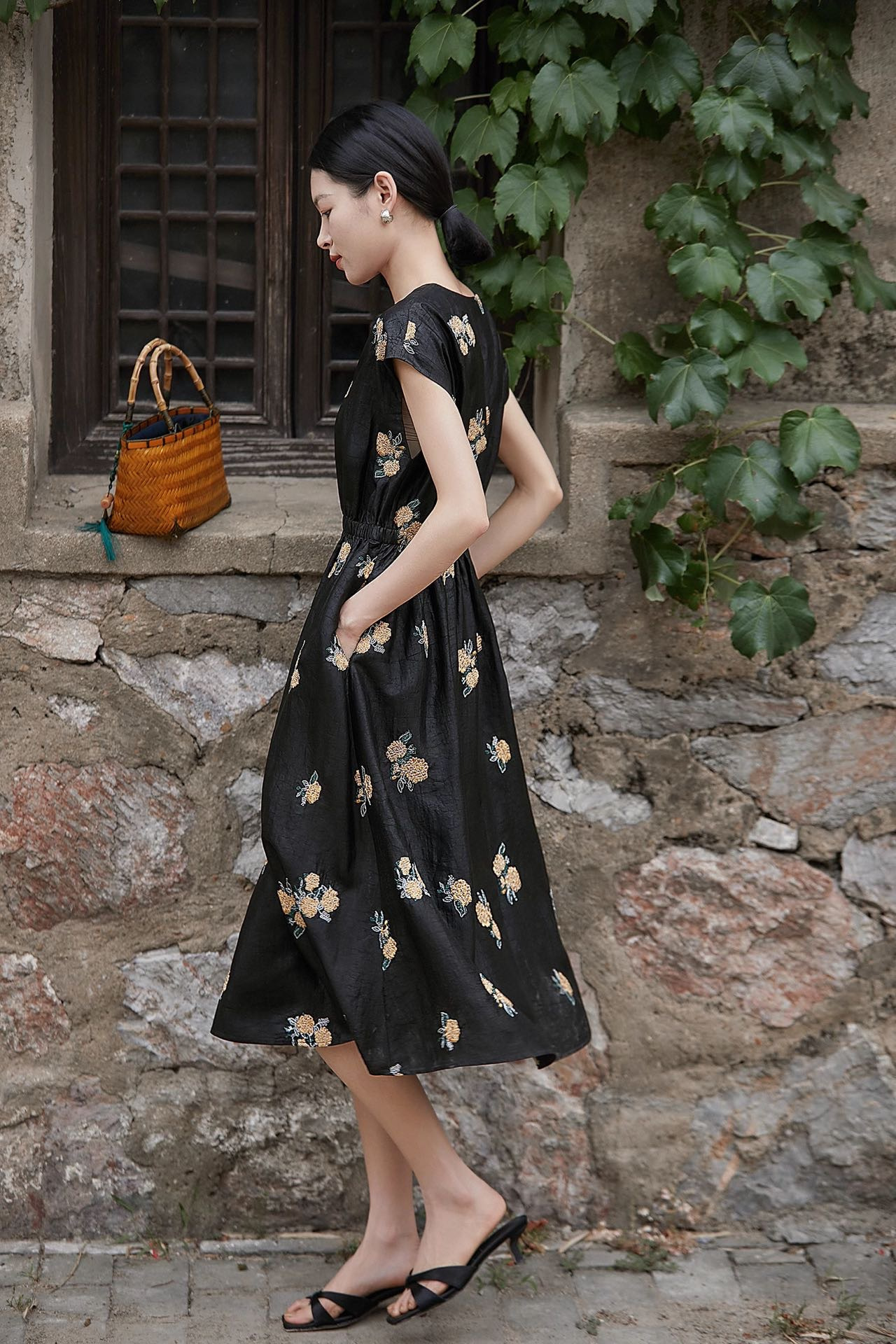 纯手工刺绣,刺绣重工耗时!真丝金丝线绣线,高定复古!