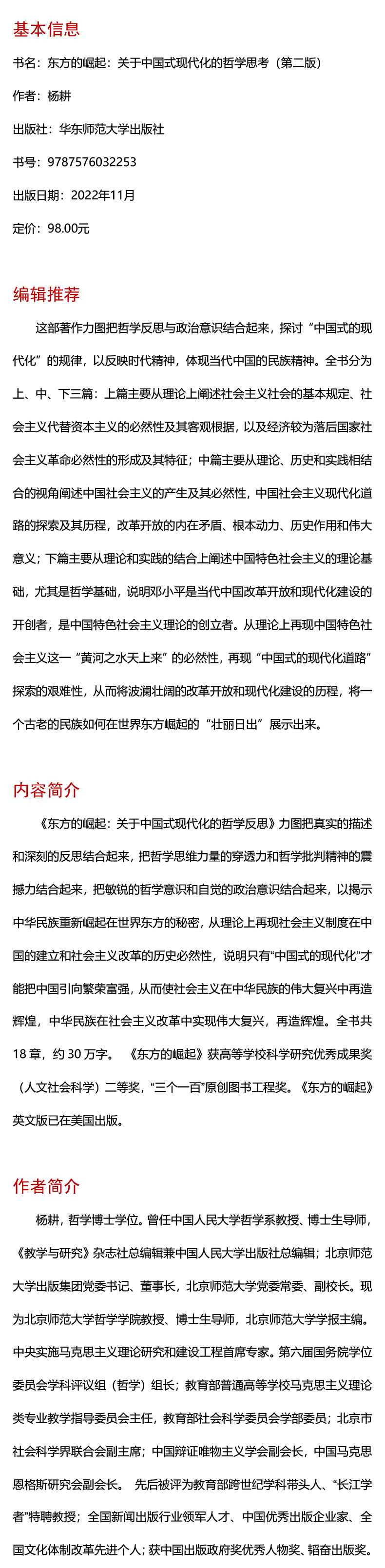 东方的崛起 关于中国式现代化的哲学思考 第二版 杨耕文集 第7卷 中国现代化建设研究 精装