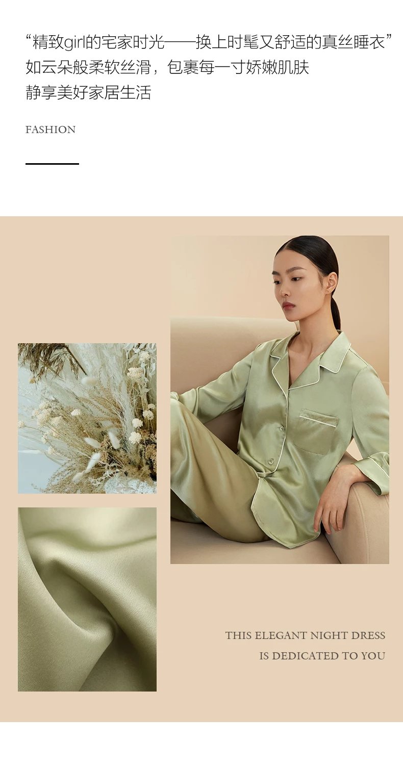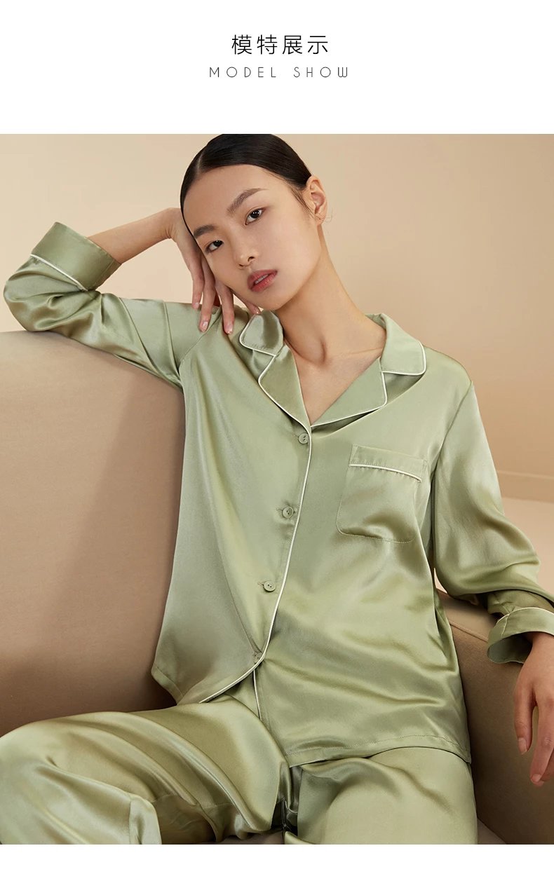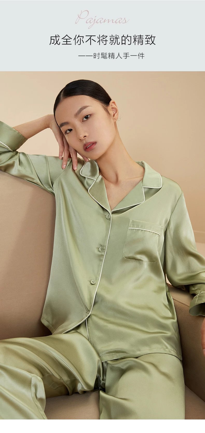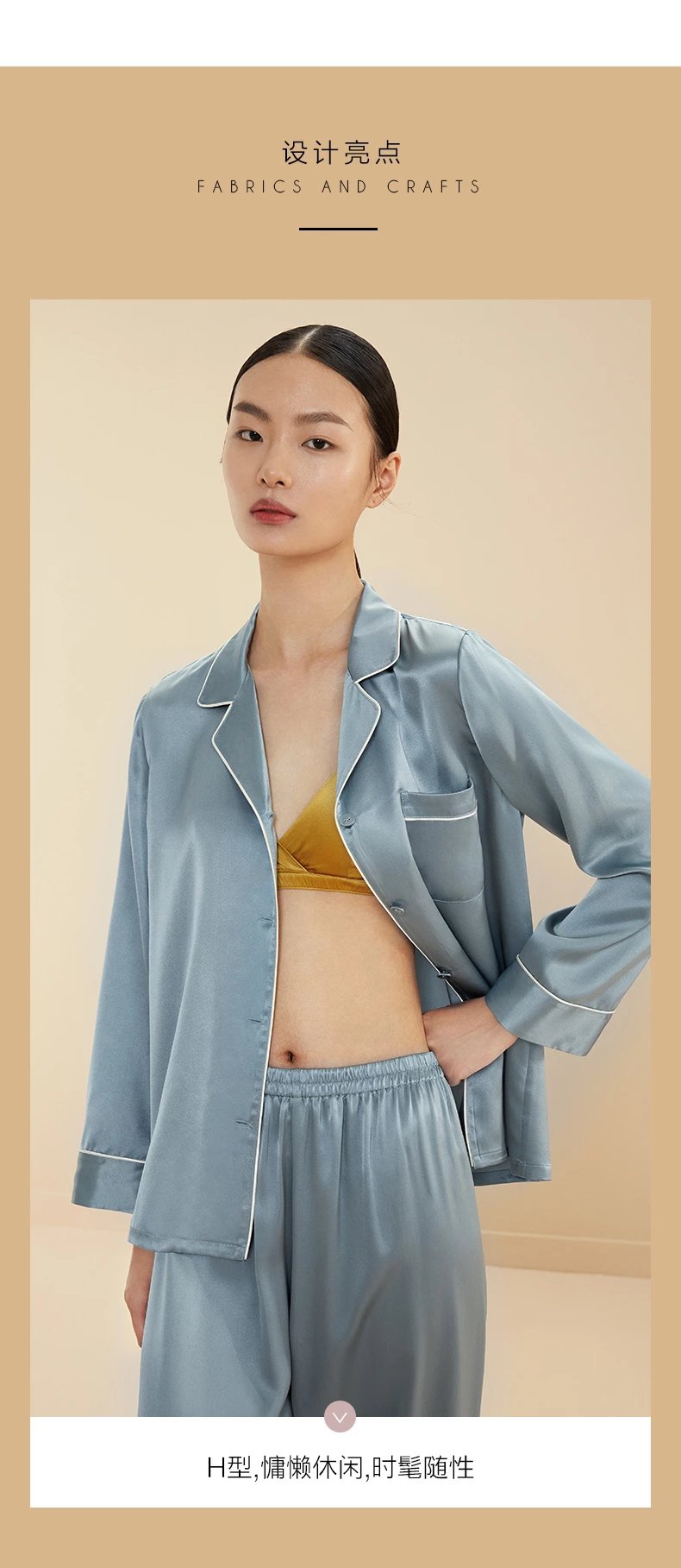 金三塔重磅真丝睡衣女长袖两件套100%桑蚕丝宽松可外穿丝绸家居服基础套装 YSF9B212(限价款)