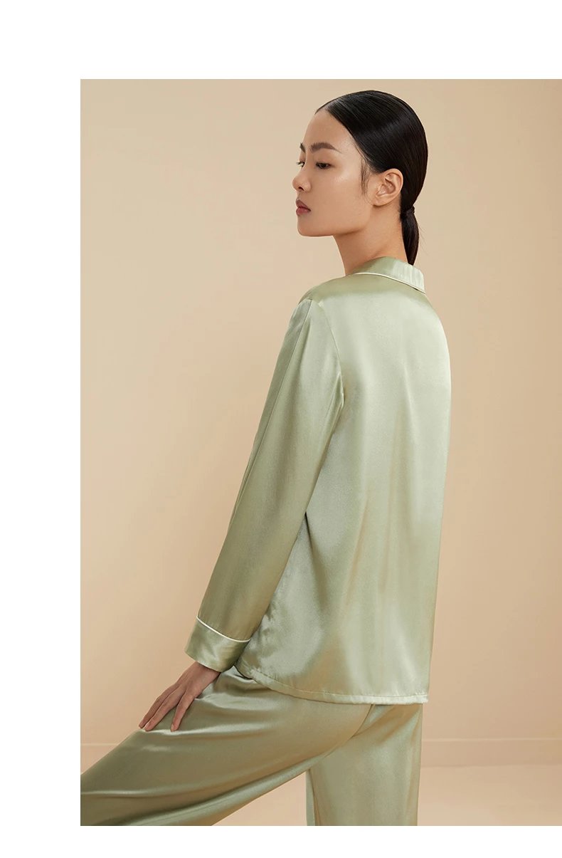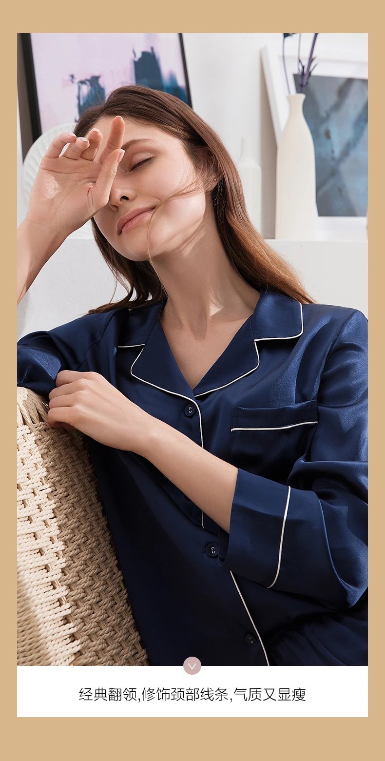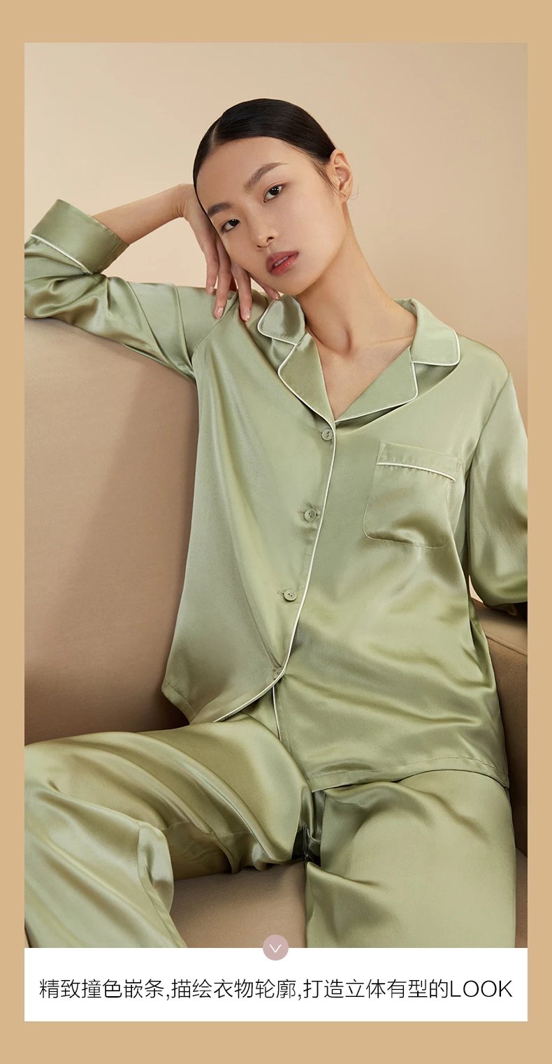金三塔重磅真丝睡衣女长袖两件套100%桑蚕丝宽松可外穿丝绸家居服基础套装 YSF9B212(限价款)