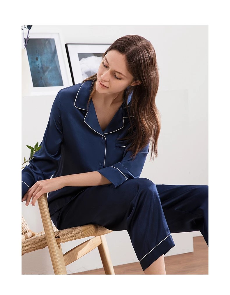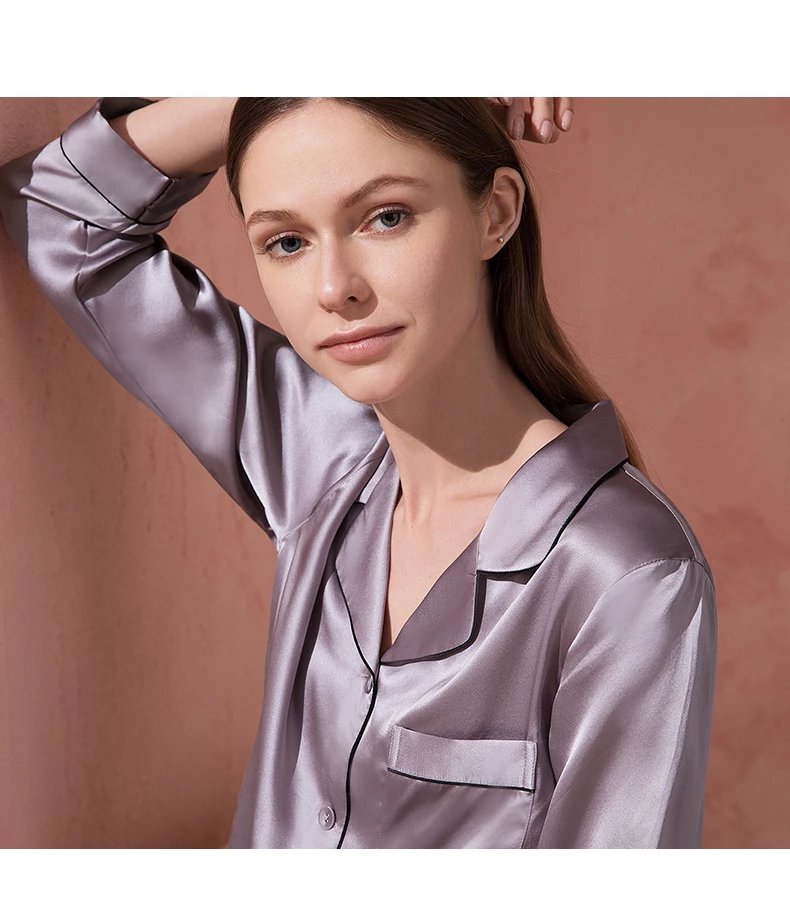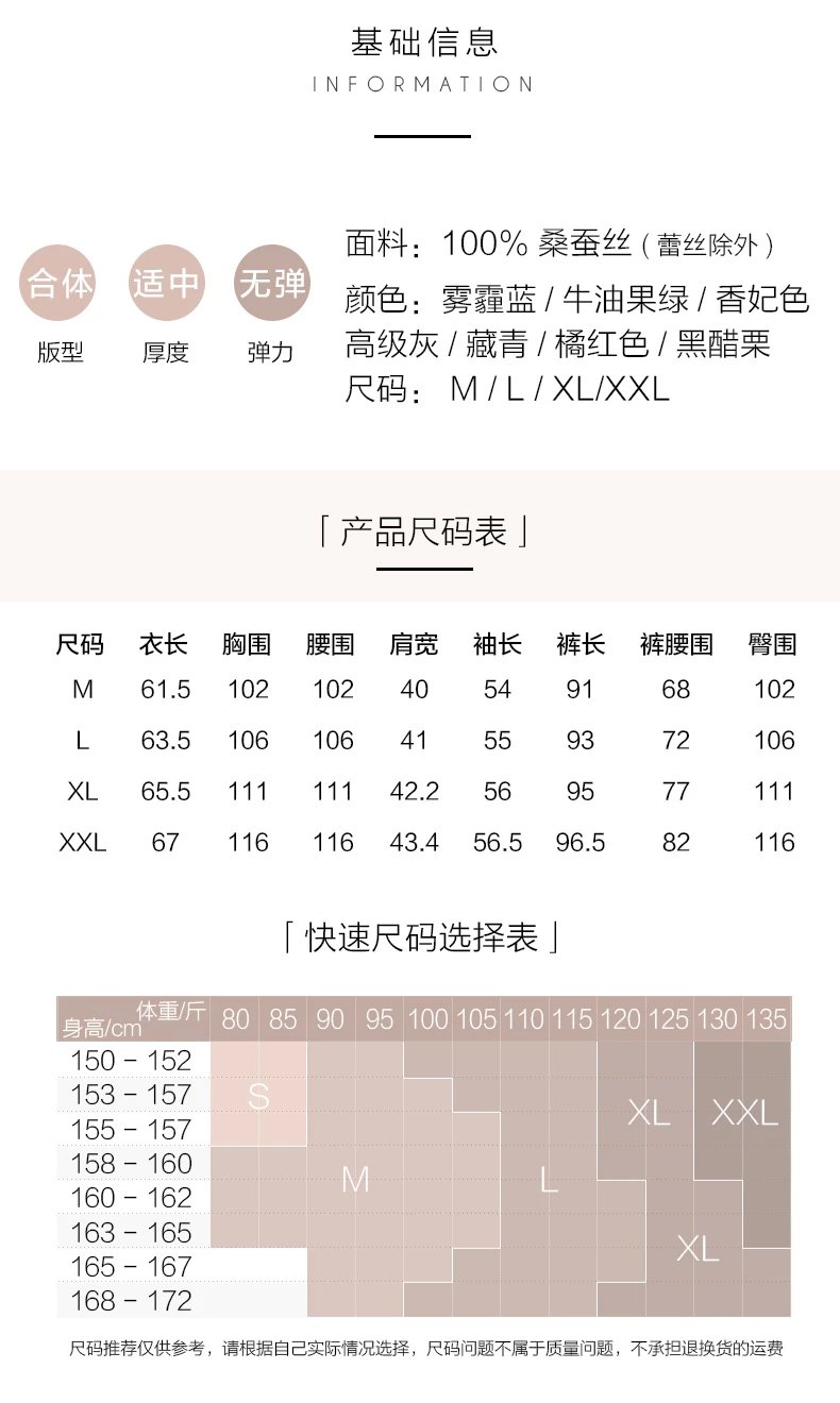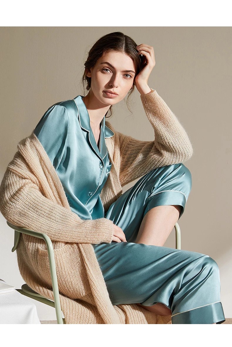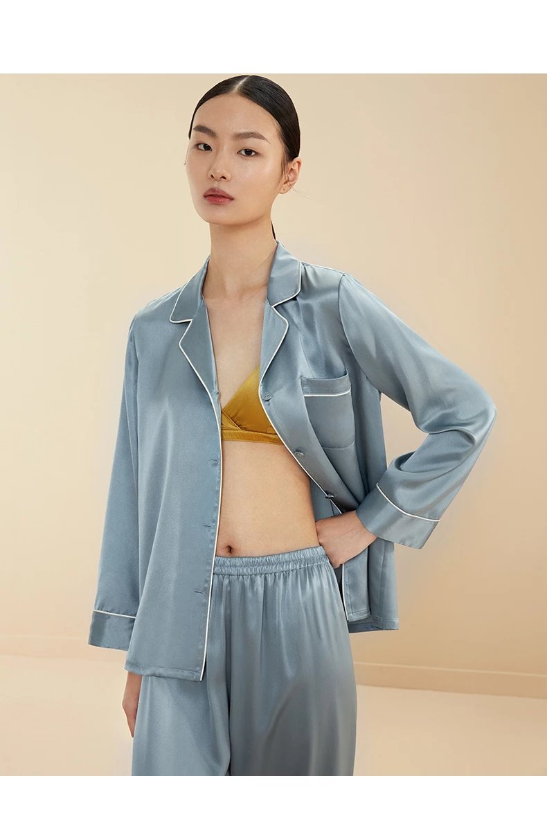 金三塔重磅真丝睡衣女长袖两件套100%桑蚕丝宽松可外穿丝绸家居服基础套装 YSF9B212(限价款)