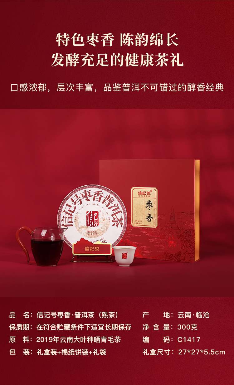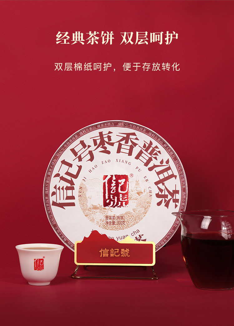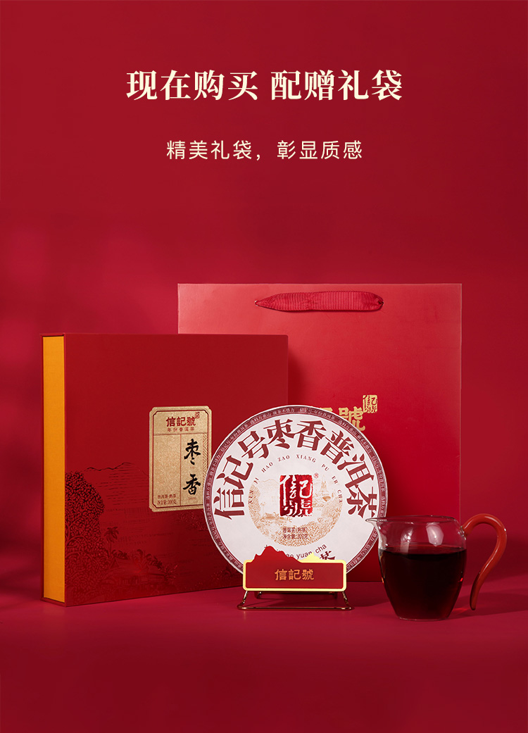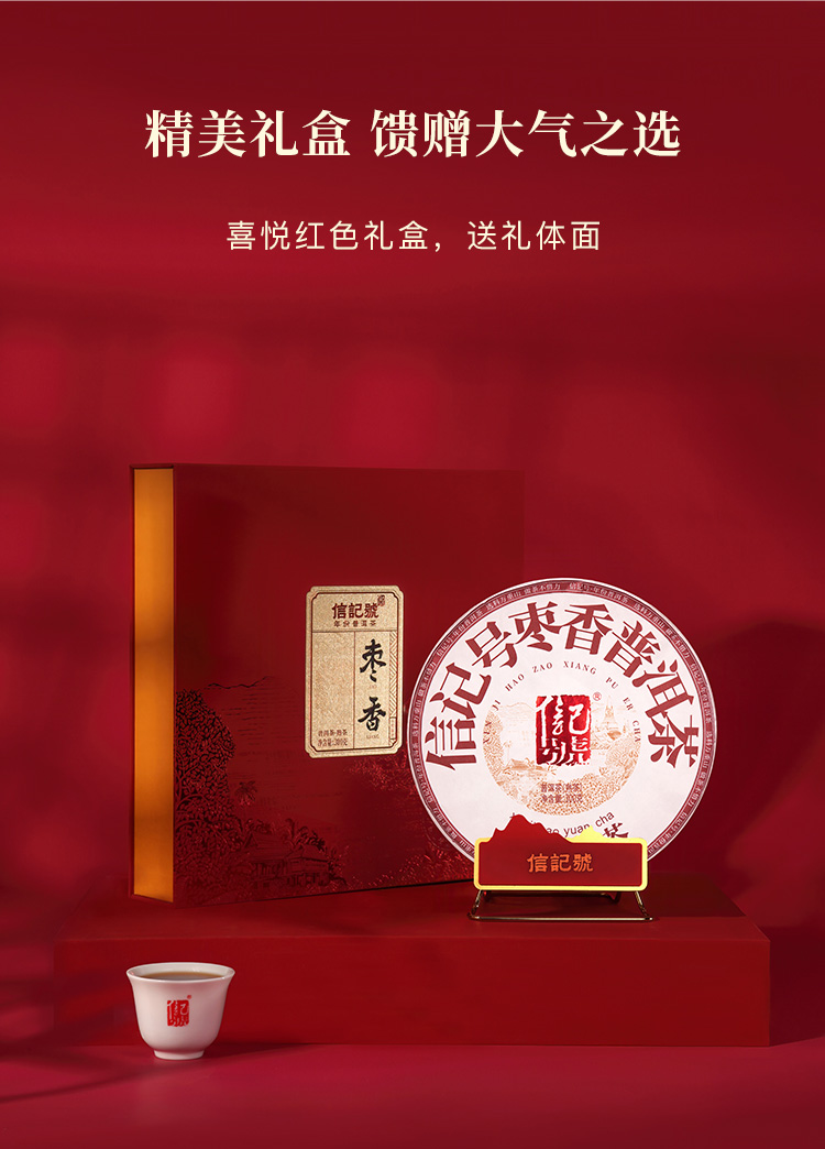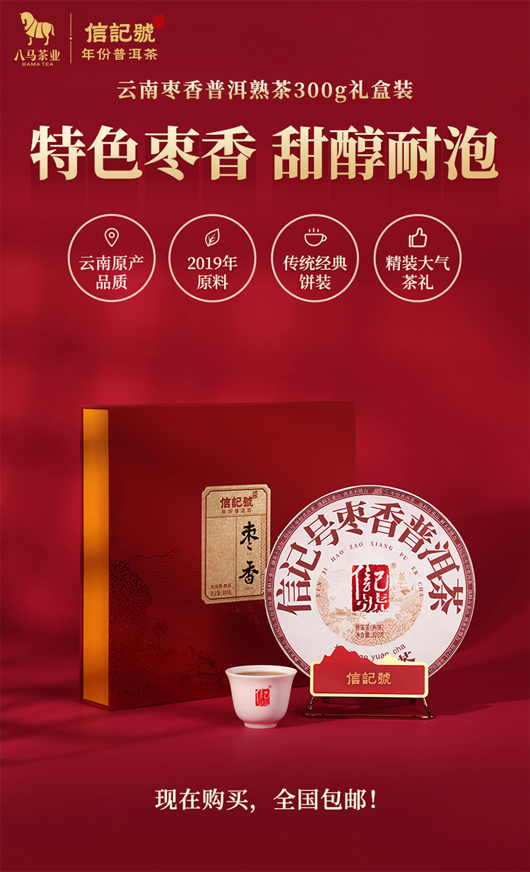 八马茶业 | 信记号普洱茶云南临沧原产枣香普洱熟茶饼茶礼盒装300g