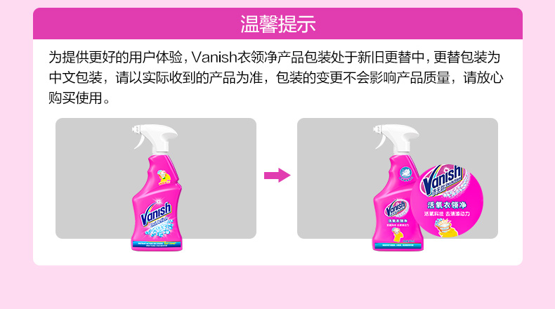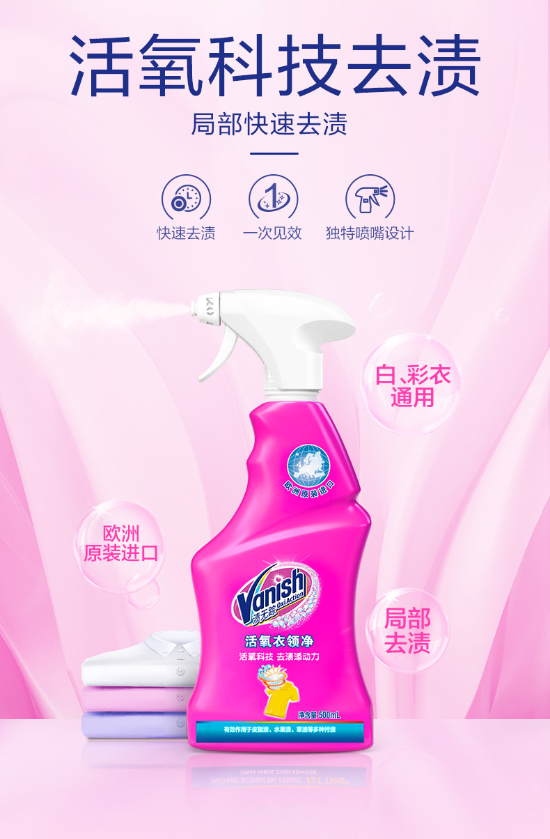 Vanish 渍无踪衣领净去污彩色通用去渍去黄喷雾200ml/瓶