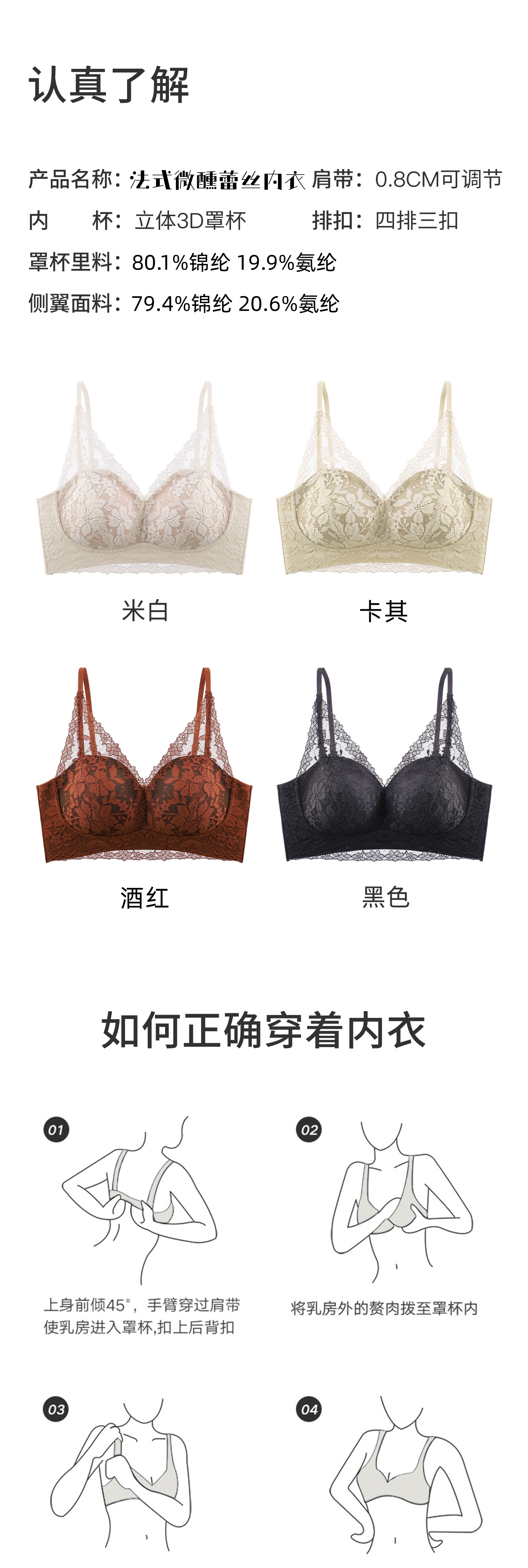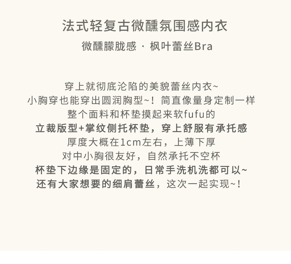 『超模君严选 法式微醺蕾丝内衣』聚拢轻提拉 大U美背 高侧围无感收副乳 法式V领 松弛有度 一眼沦陷