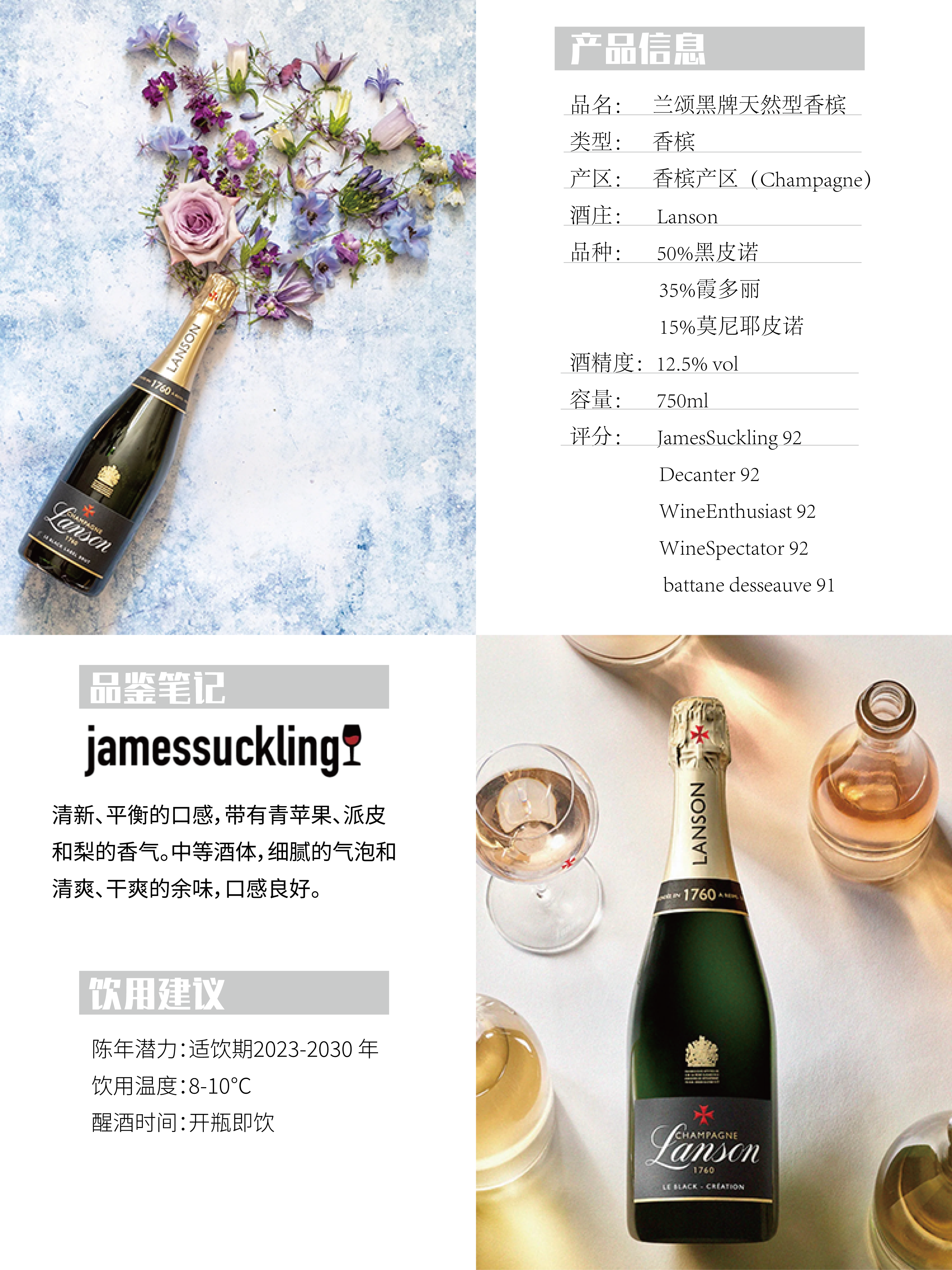 【香槟礼盒装】兰颂黑牌天然型香槟起泡葡萄酒(礼盒装)750ml Lanson Le Black Label Brut With Box Nv