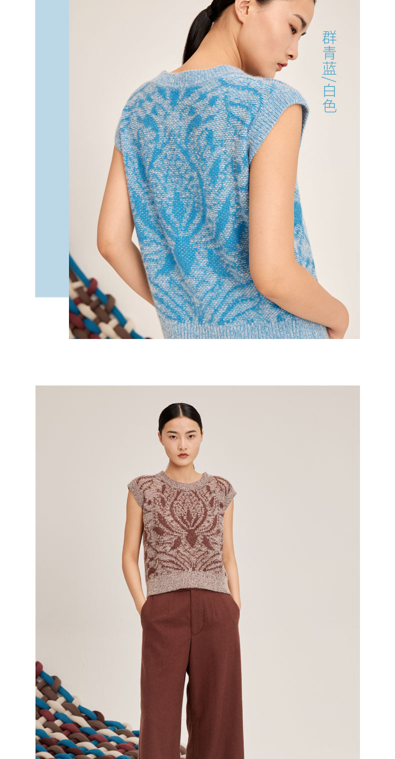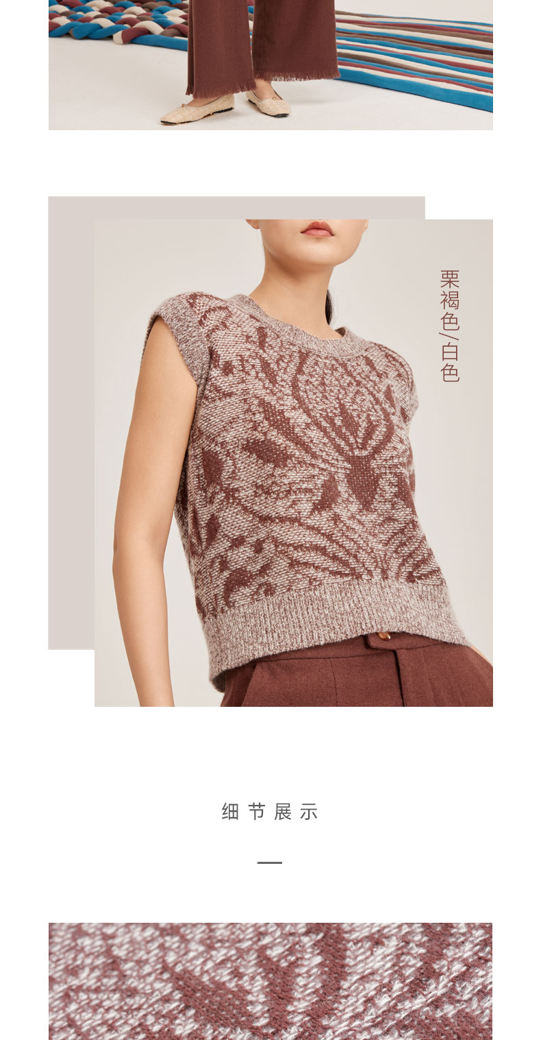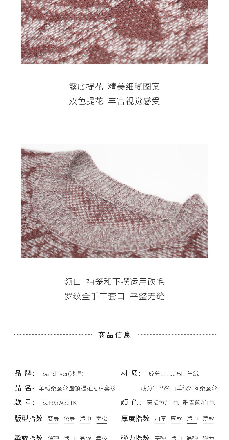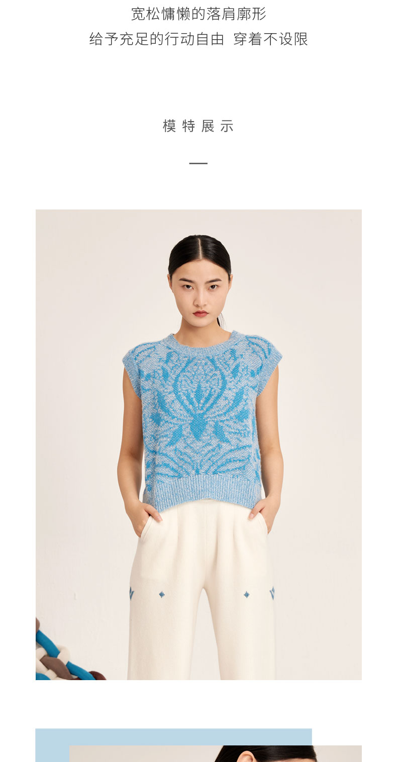 羊绒桑蚕丝圆领提花无袖套衫SJF95W321K